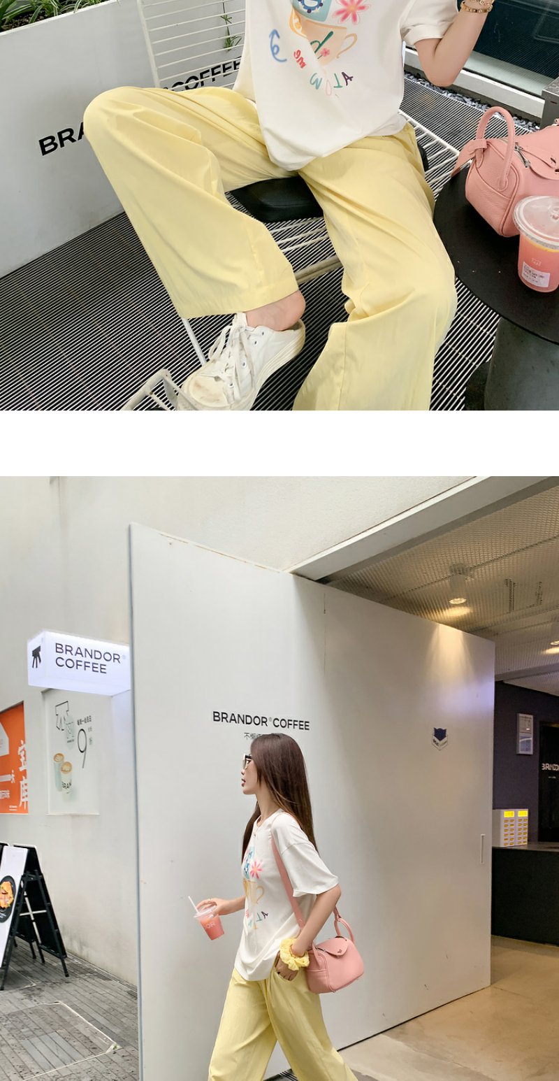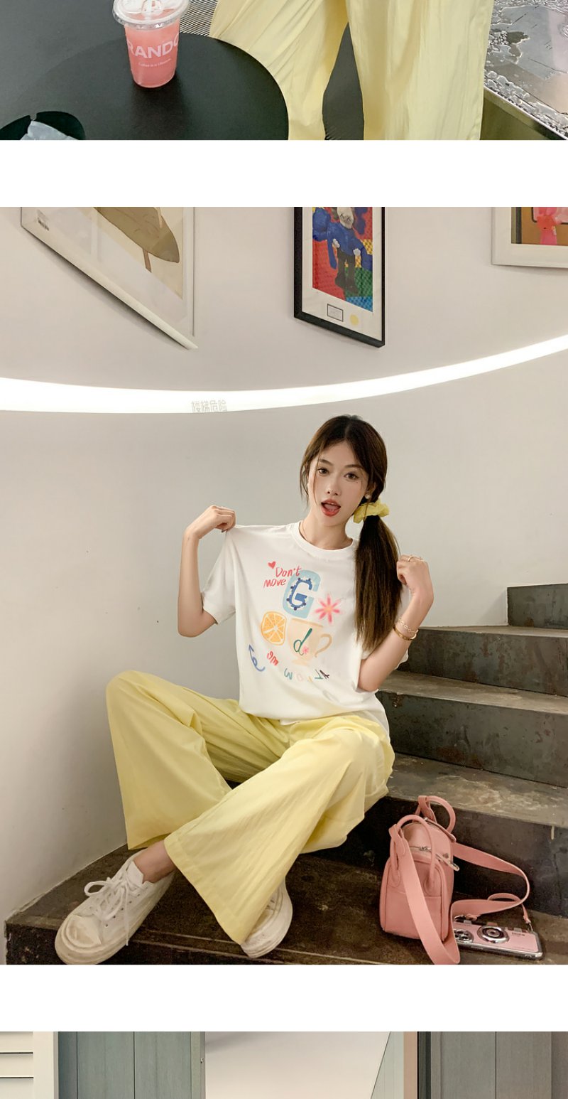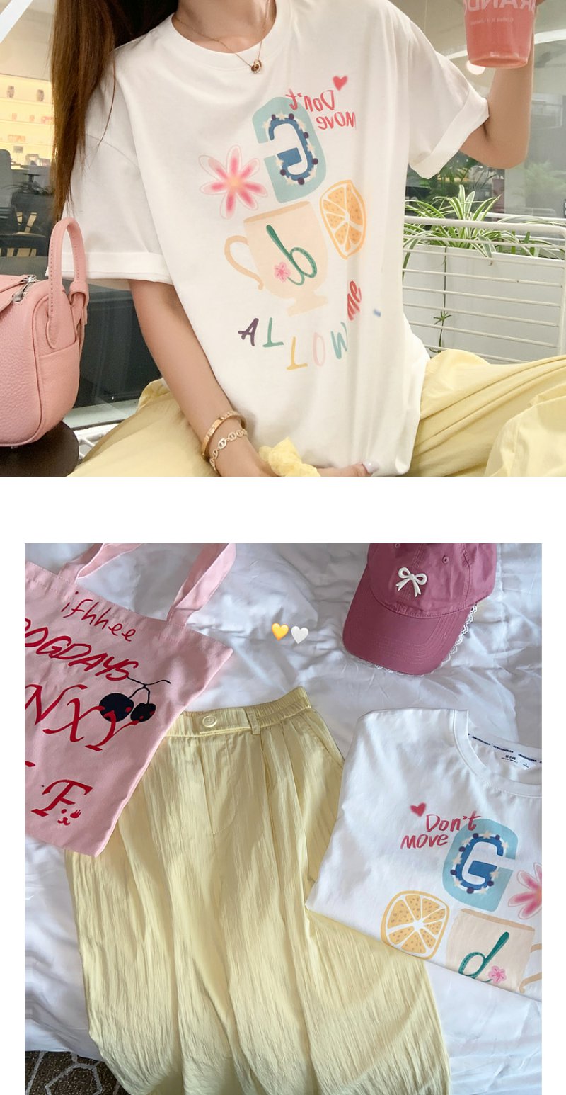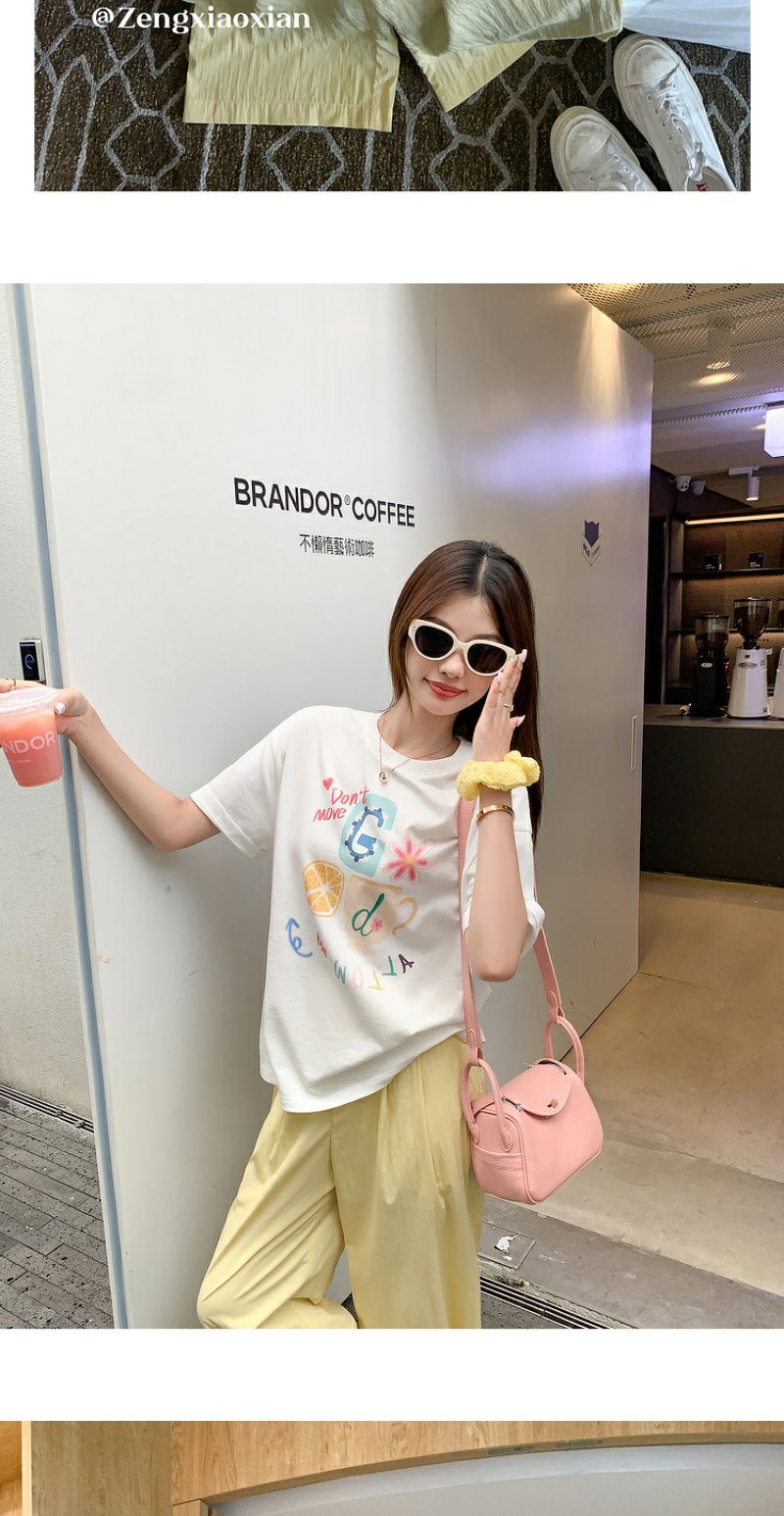 <曾小咸推荐>【奶奶糯糯】杯子字母印花白色T恤+裤子