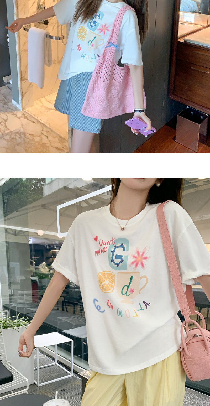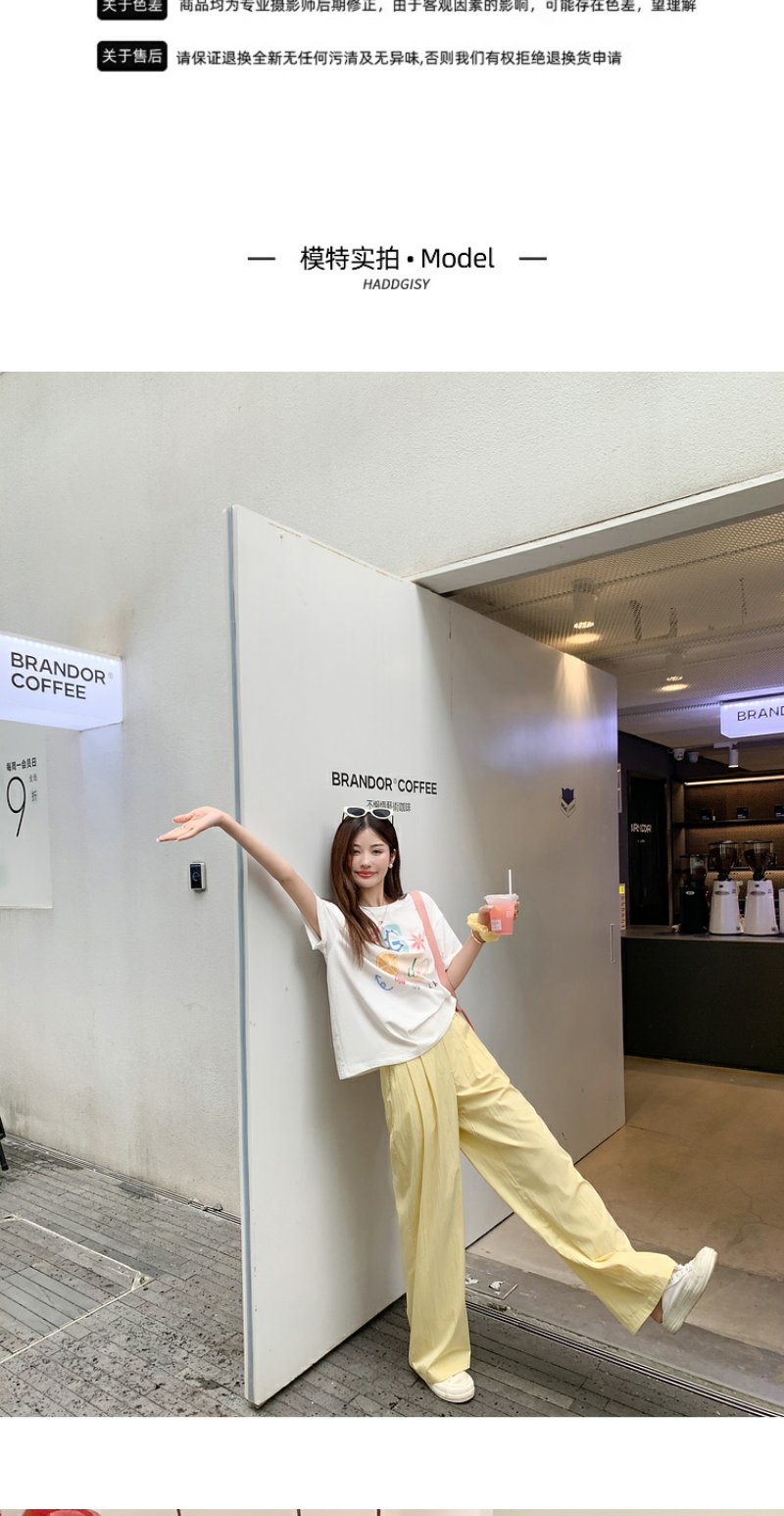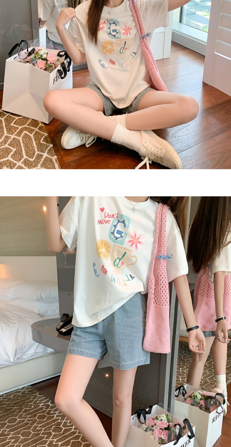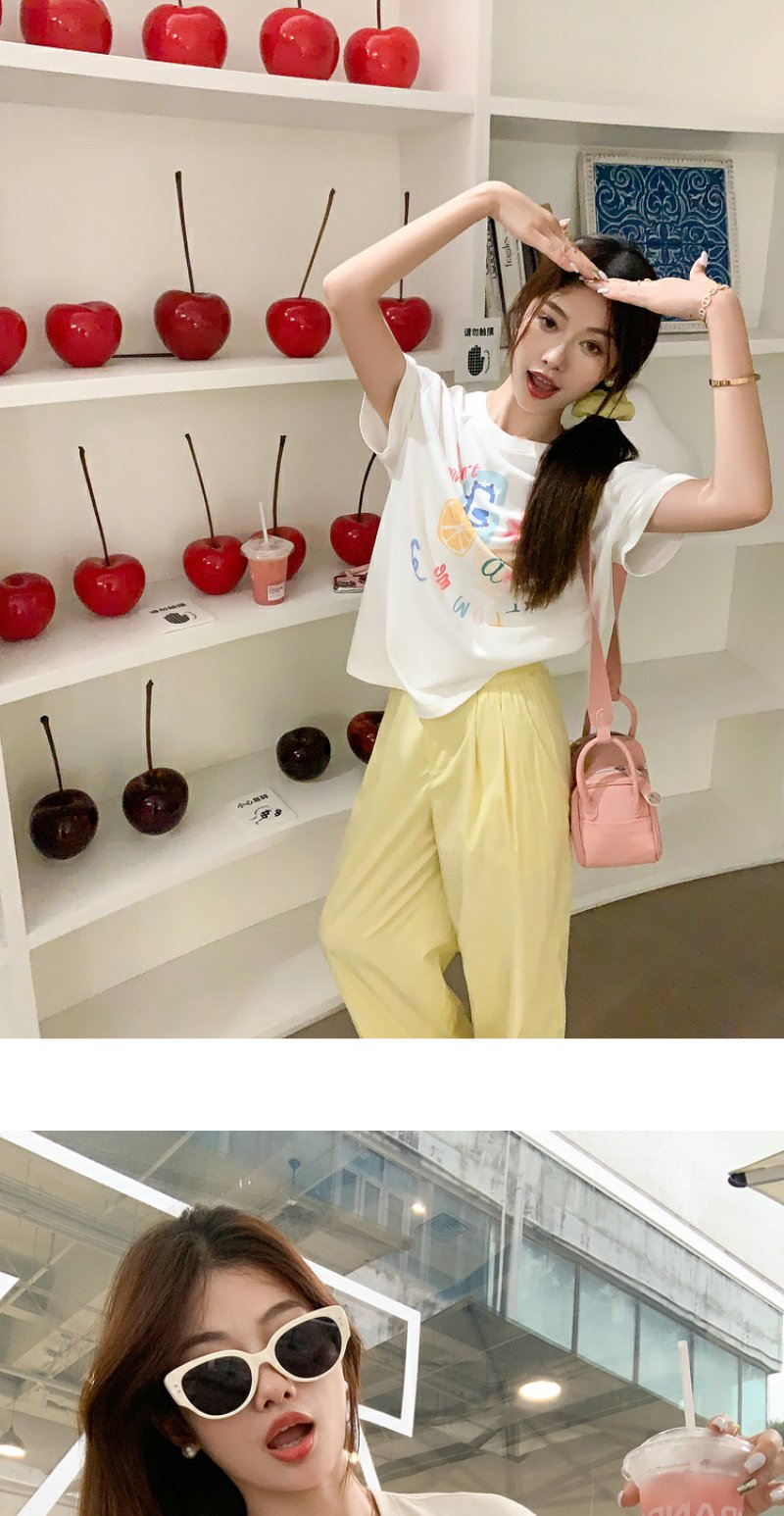 <曾小咸推荐>【奶奶糯糯】杯子字母印花白色T恤+裤子