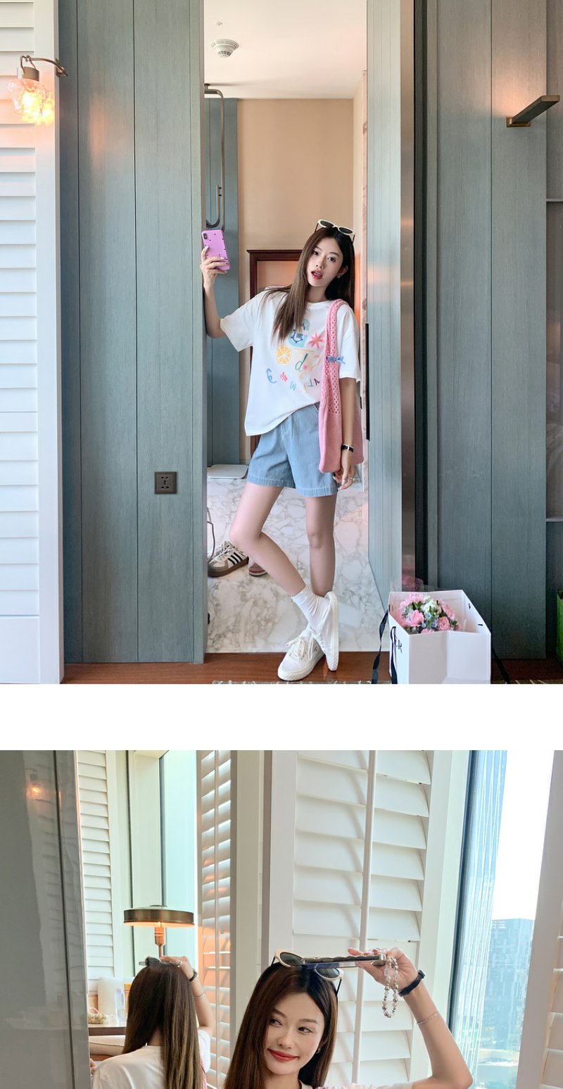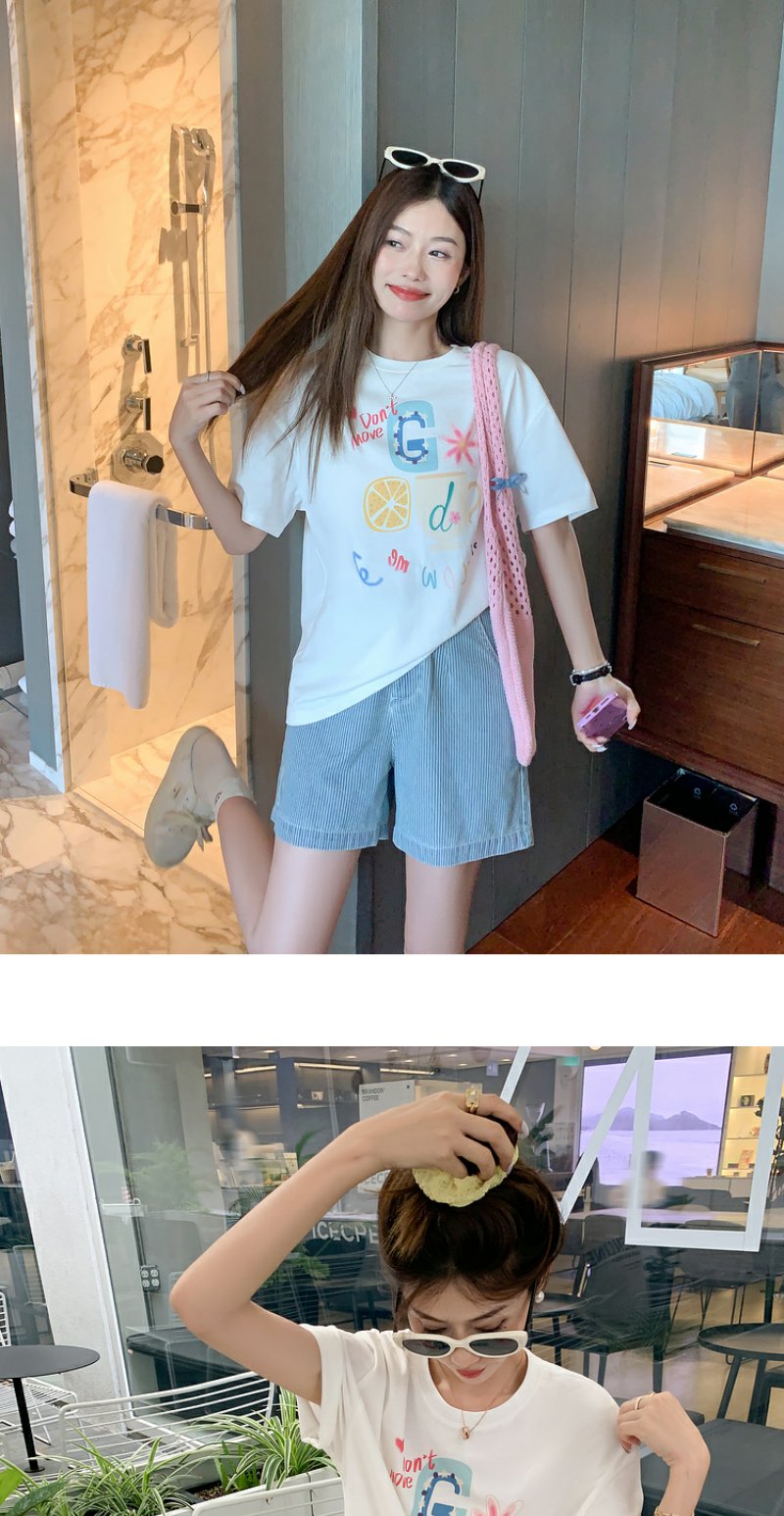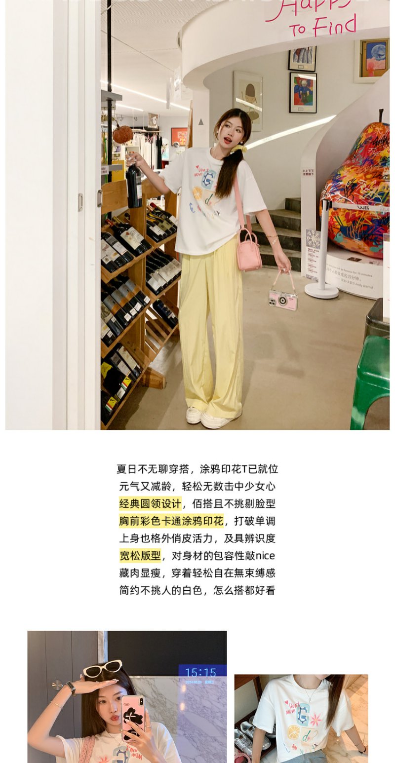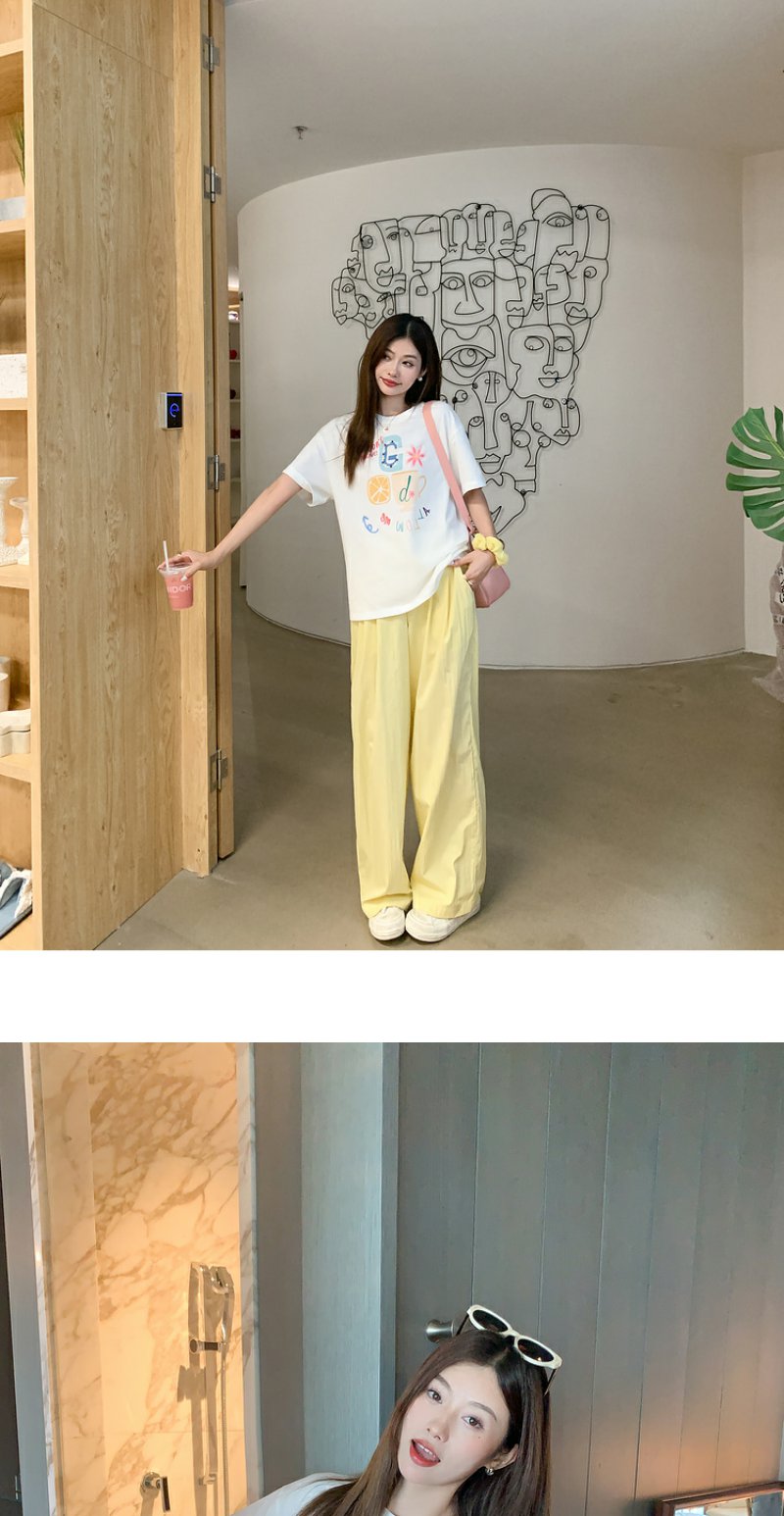 <曾小咸推荐>【奶奶糯糯】杯子字母印花白色T恤+裤子