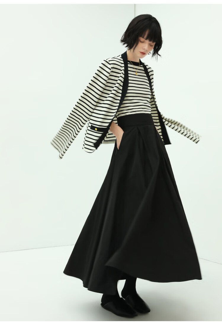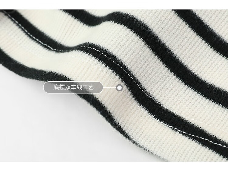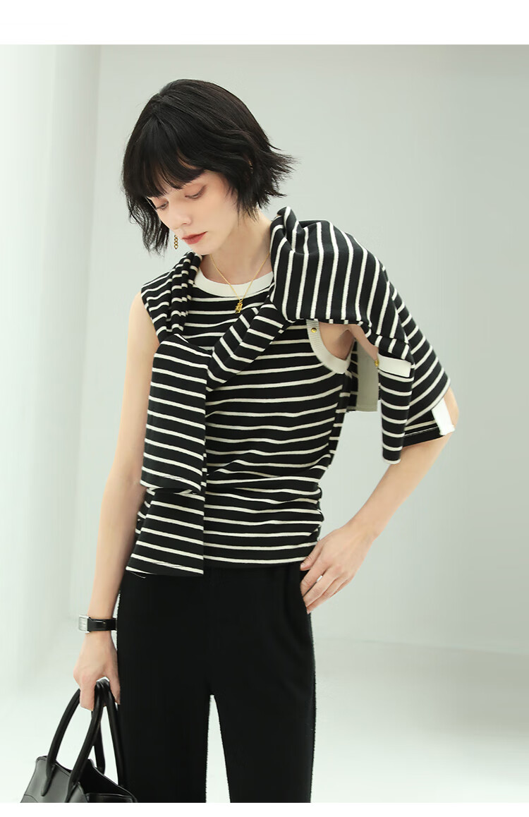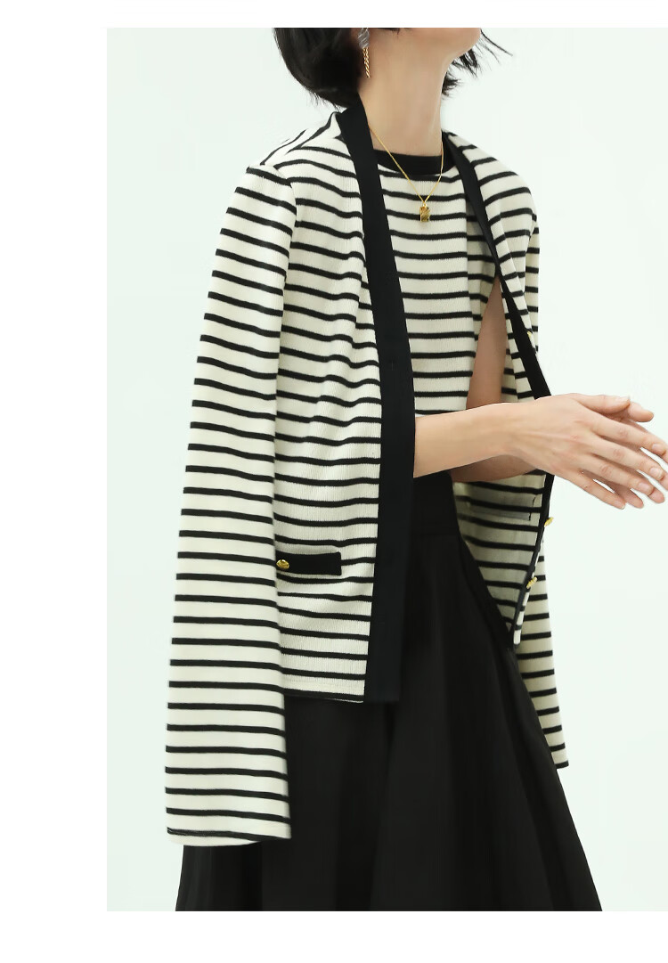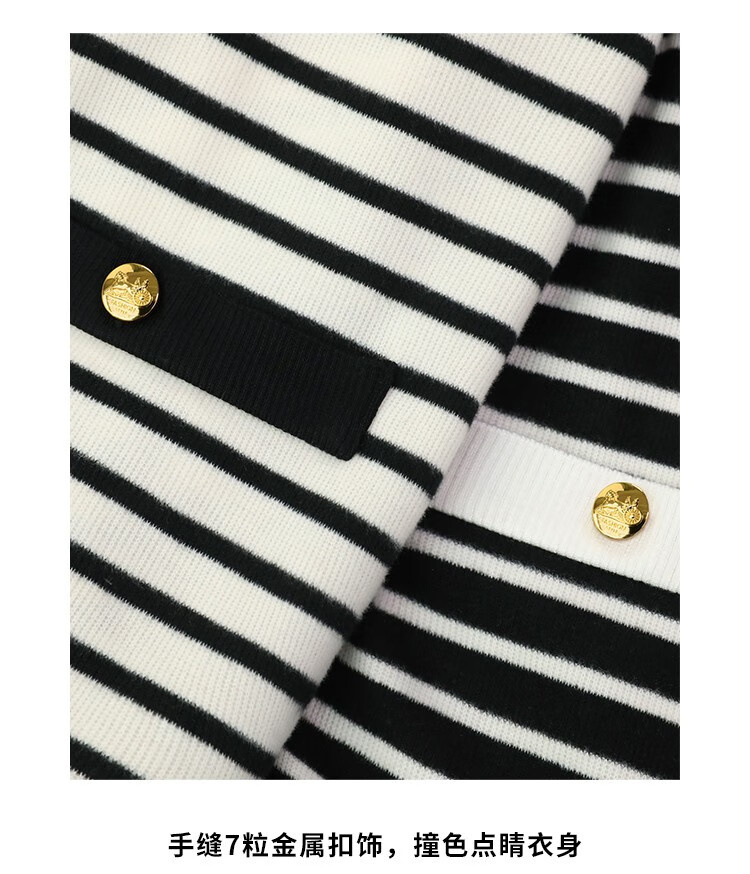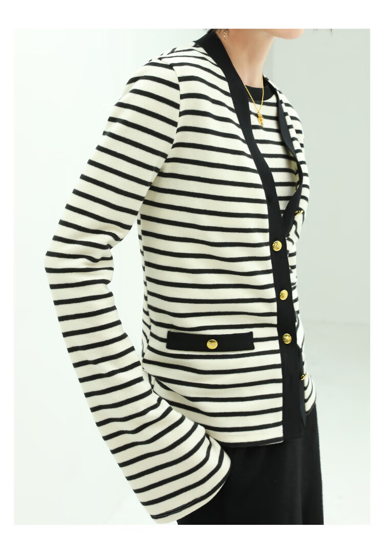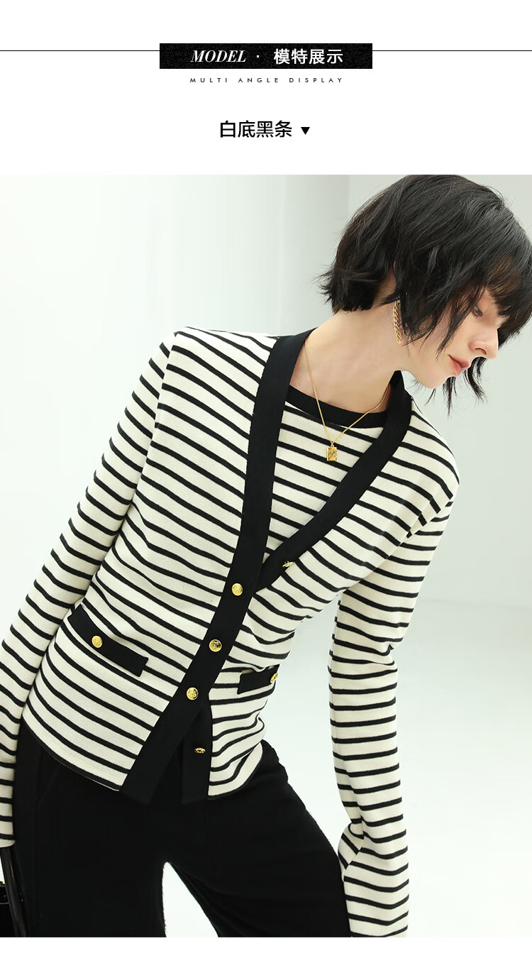 COCOBELLA撞色黑白条纹喇叭袖针织衫女V领开衫MZ157