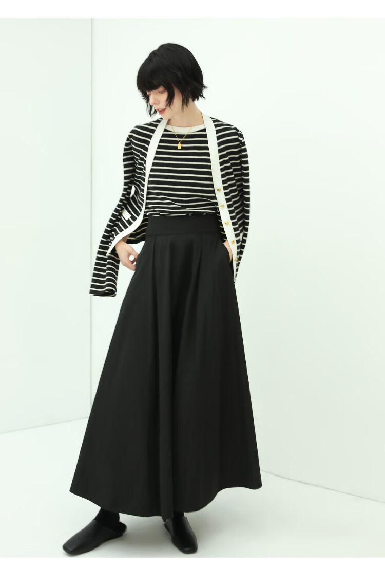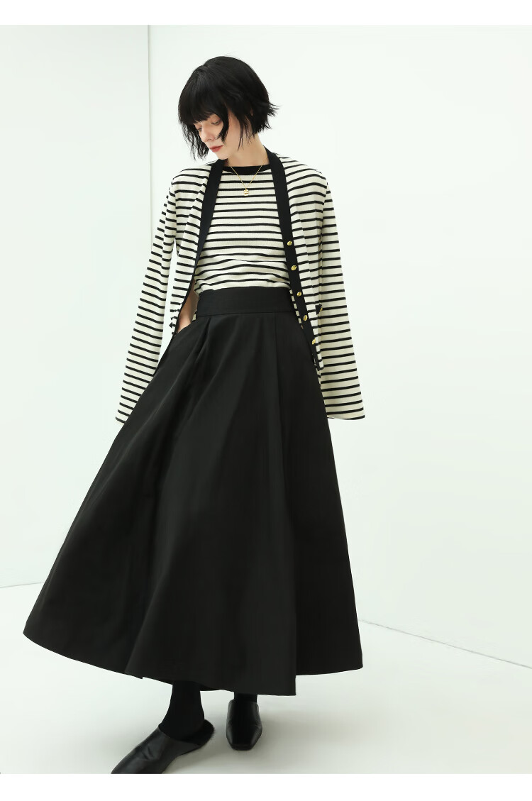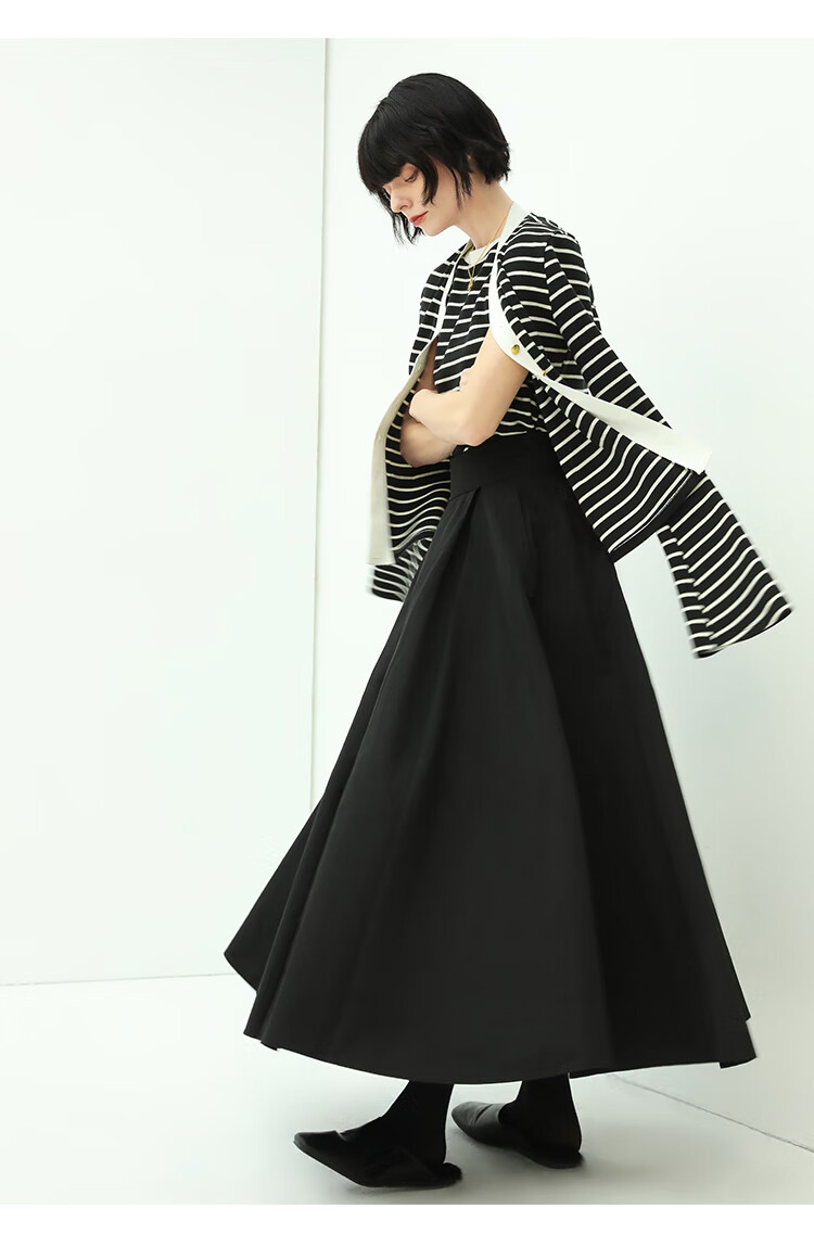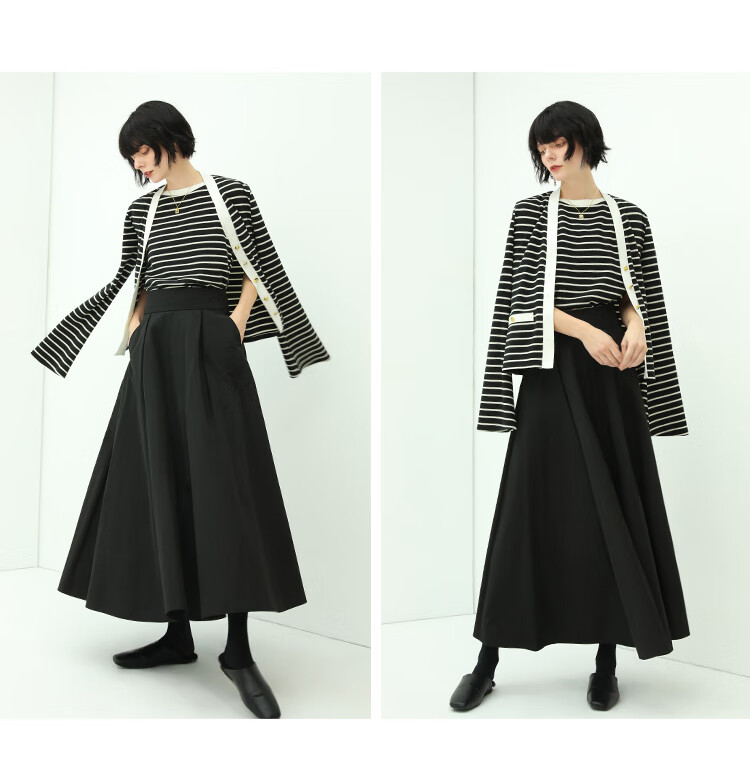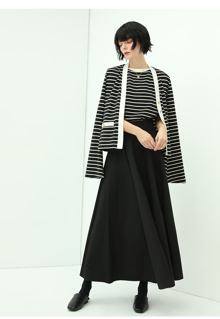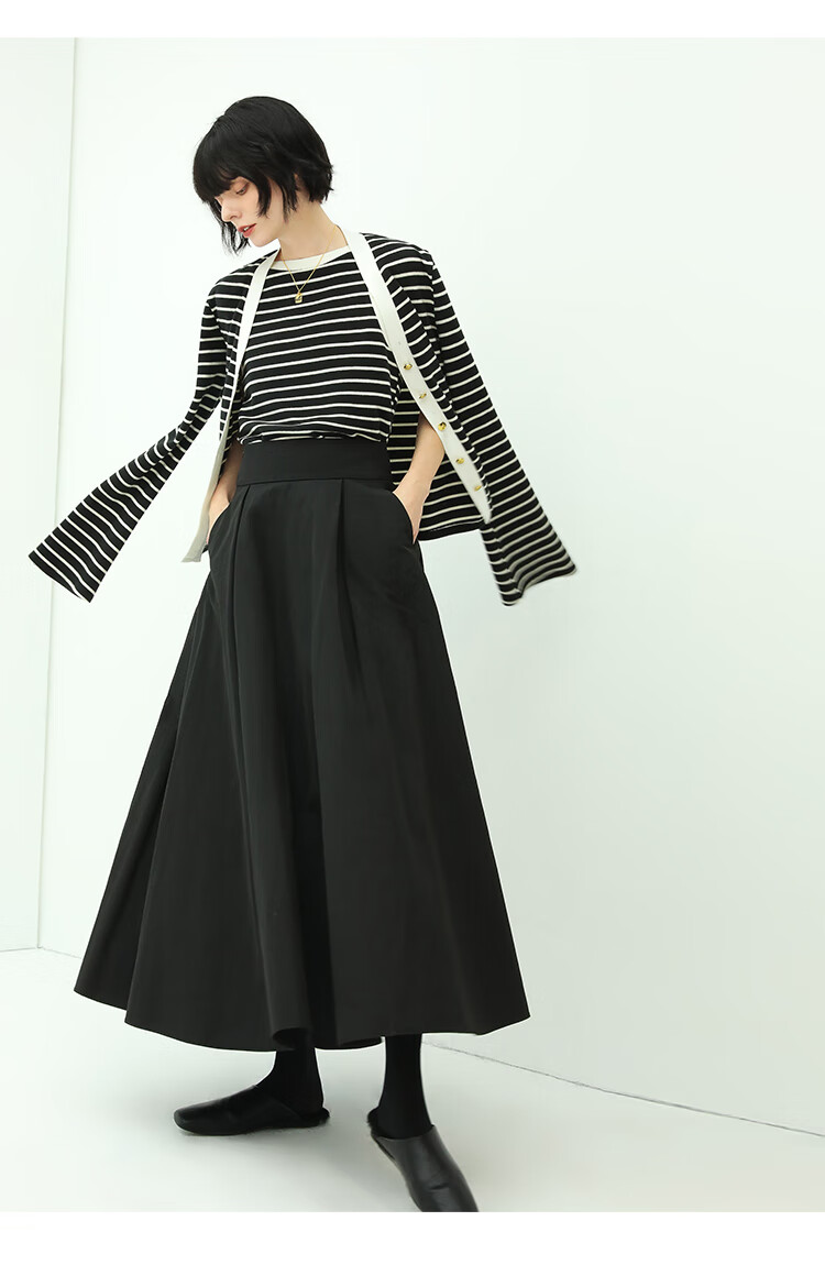 COCOBELLA撞色黑白条纹喇叭袖针织衫女V领开衫MZ157