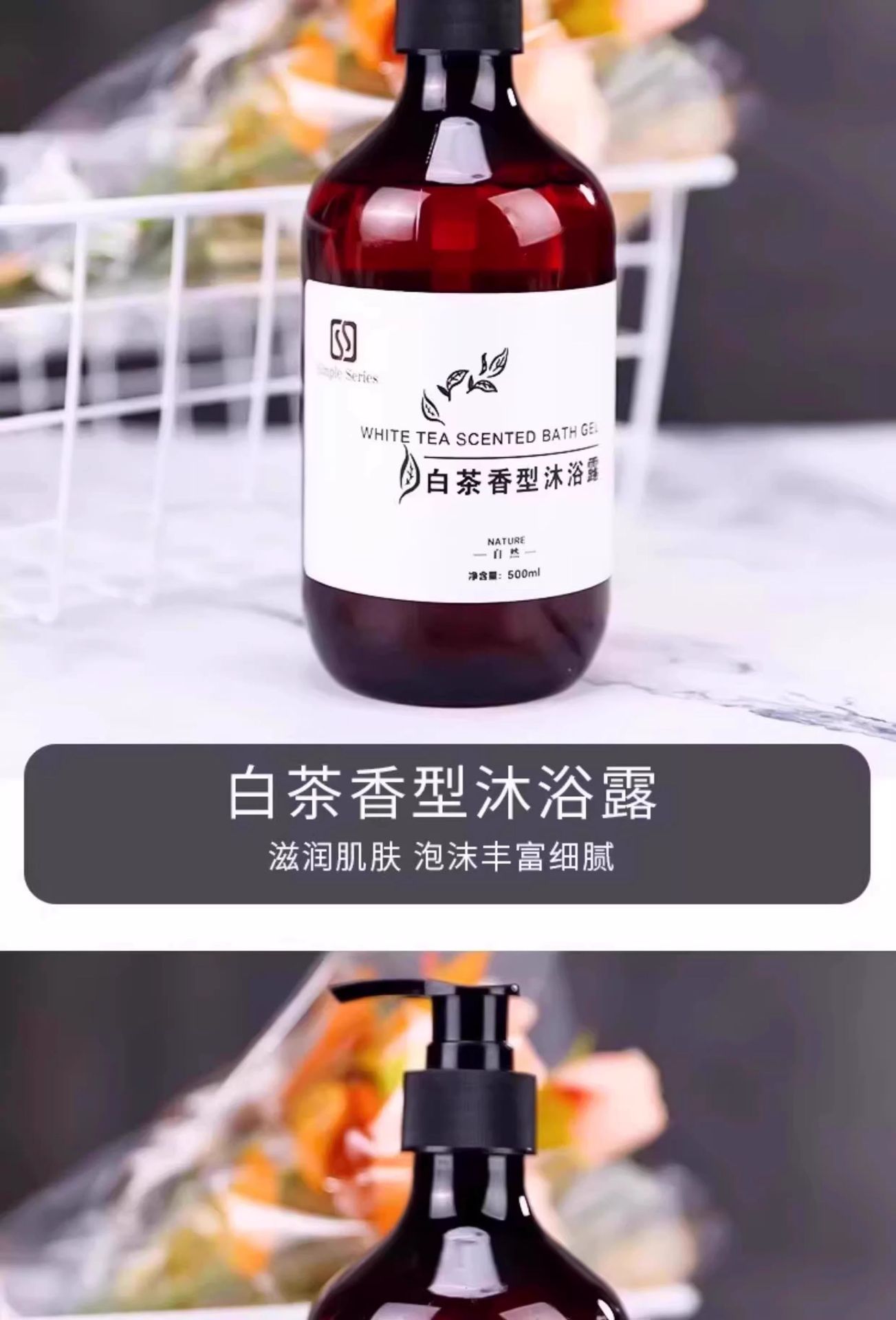 酒店用一次性白茶洗发水沐浴露宾馆民宿洗浴套装大瓶整箱厂家批发 商品图3