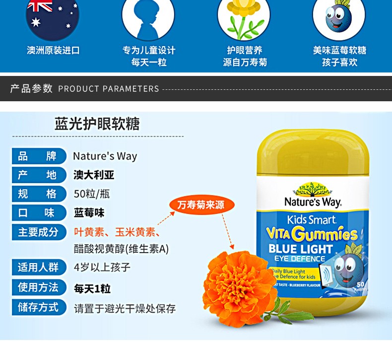 NATURE'S WAY 佳思敏 儿童防蓝光护眼软糖 50粒 澳大利亚