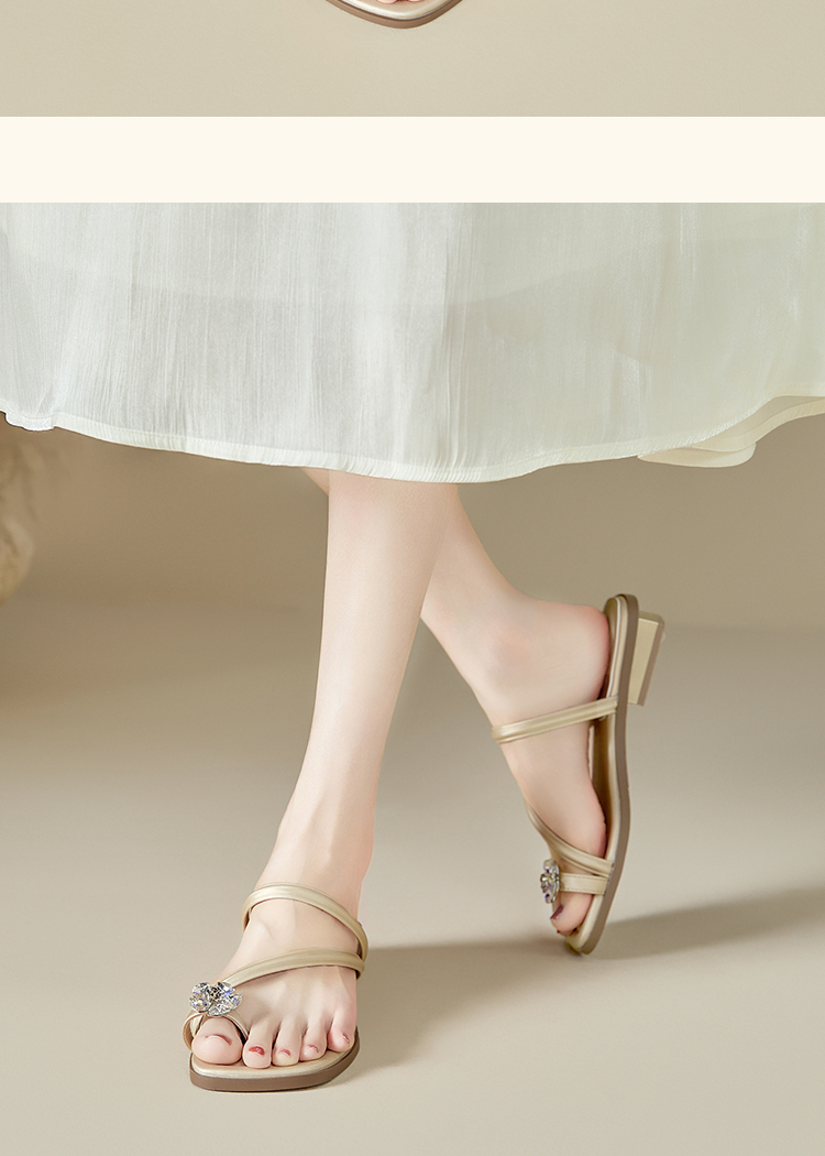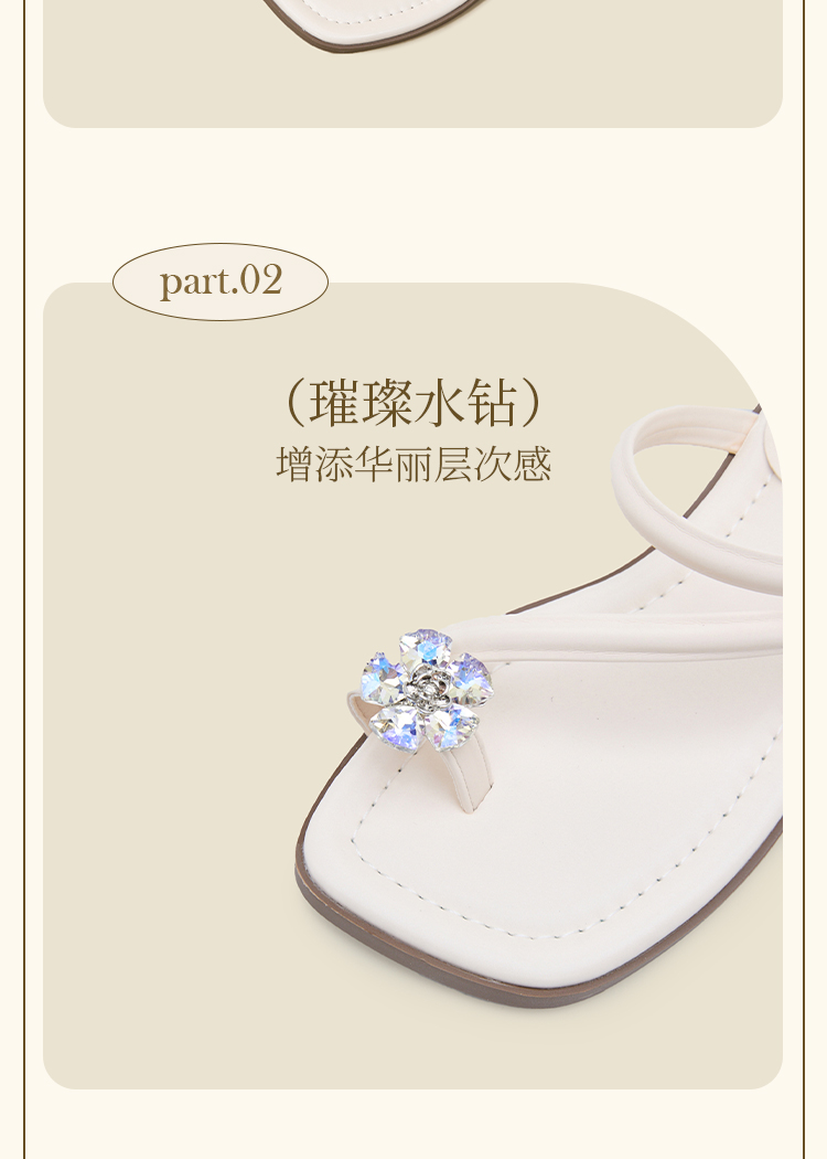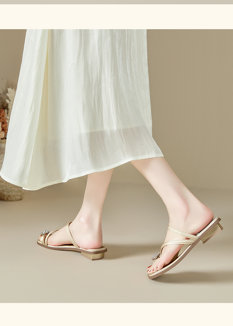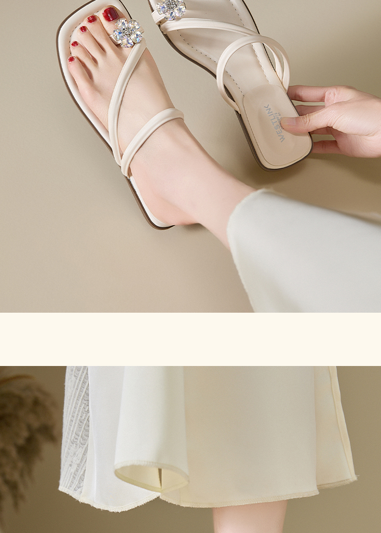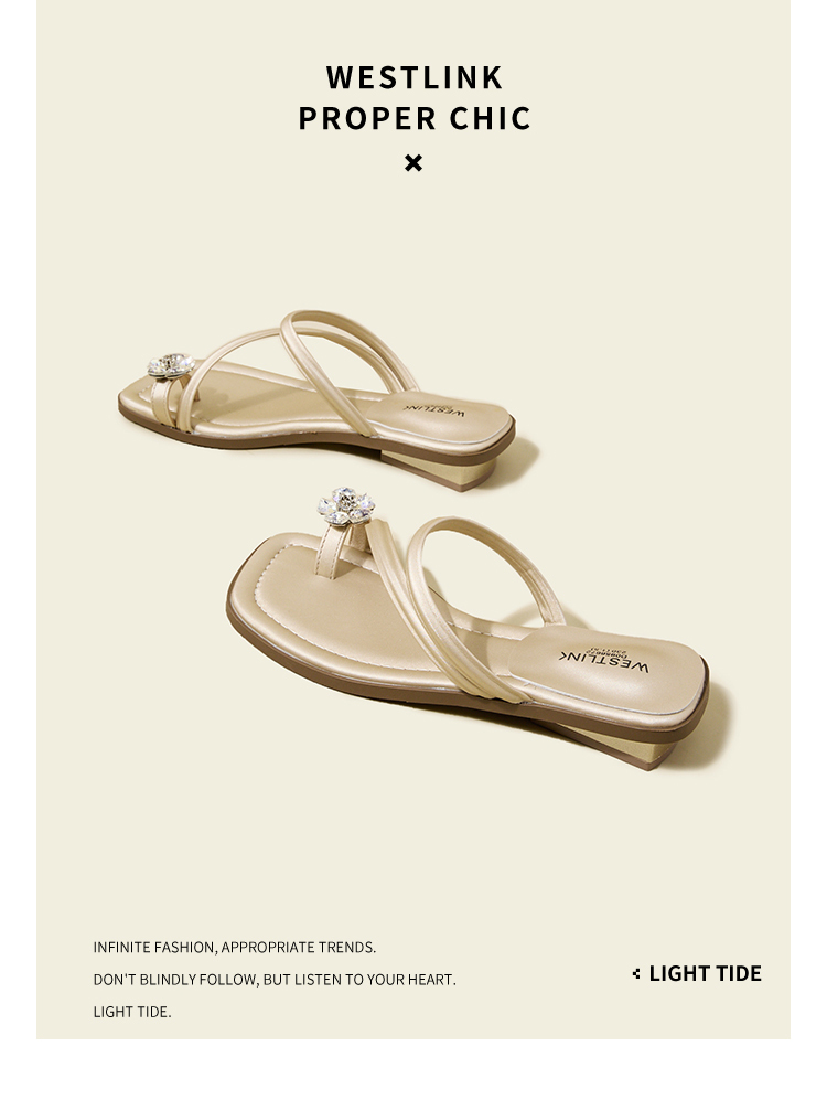 西遇夹趾凉拖鞋女外穿夏季新款平底鞋仙女风水钻配裙低跟凉鞋D0956672