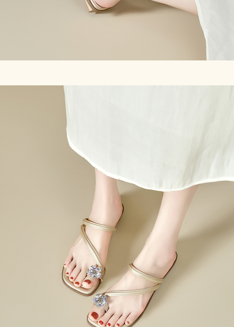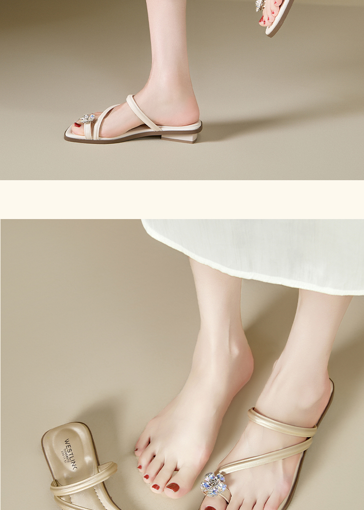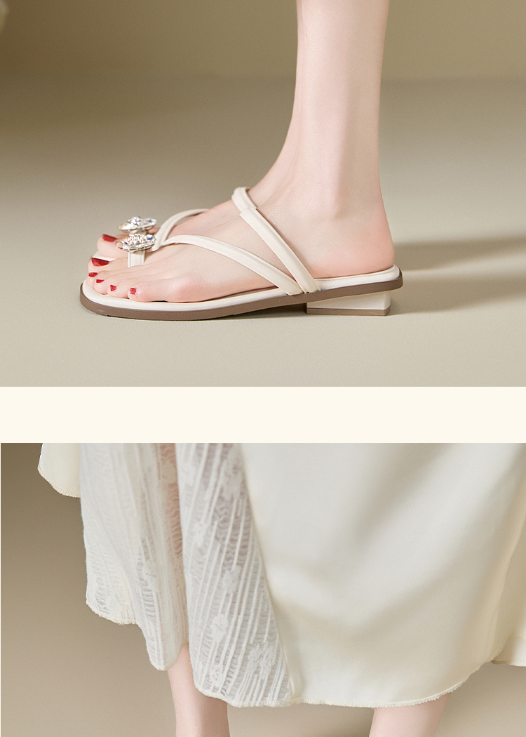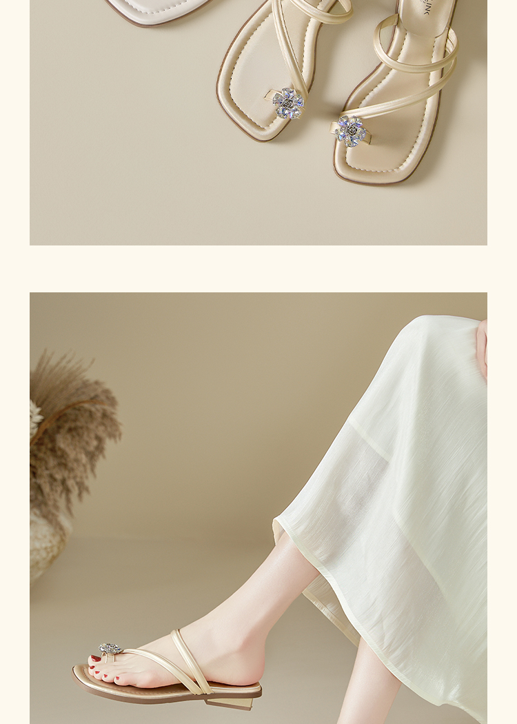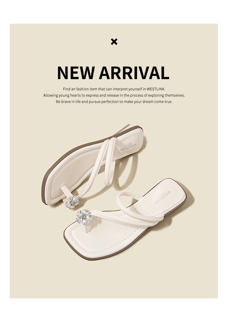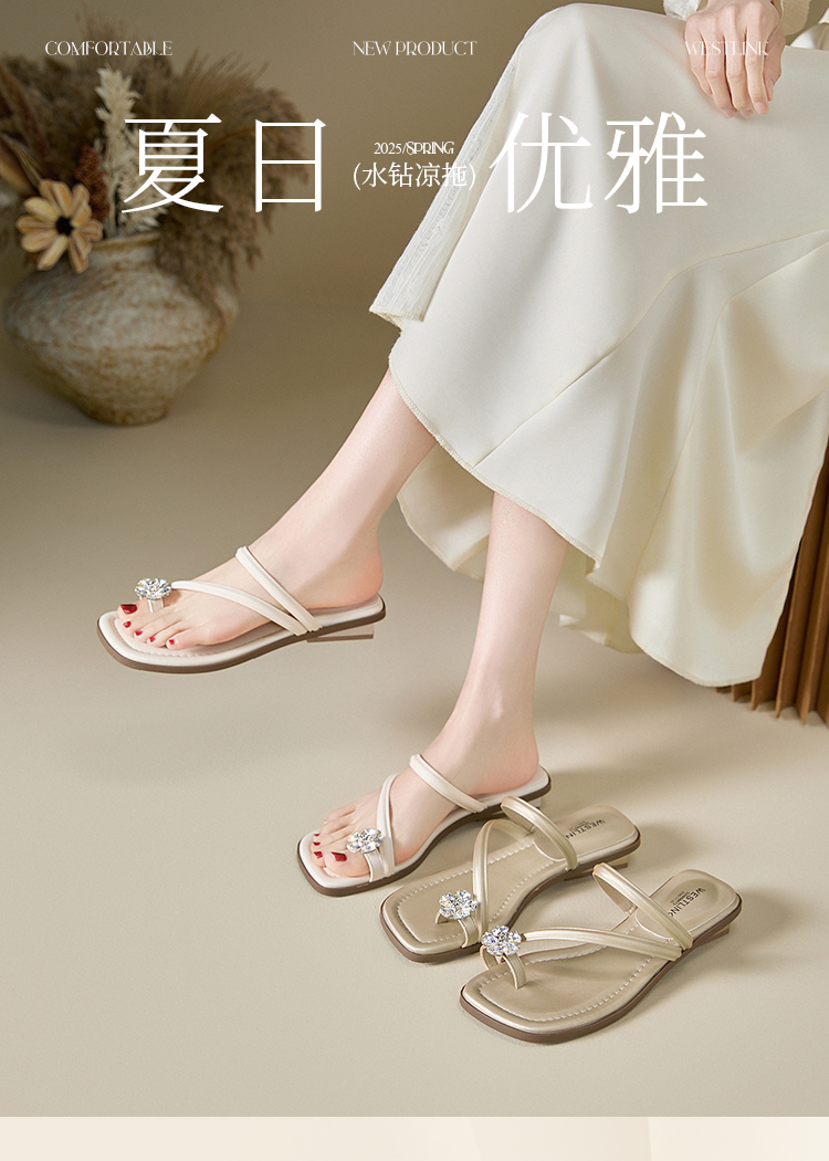 西遇夹趾凉拖鞋女外穿夏季新款平底鞋仙女风水钻配裙低跟凉鞋D0956672