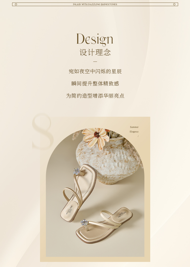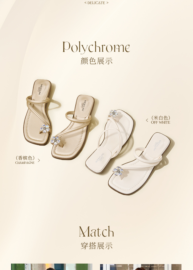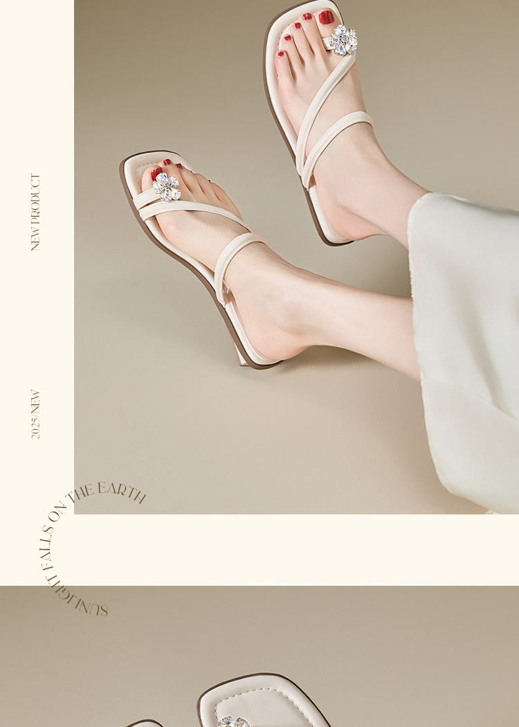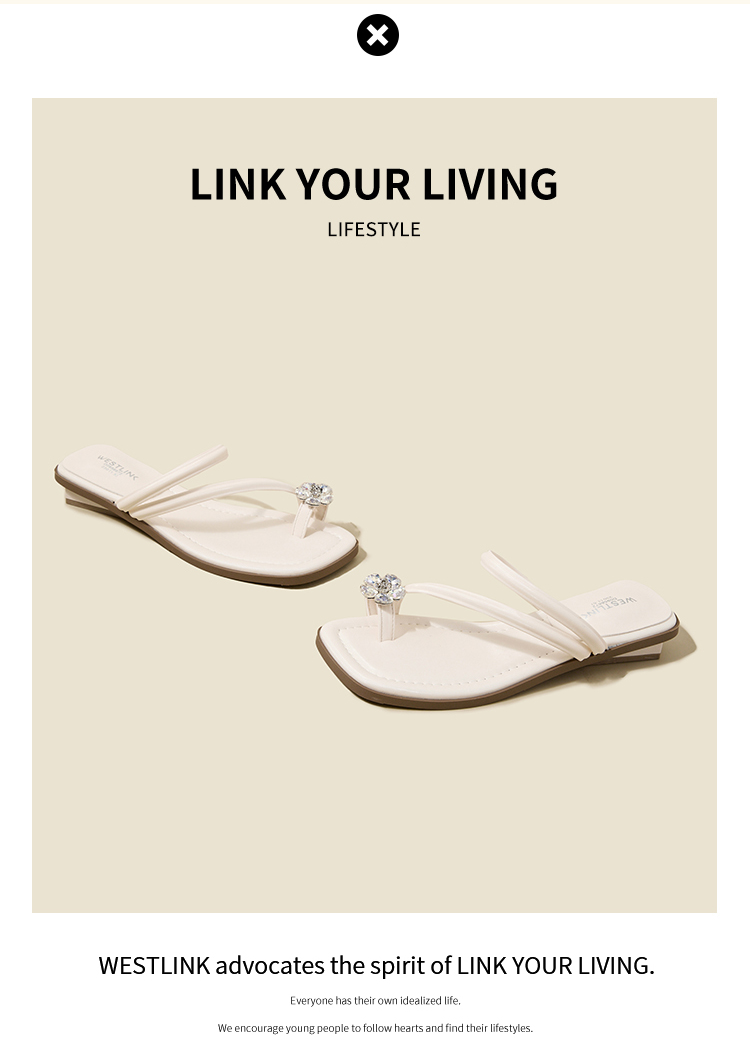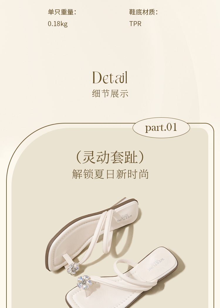 西遇夹趾凉拖鞋女外穿夏季新款平底鞋仙女风水钻配裙低跟凉鞋D0956672