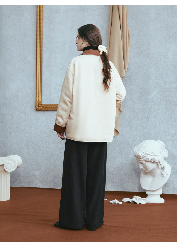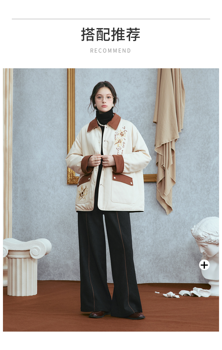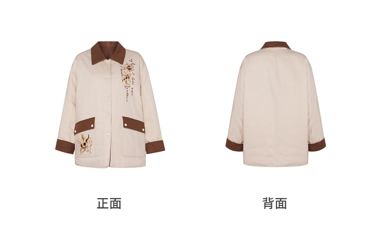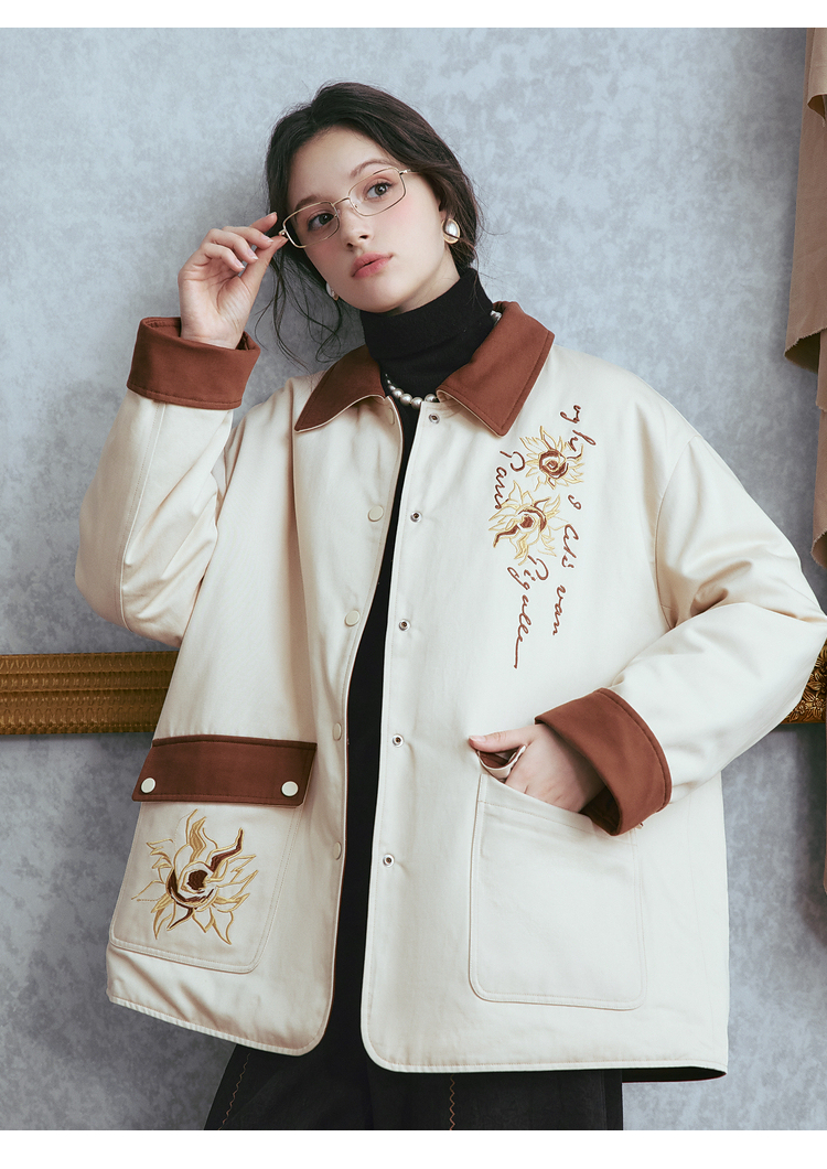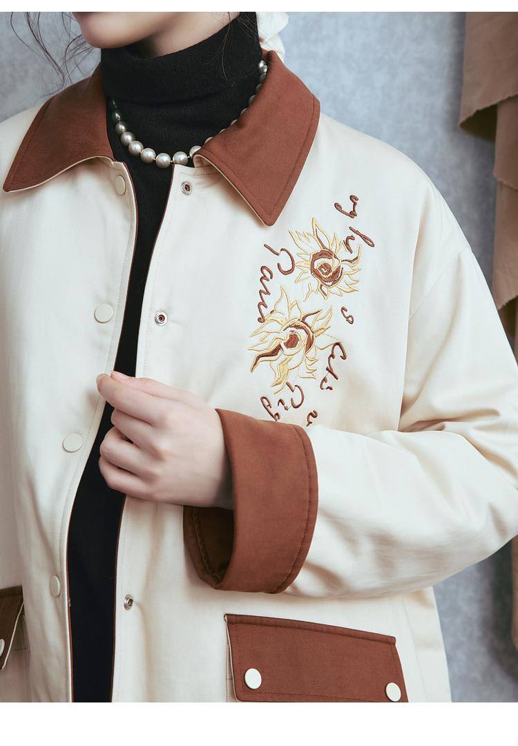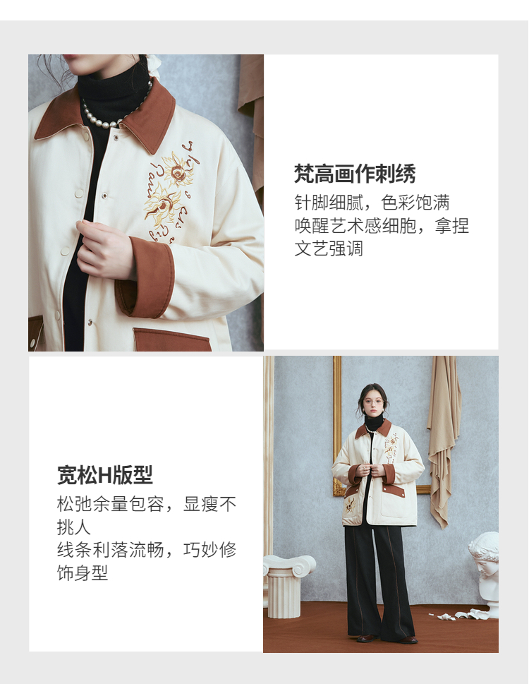 【暖冬内购】两三事梵高文艺 雾色手稿 2025冬季新款刺绣拼色两面穿羽绒外套女