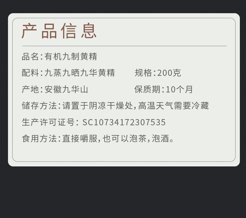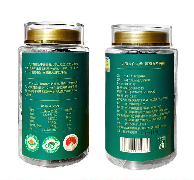 有机九制黄精 古法九蒸九硒九华黄精独立小包装200g/罐【京东快递送货上门】