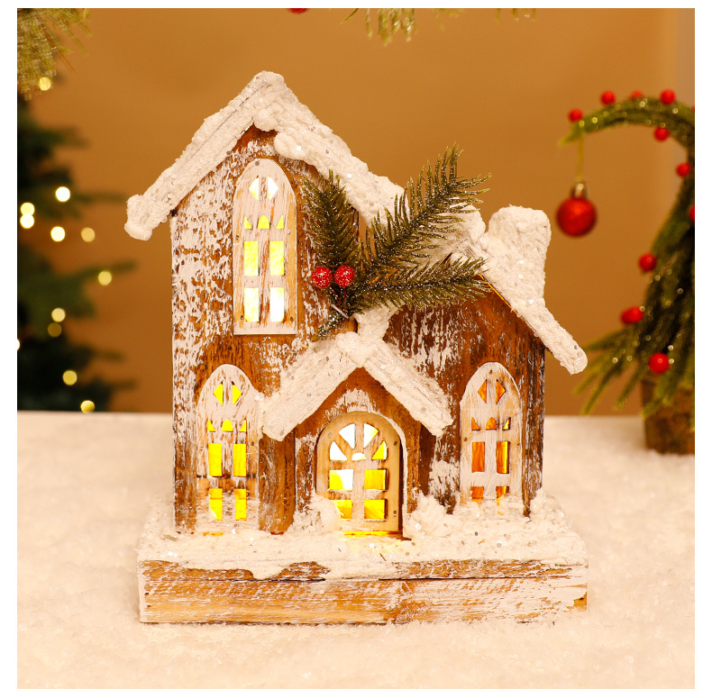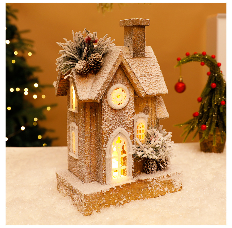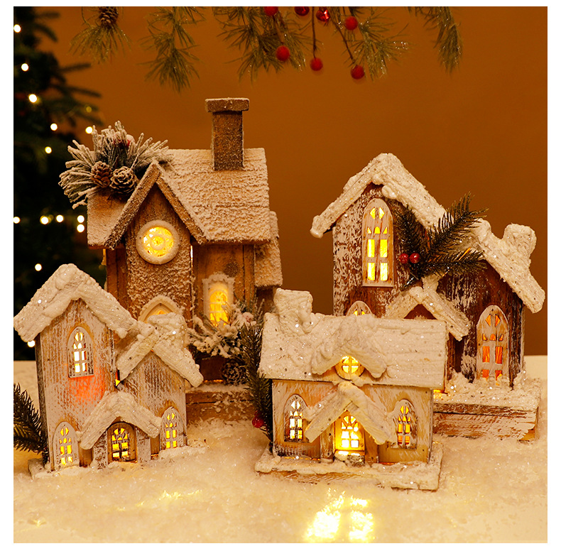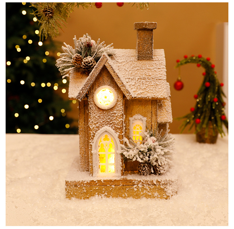 【圣诞发光雪景木屋】木质雪房子小木屋摆件 欧式复古原木小雪屋