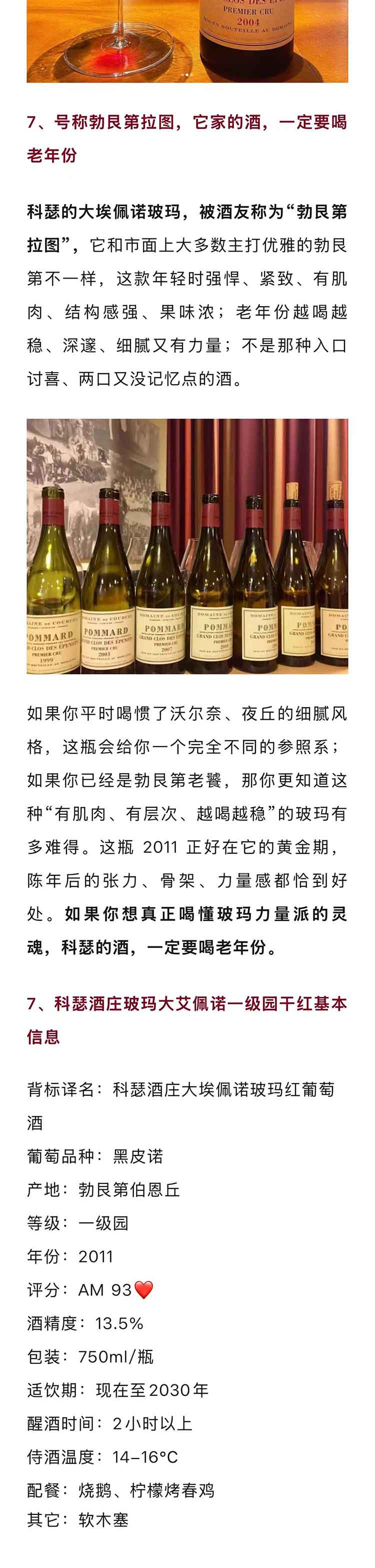 【酒庄直出老年份】法国勃艮第伯恩丘的康帝2011年科瑟酒庄玻玛大艾佩诺一级园黑皮诺干红