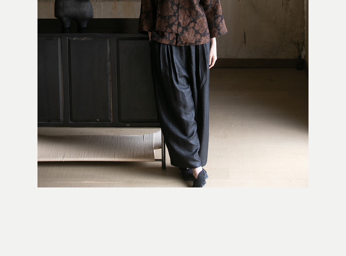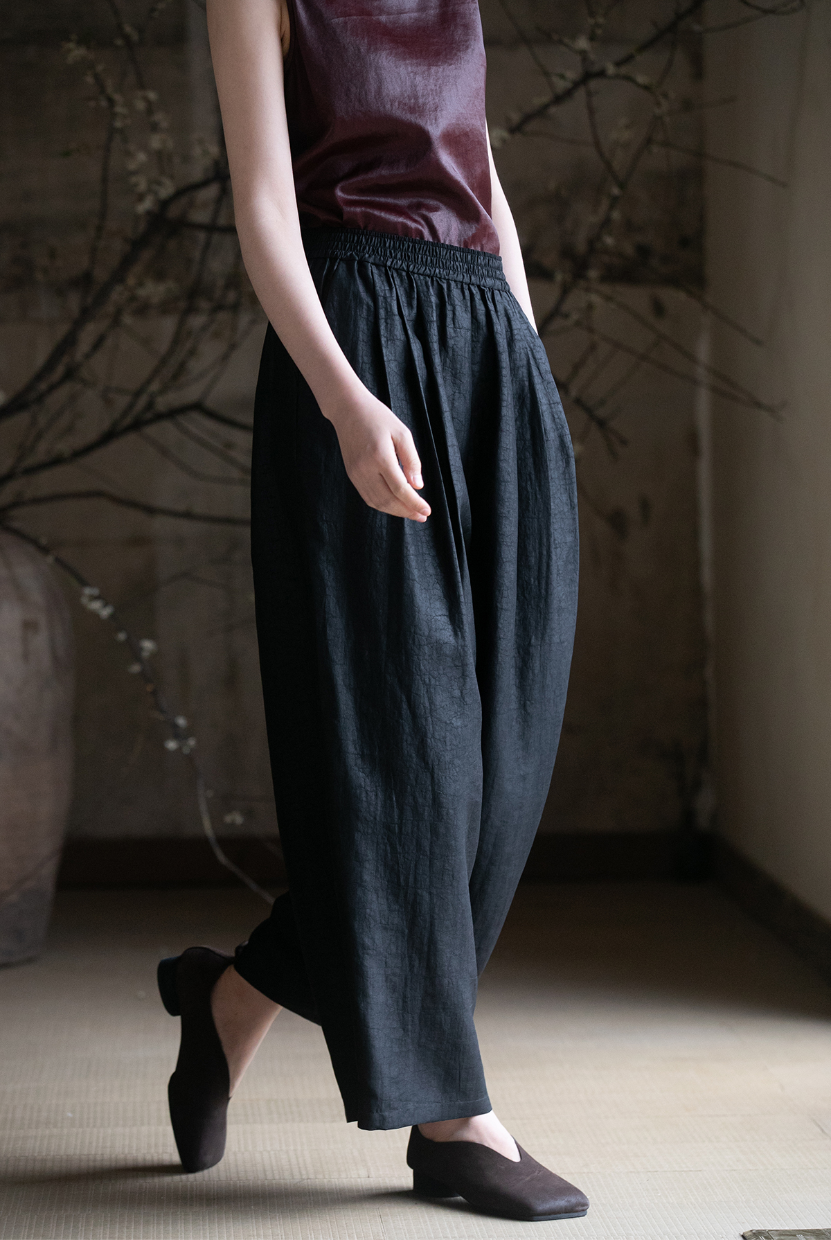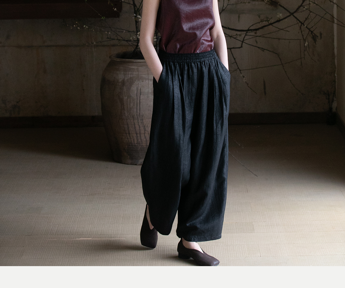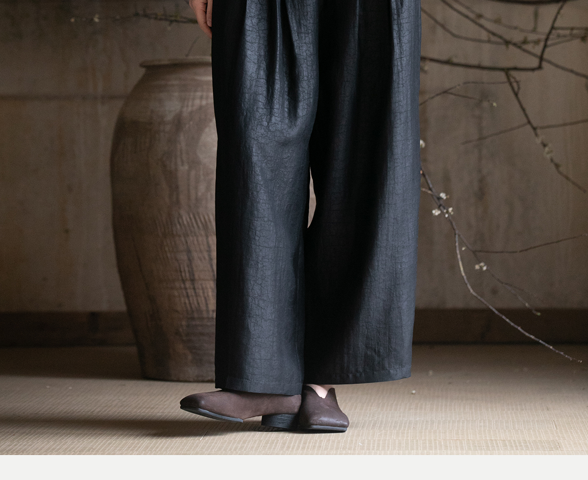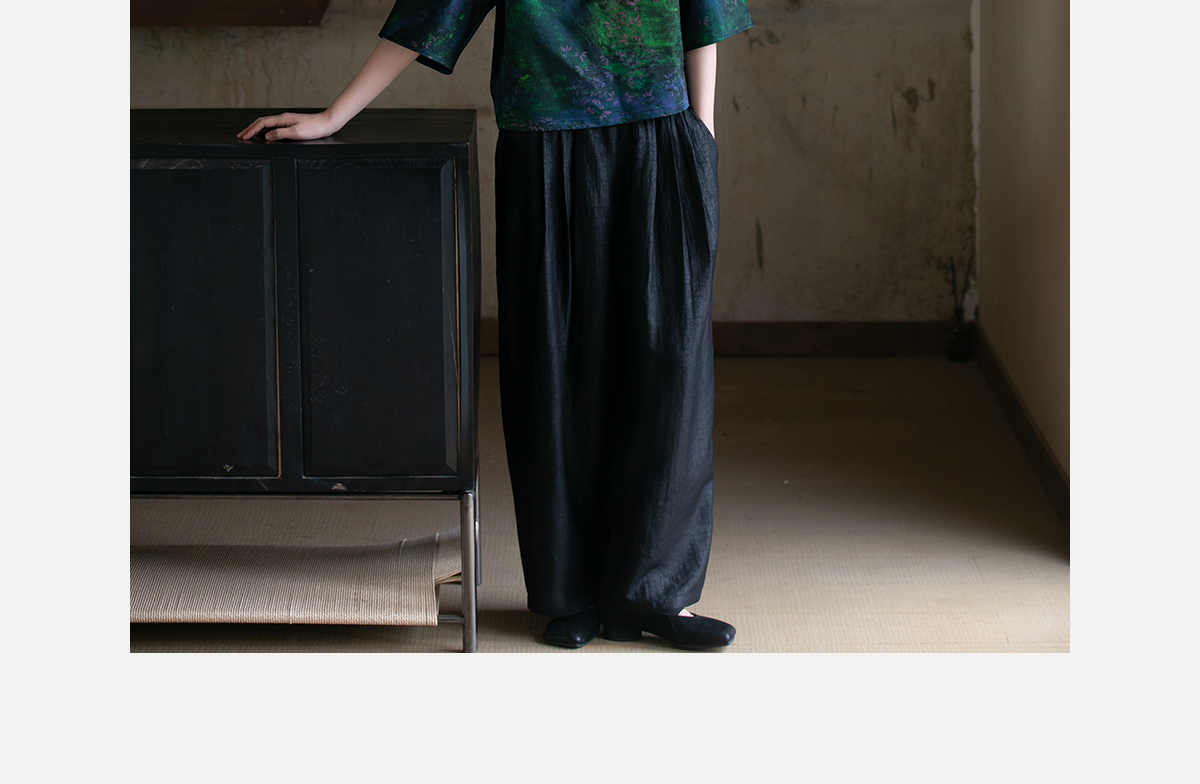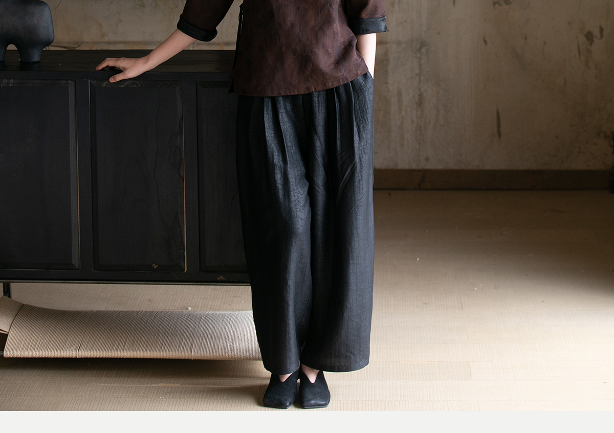 牧衣游原创龟裂纹香云纱阔腿裤轻薄显瘦黑色宽松百搭长裤 浮云卷