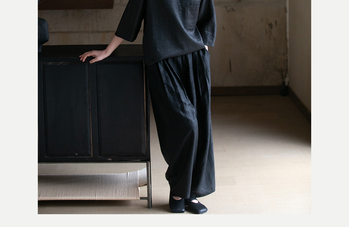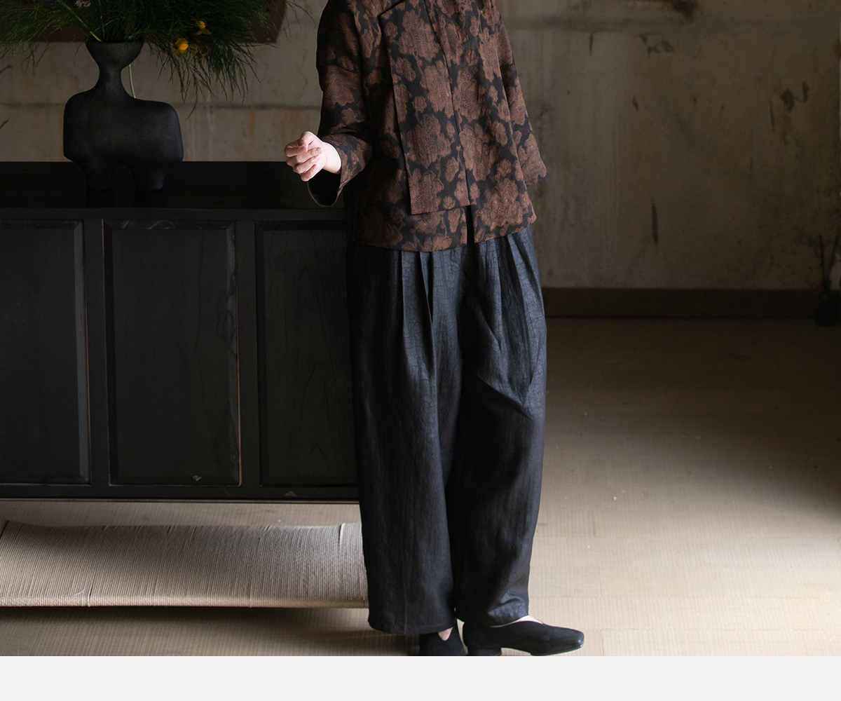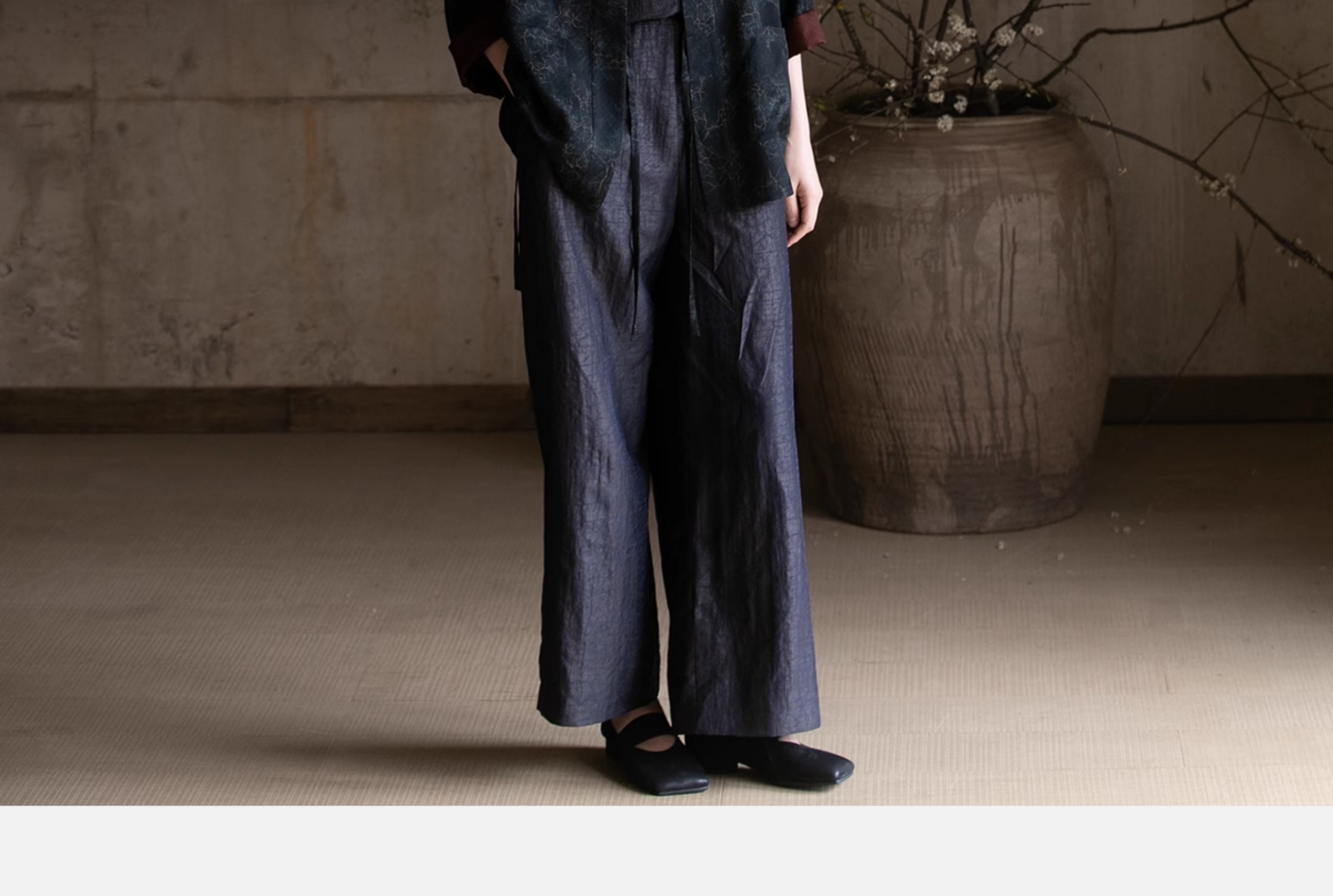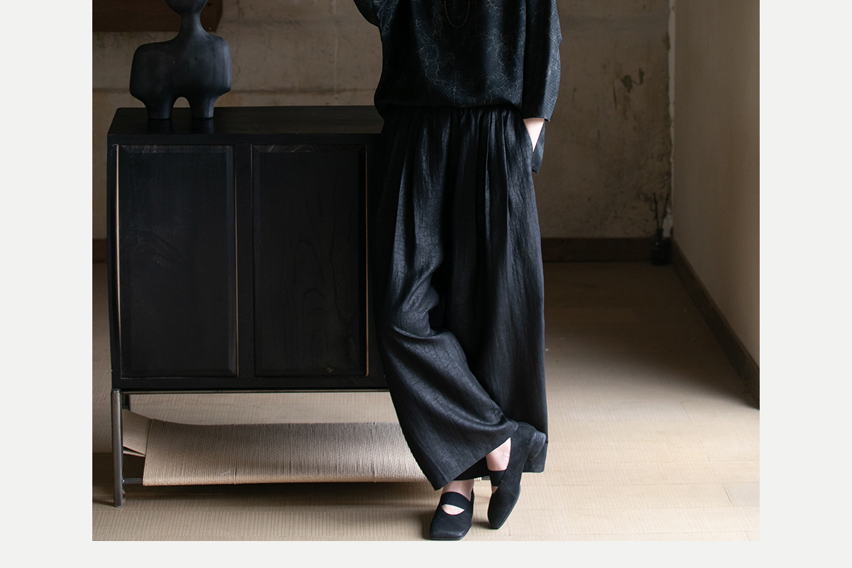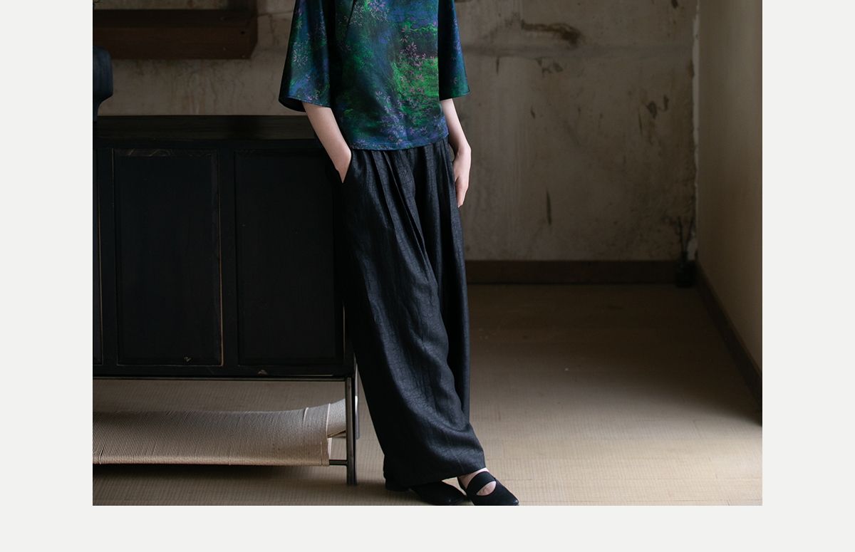 牧衣游原创龟裂纹香云纱阔腿裤轻薄显瘦黑色宽松百搭长裤 浮云卷