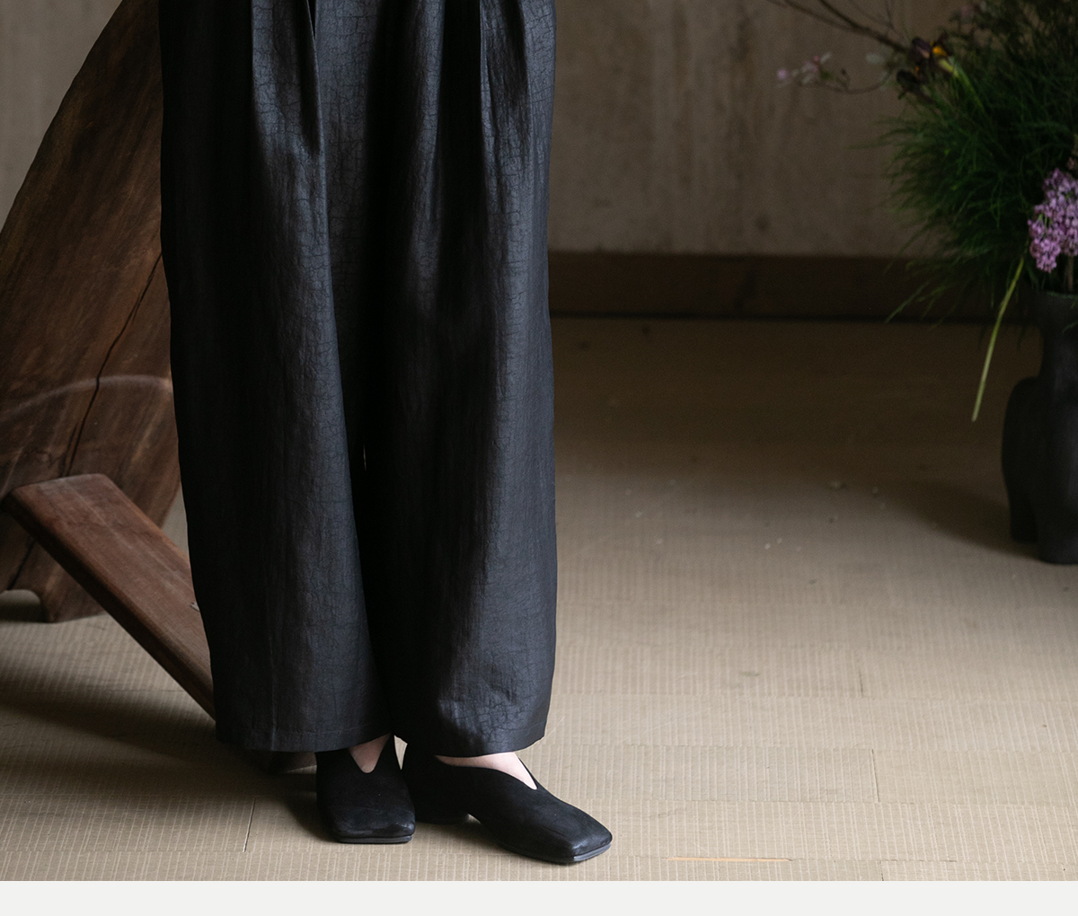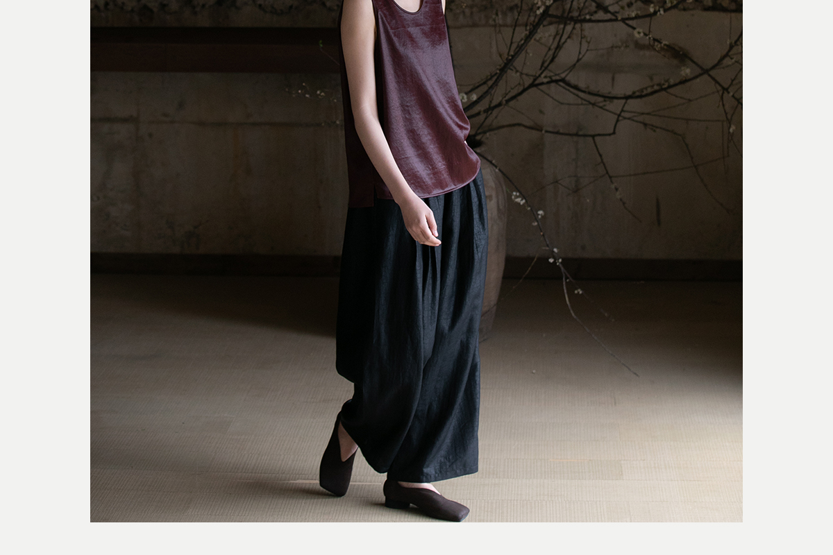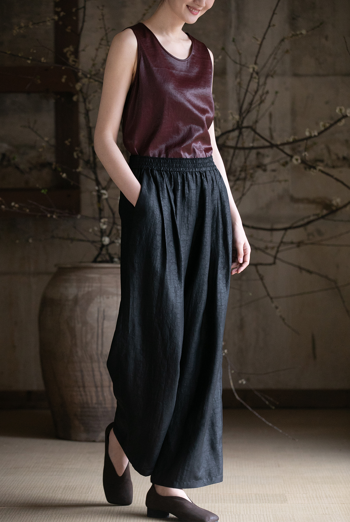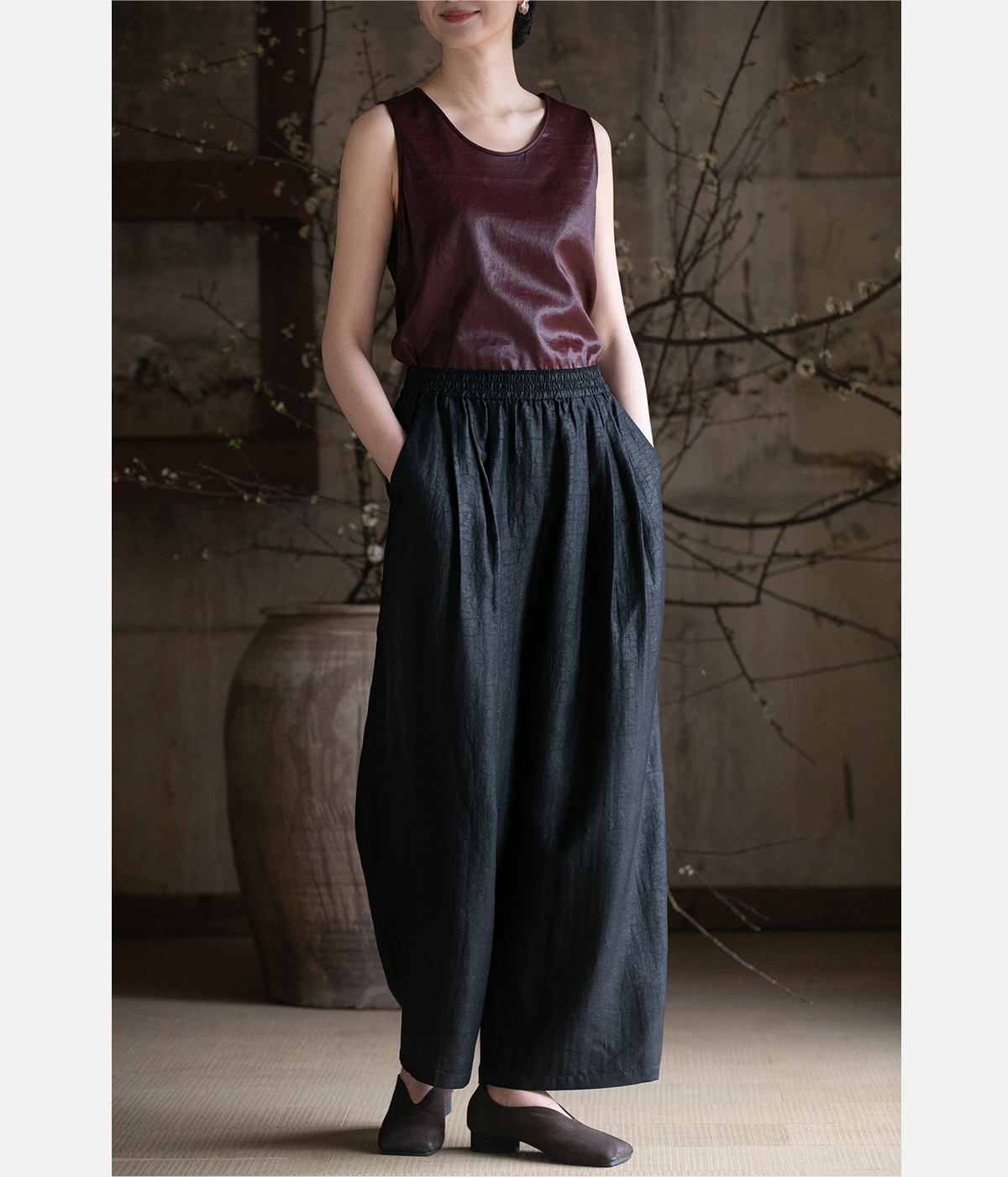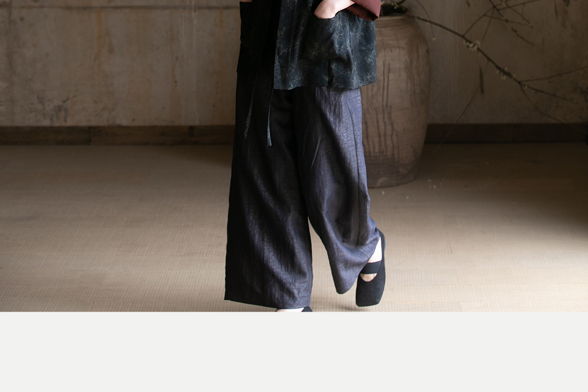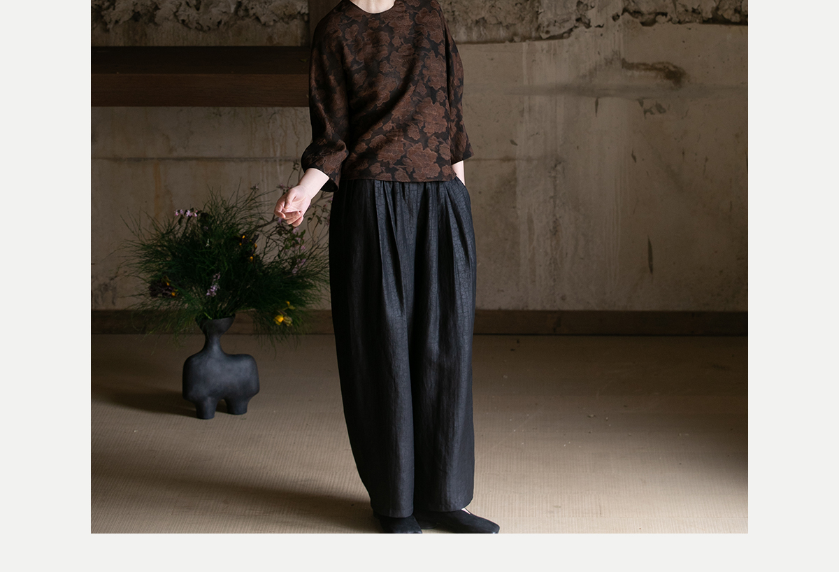 牧衣游原创龟裂纹香云纱阔腿裤轻薄显瘦黑色宽松百搭长裤 浮云卷