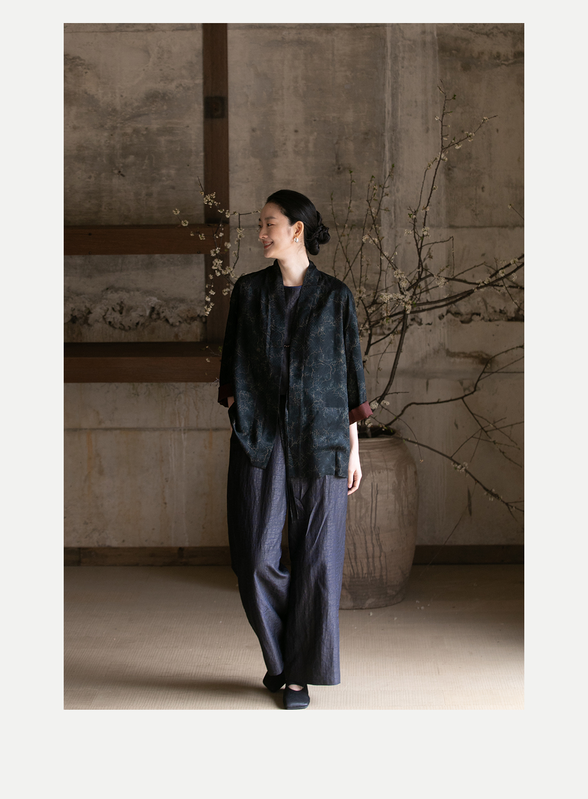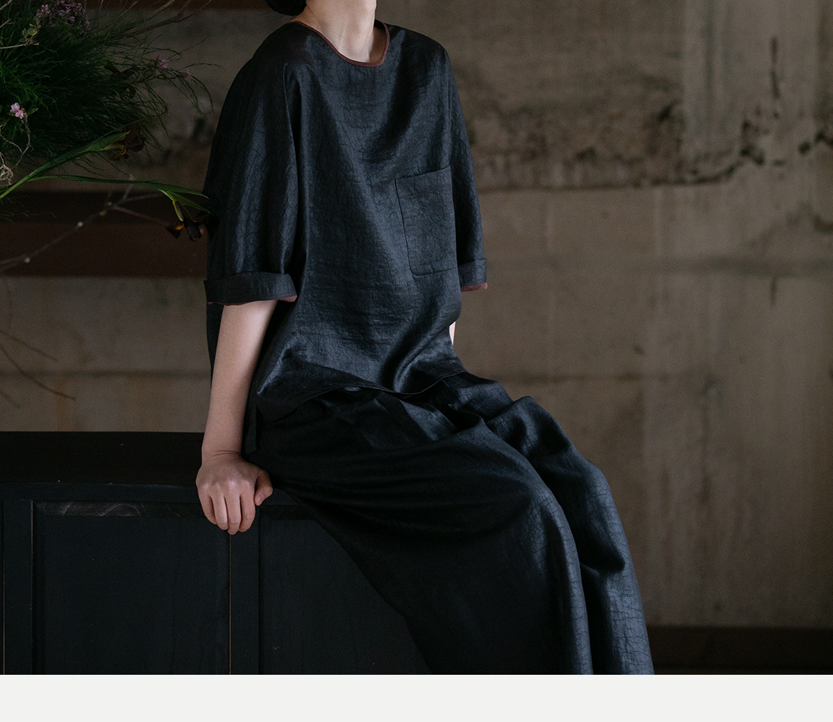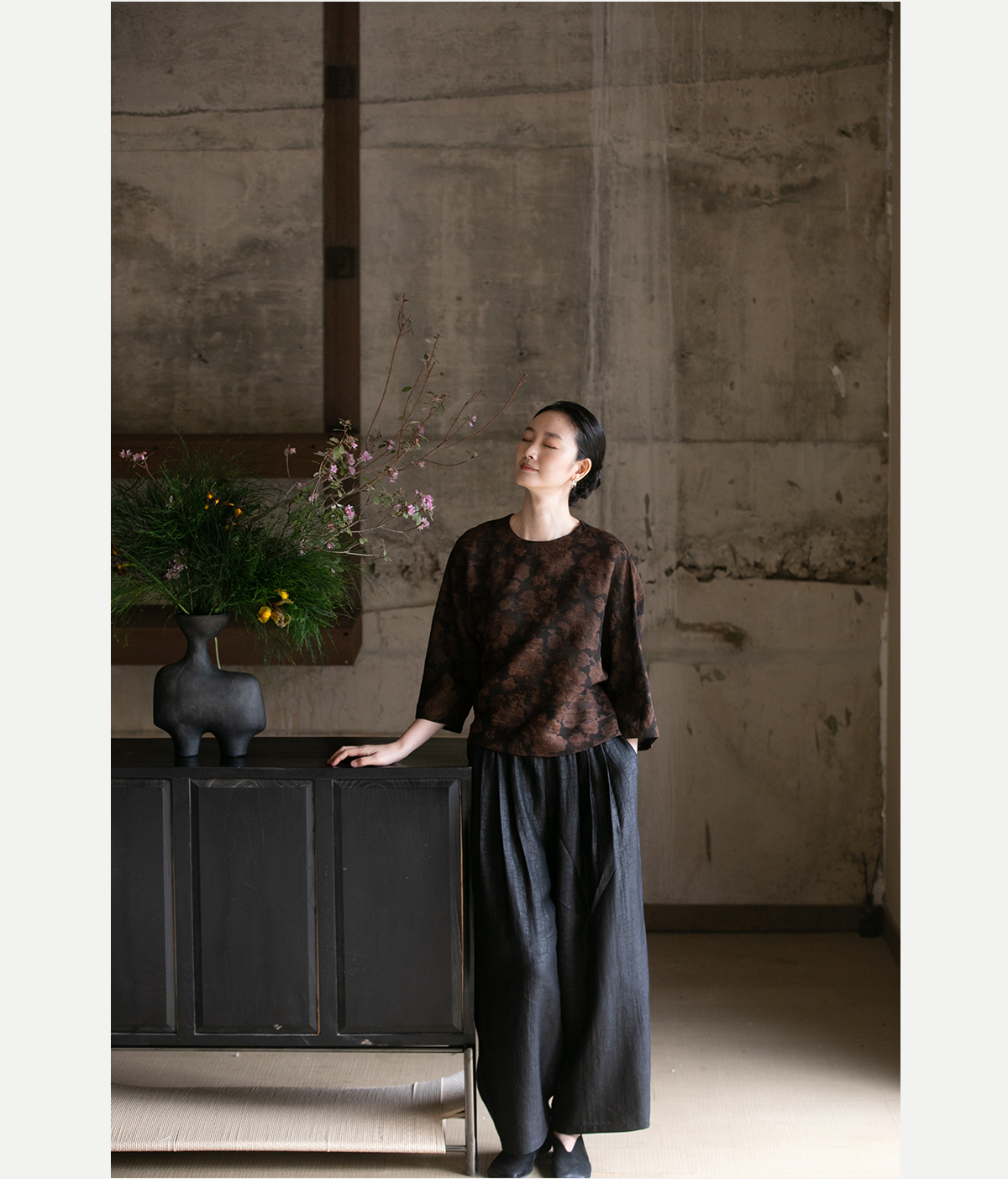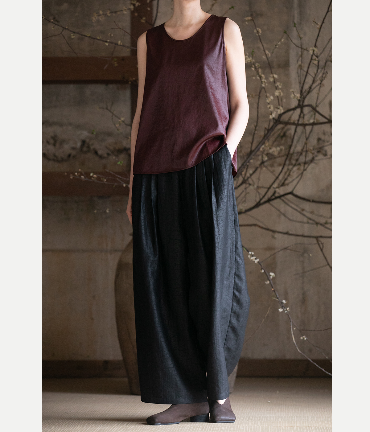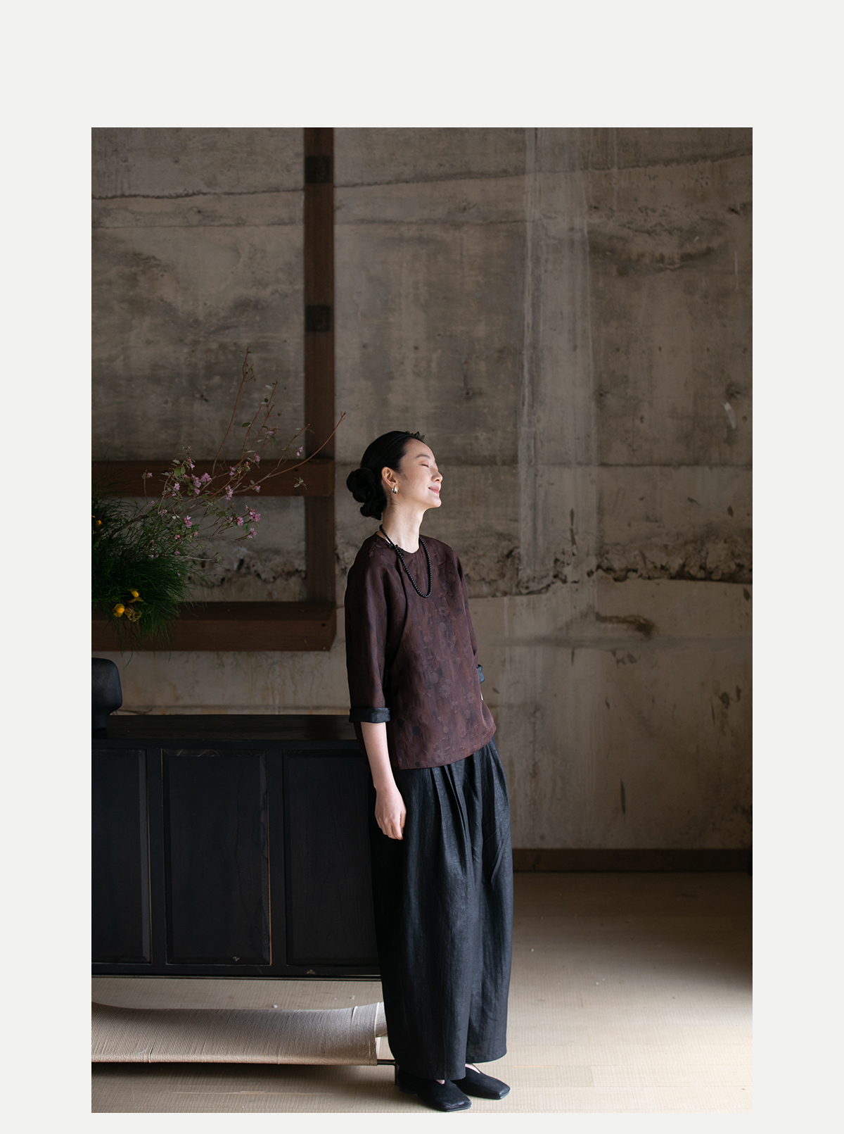 牧衣游原创龟裂纹香云纱阔腿裤轻薄显瘦黑色宽松百搭长裤 浮云卷