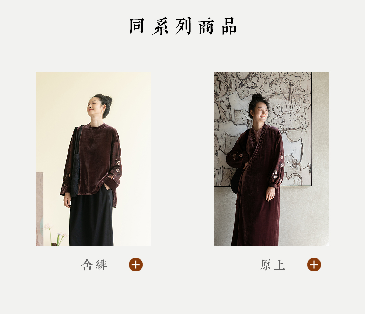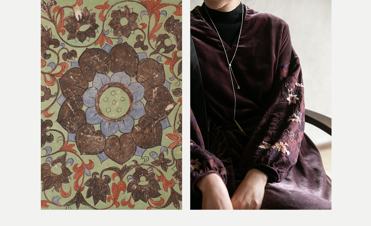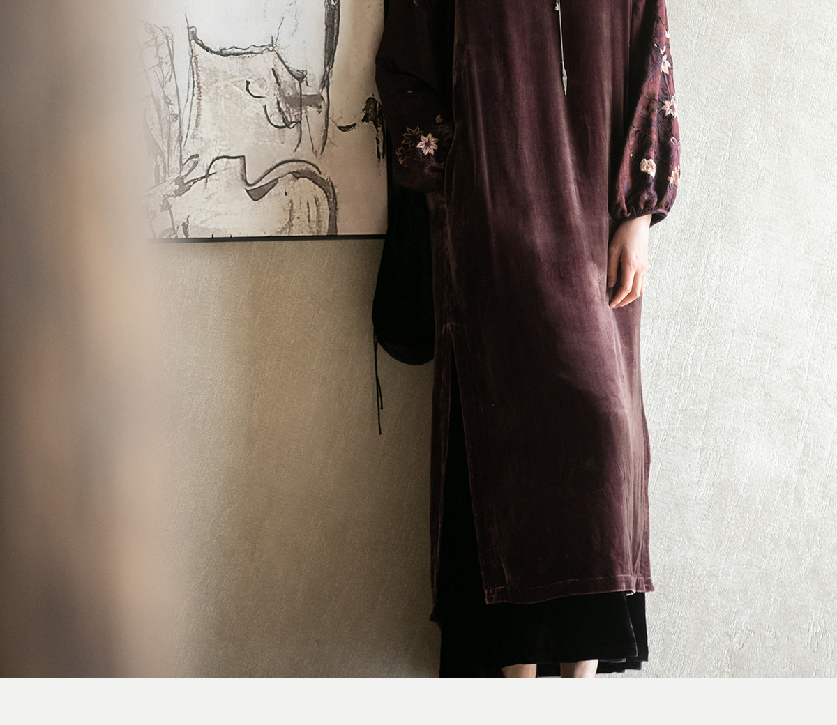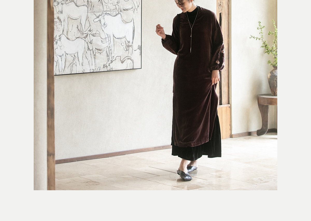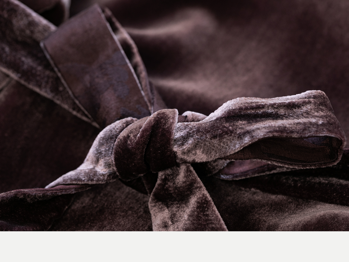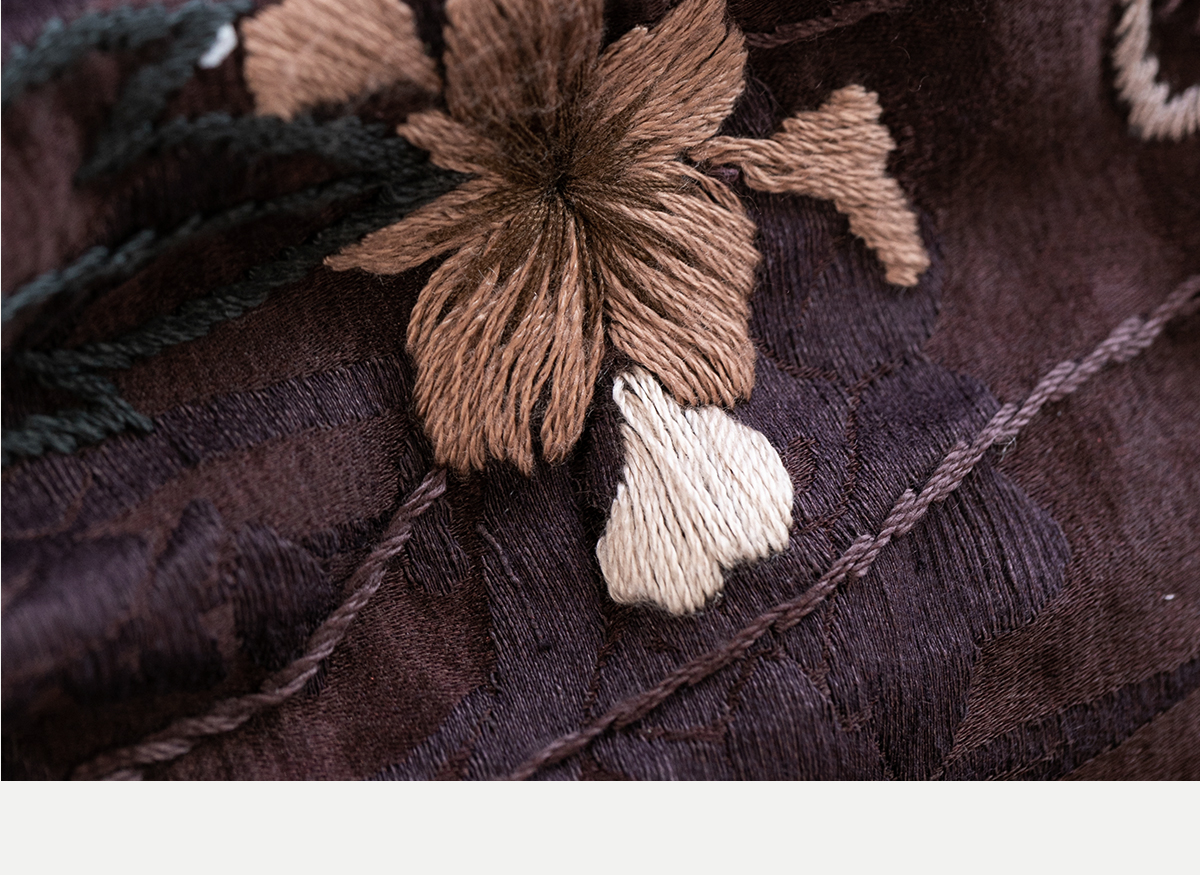 牧衣游原创丝绒手工刺绣连衣裙新款古朴东方V领气质宽松长裙 李子