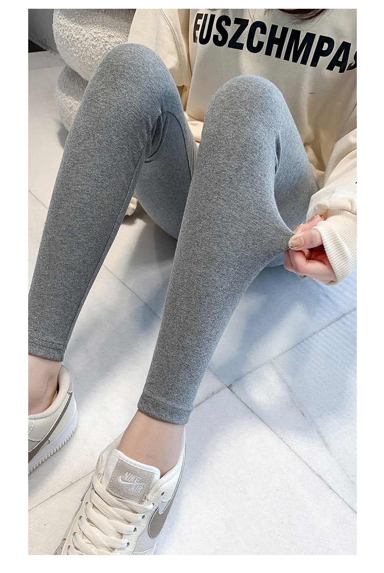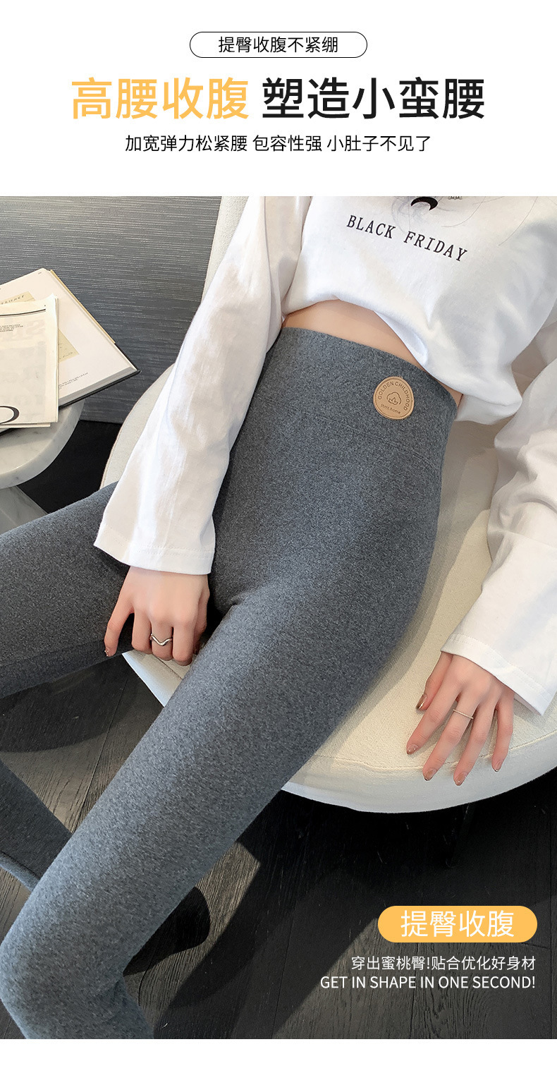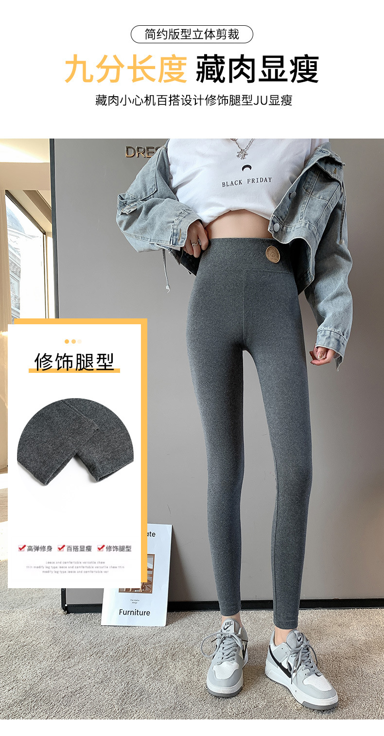 纯棉打底裤女外穿春秋季薄款高腰大码新款紧身弹力九分裤黑灰长裤 商品图7