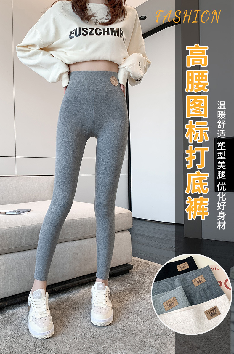 纯棉打底裤女外穿春秋季薄款高腰大码新款紧身弹力九分裤黑灰长裤 商品图0