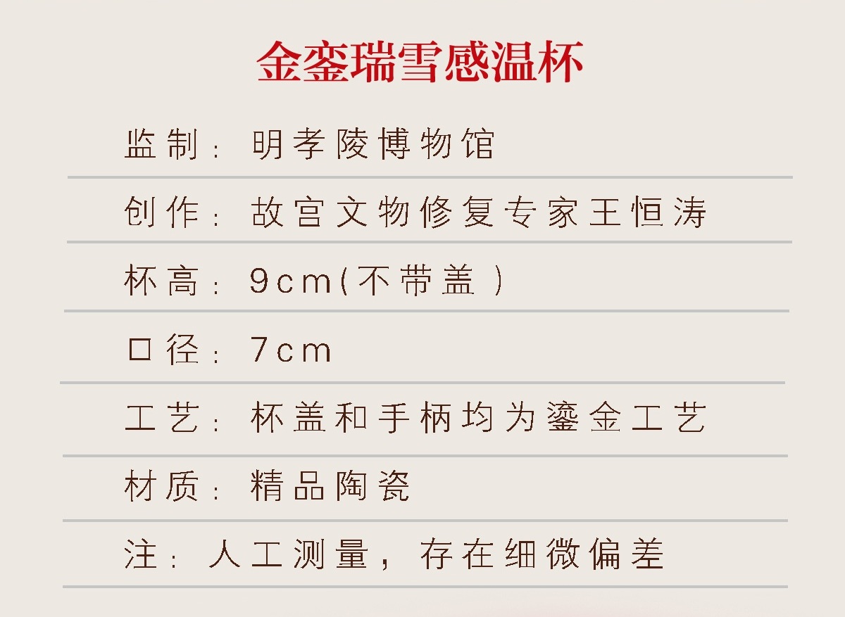 《金銮瑞雪》蛇年生肖感温变色杯 ,百年故宫,故宫文物修复专家亲创献礼!南京明孝陵博物馆监制!(预售3月8日左右发货)【G】