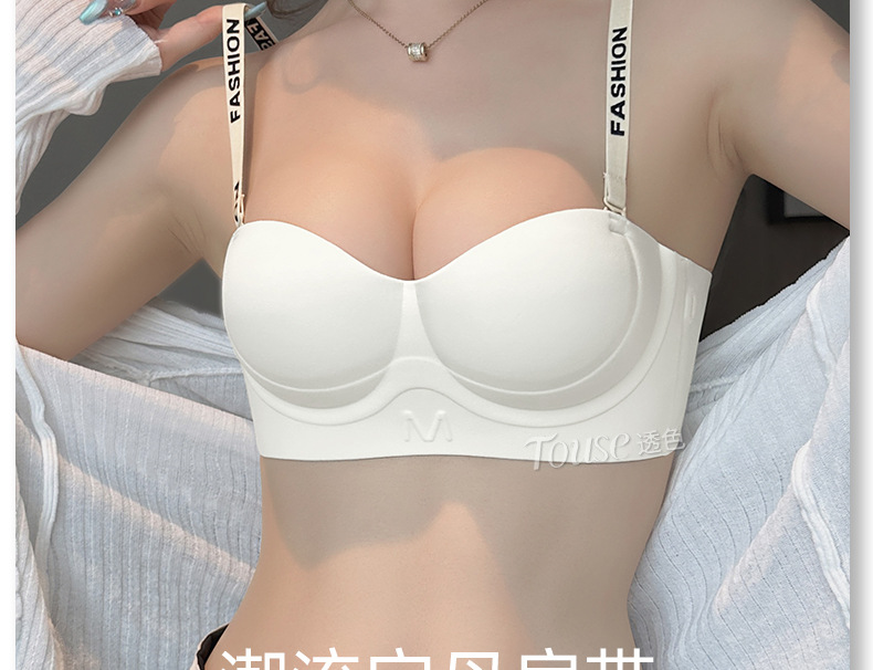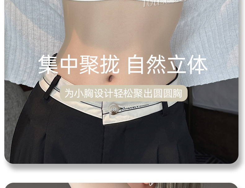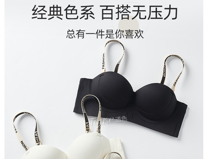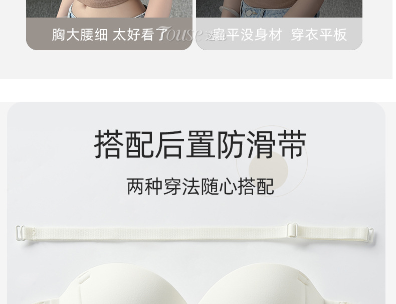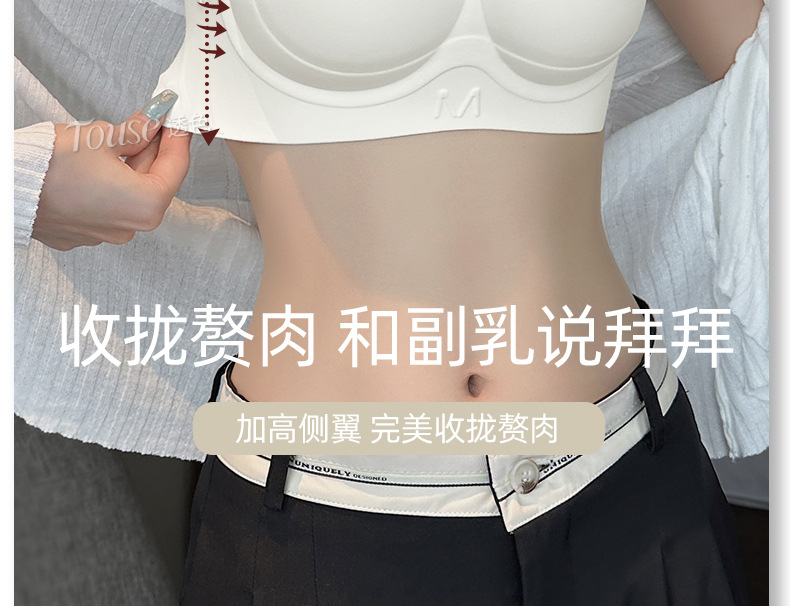 双重提拉无痕内衣女 小胸聚拢显大 无钢圈收副乳 2024新款白色固定带防滑文胸