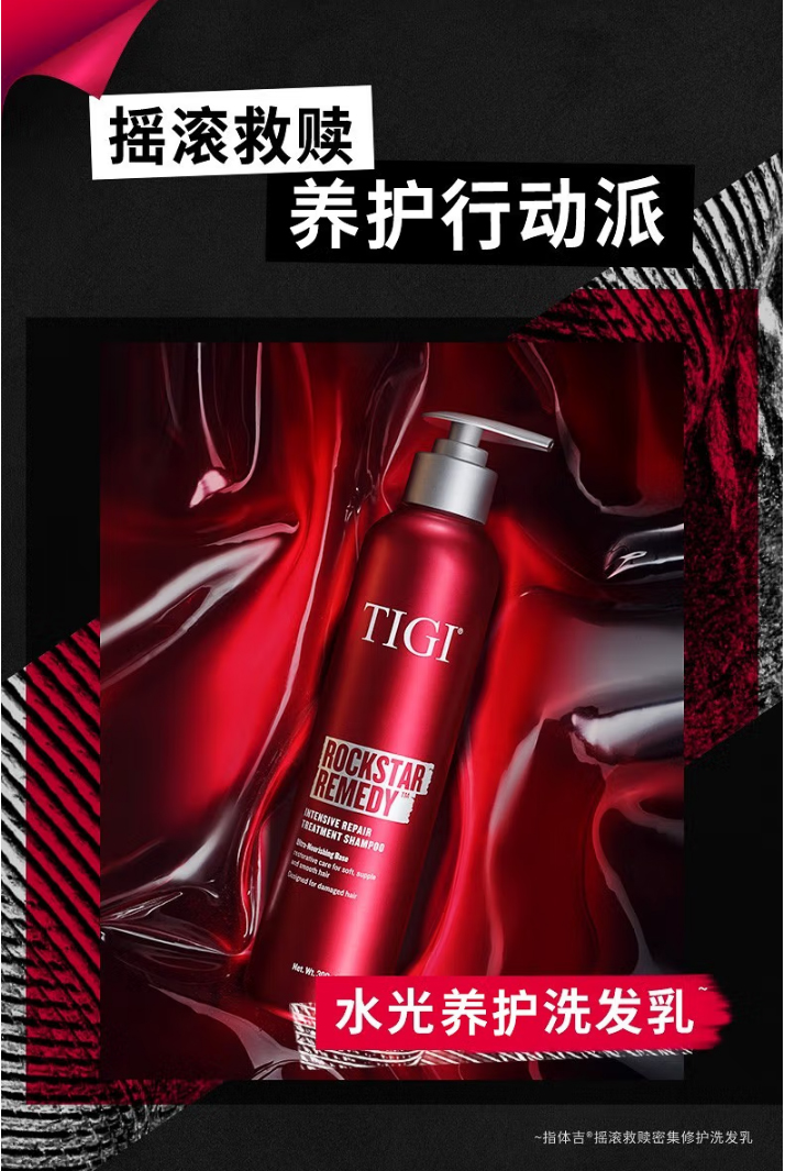 红色是摇滚救赎密集修护洗发乳,针对烫染受损发质!