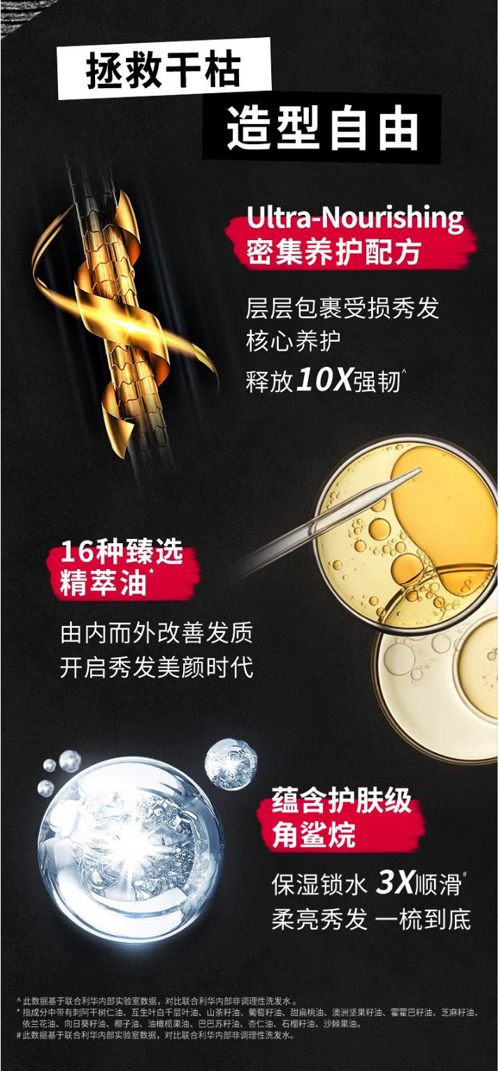 专业级别配方搭配昂贵的护肤级成分,16种精萃油以及角鲨烷,大家知道角鲨烷这个成分的护肤都是很高端的系列才会用到,咱们这款洗发露也添加了这个成分,真正的大手笔,补充头发日常流失的营养,让头发更顺滑。