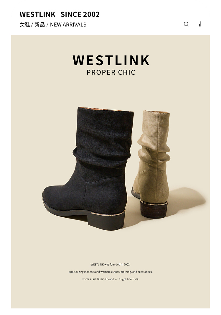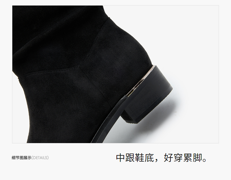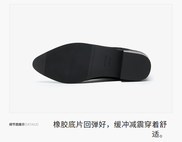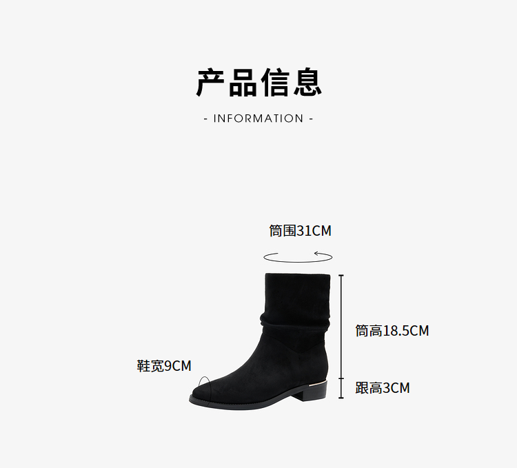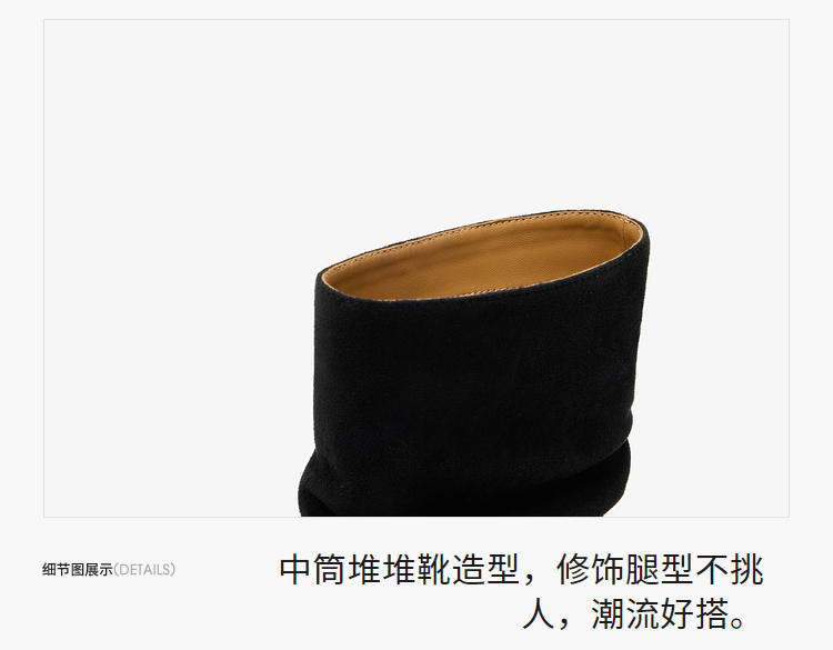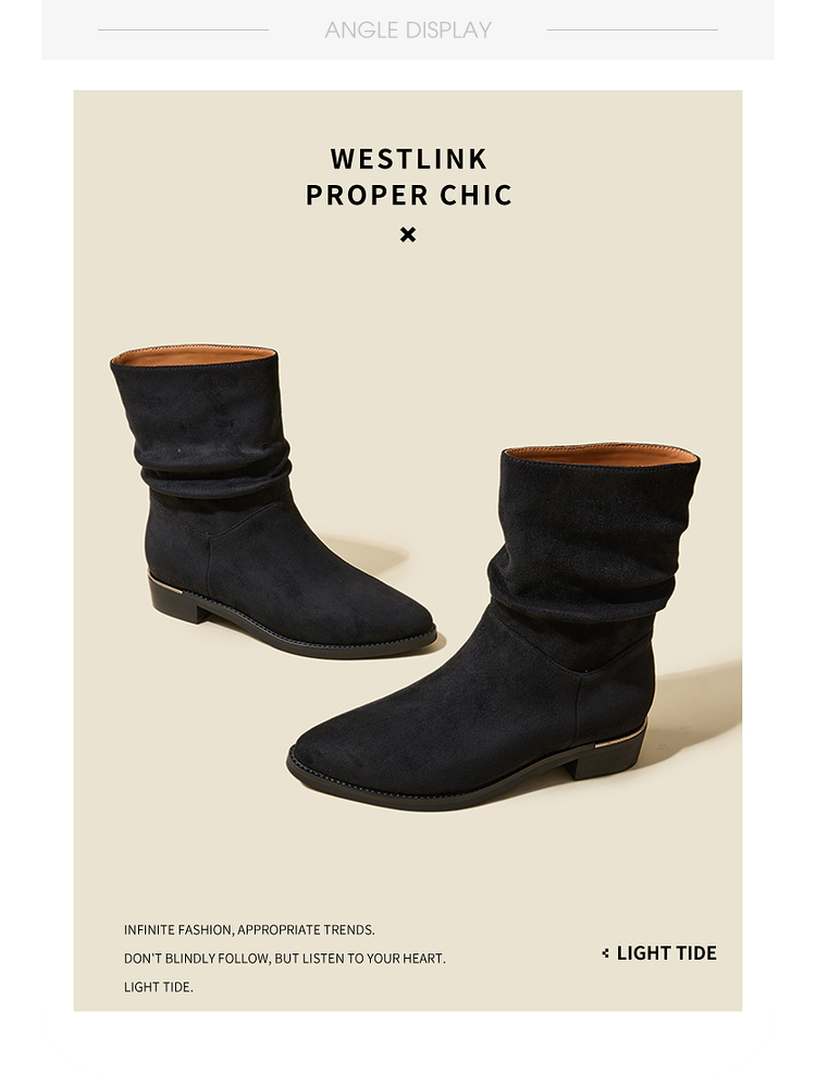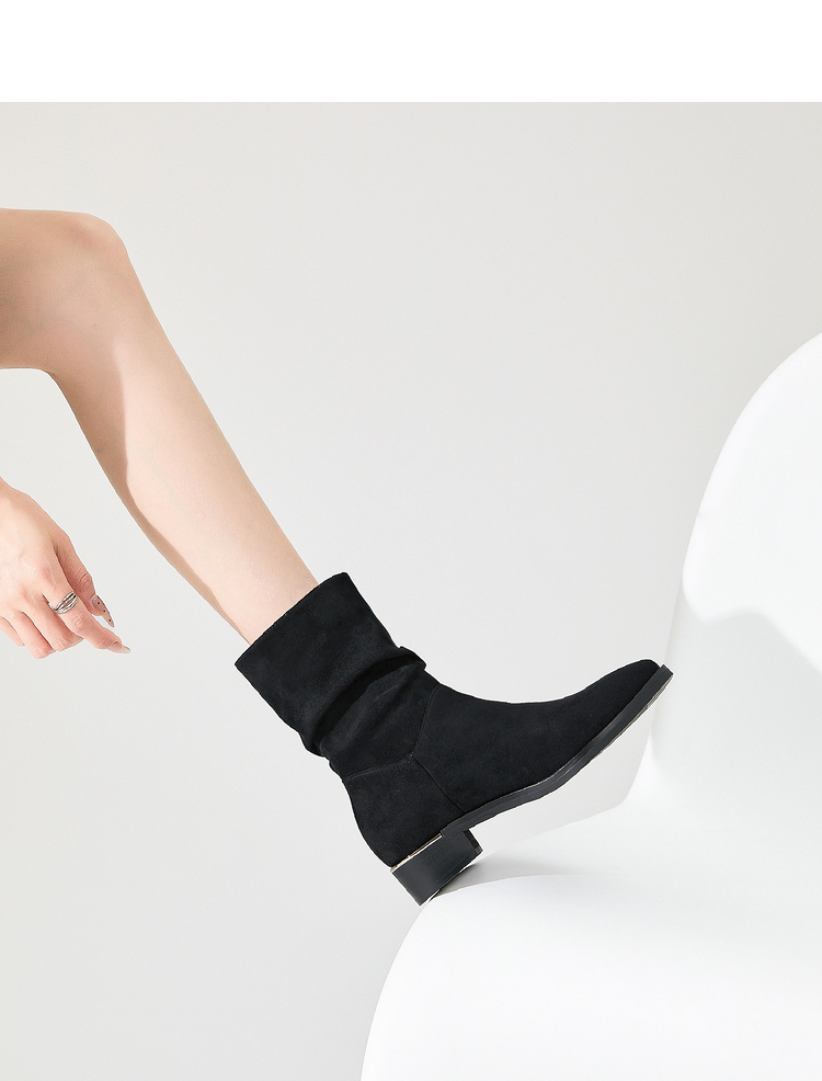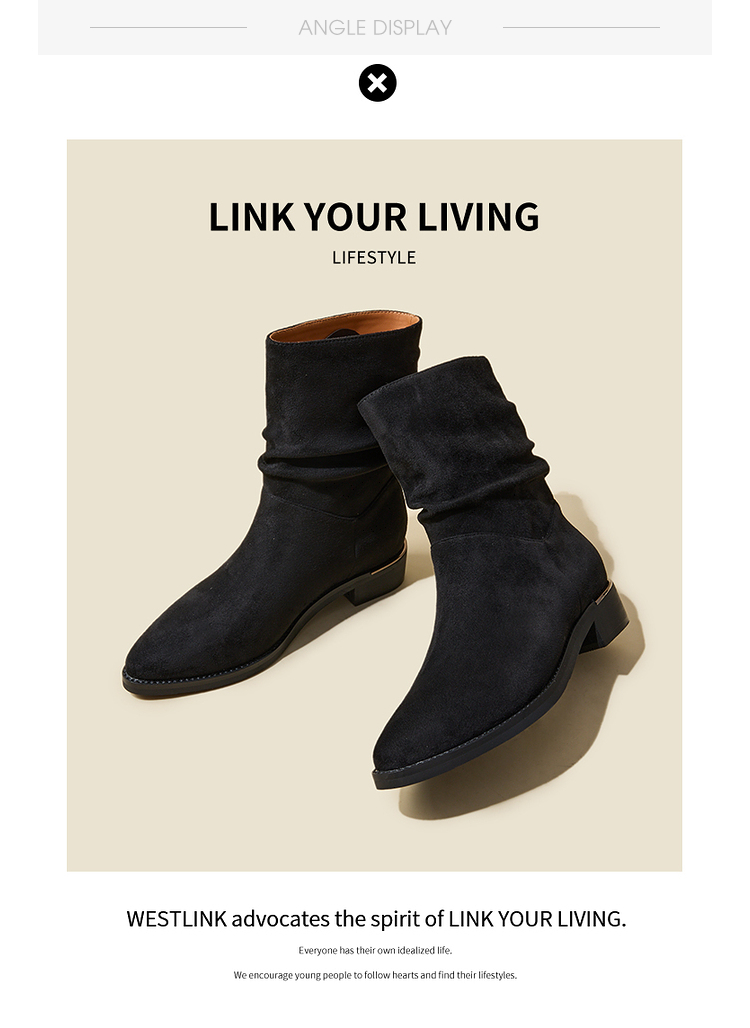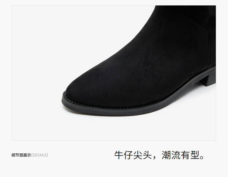 西遇绒面尖头短靴女新款秋冬复古西部靴黑色低跟堆堆靴瘦瘦靴D3947703