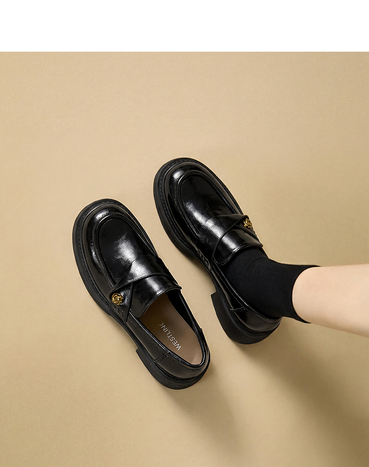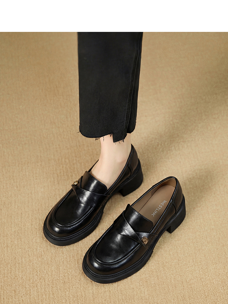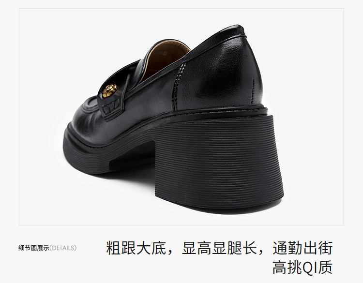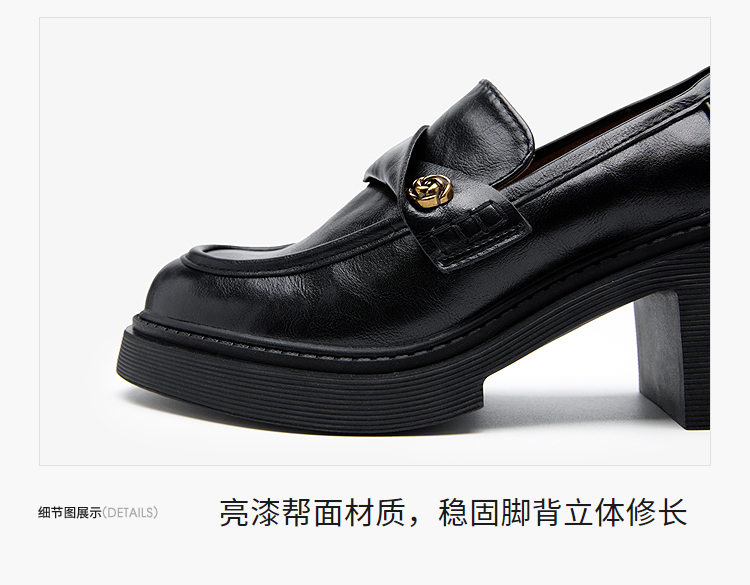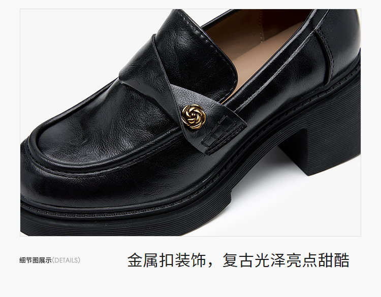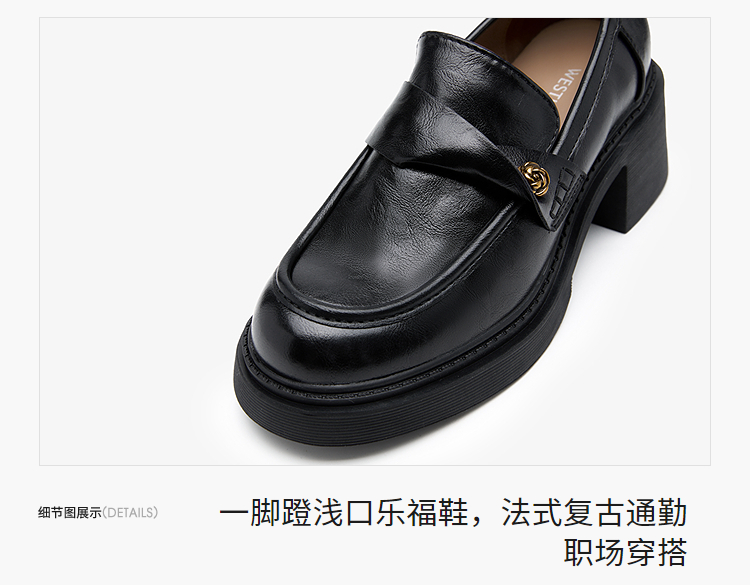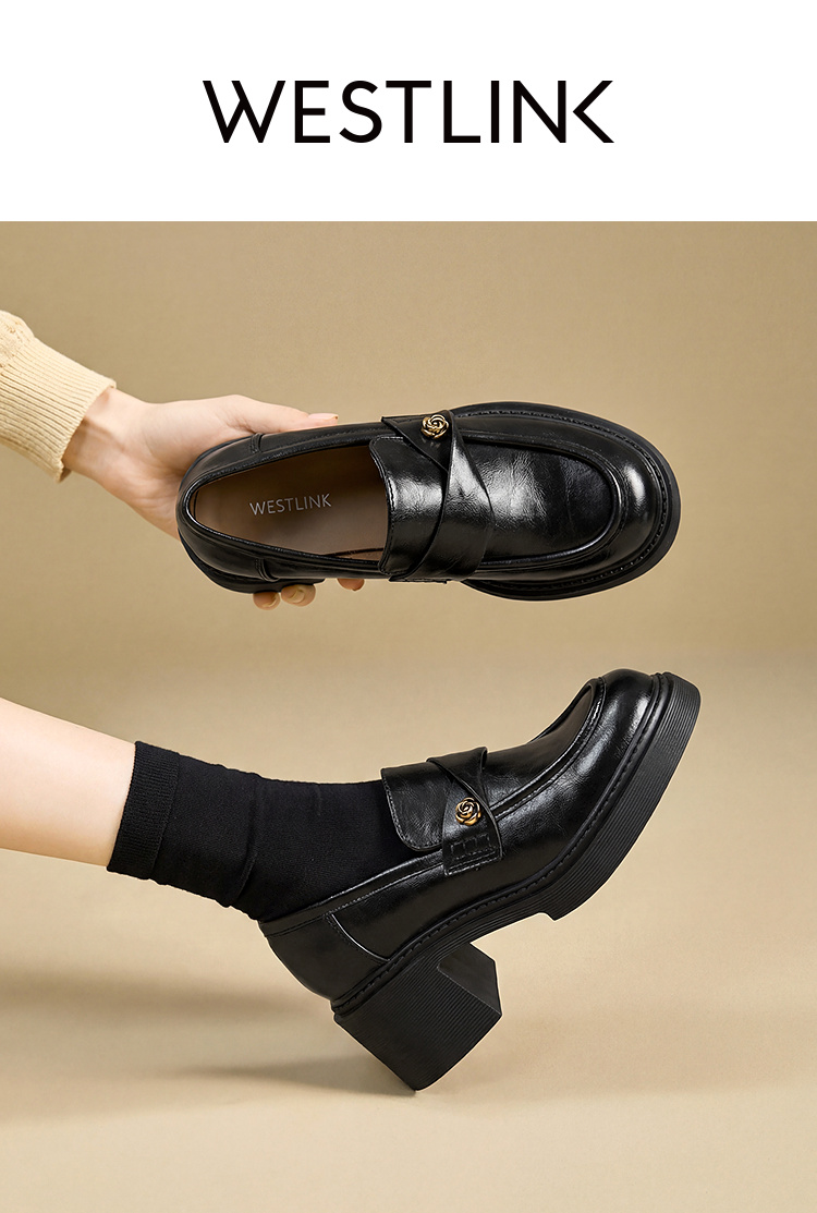 【限时秒杀】西遇厚底乐福鞋女鞋2026新款春季英伦风粗跟小皮鞋通勤复古单鞋子V0166268