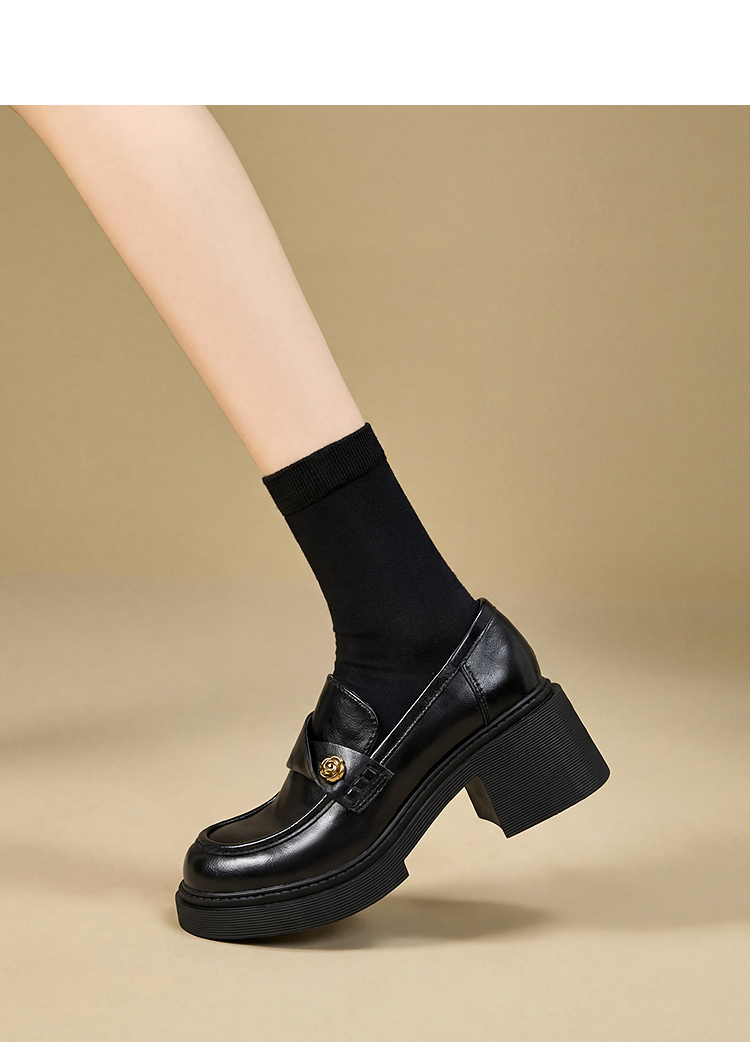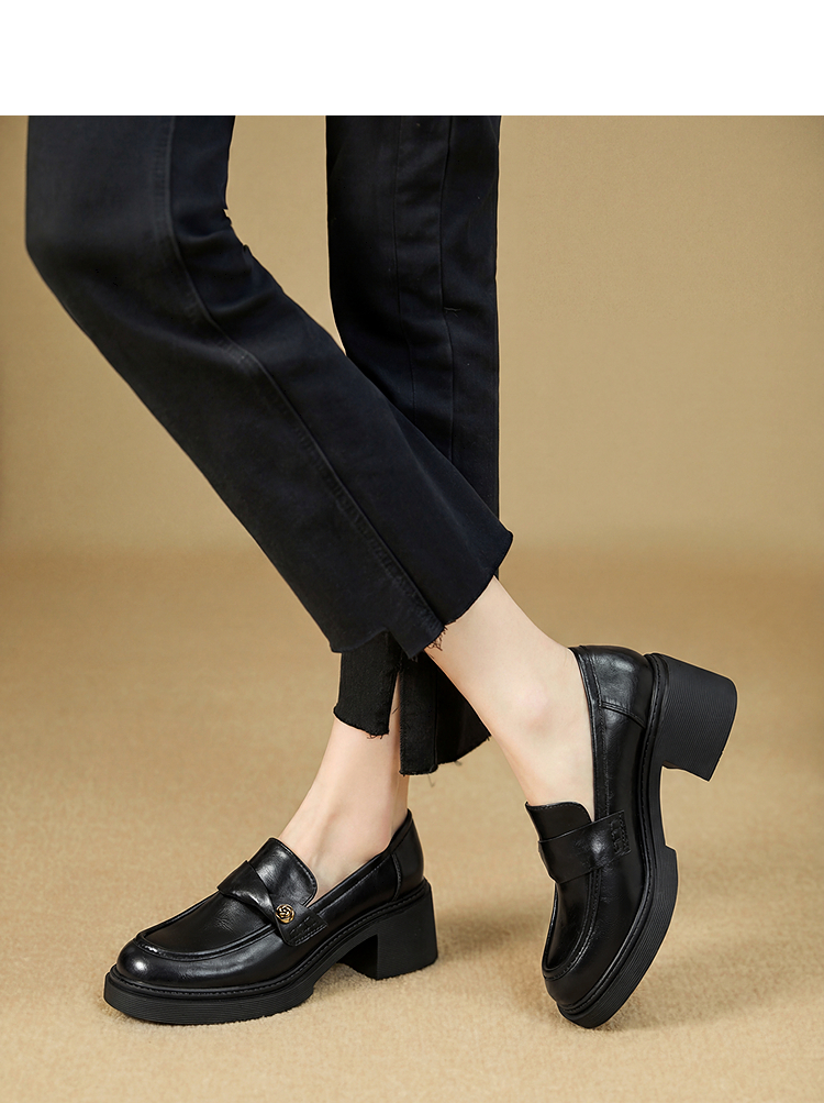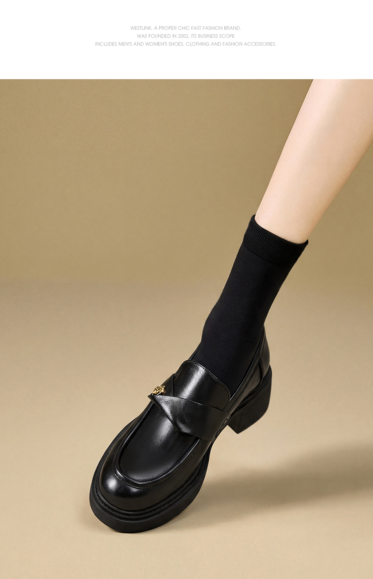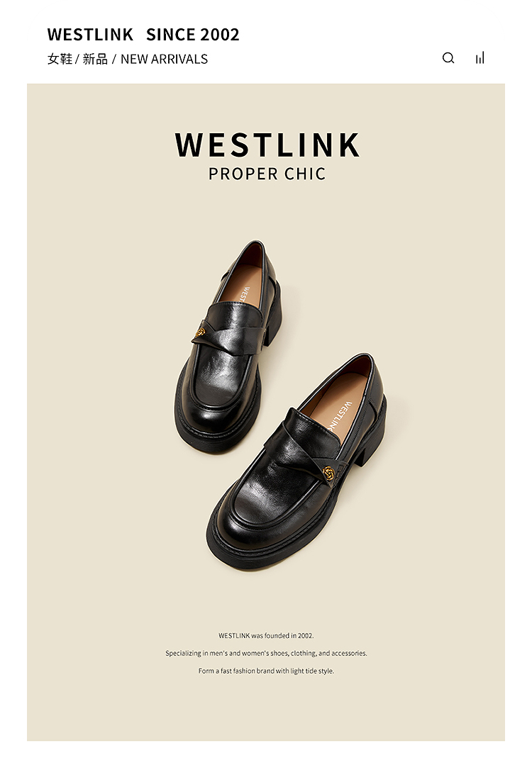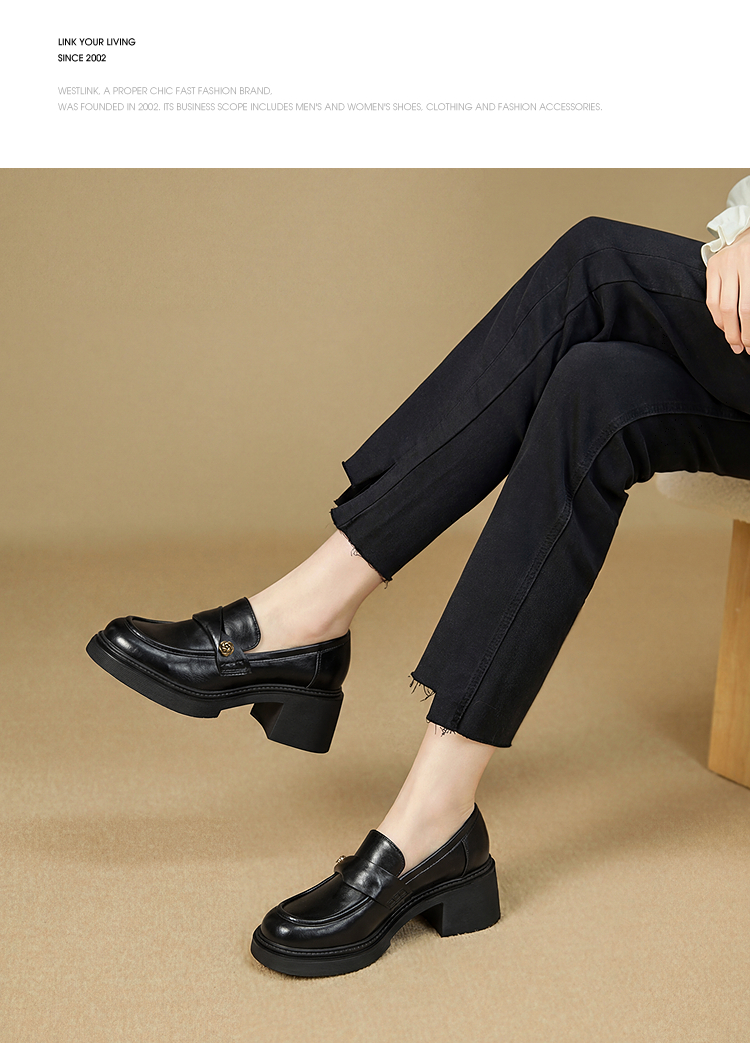 【限时秒杀】西遇厚底乐福鞋女鞋2026新款春季英伦风粗跟小皮鞋通勤复古单鞋子V0166268