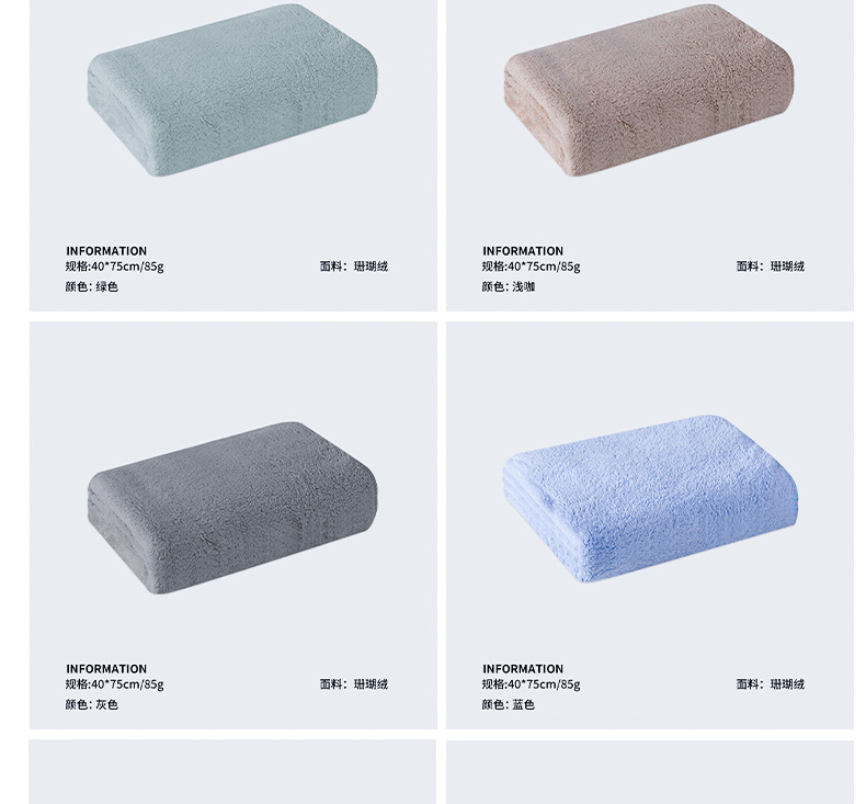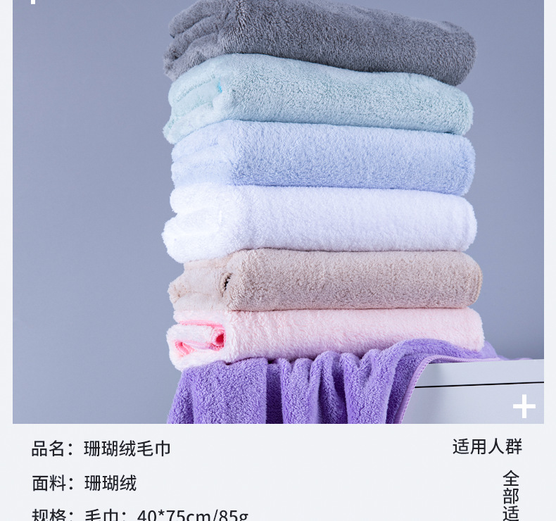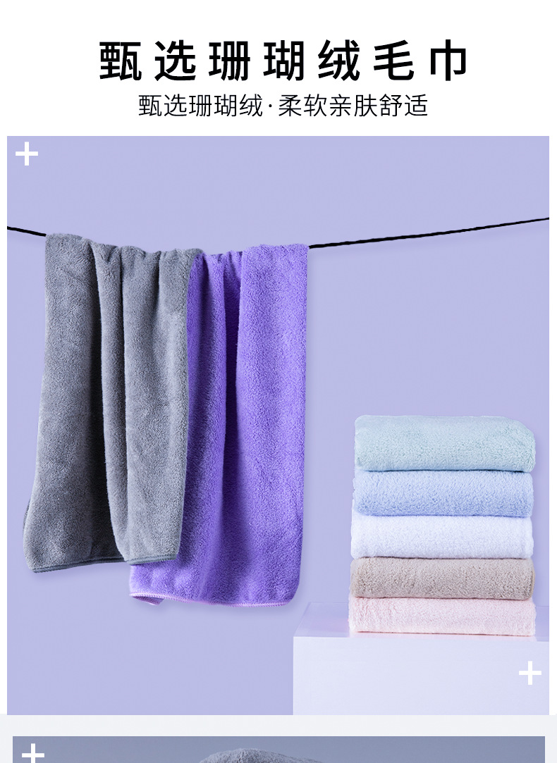 「9.9元包邮!数色可选」珊瑚绒毛巾纯色加厚加大柔软吸水洗脸巾家用成人儿童洗脸面巾居家布艺