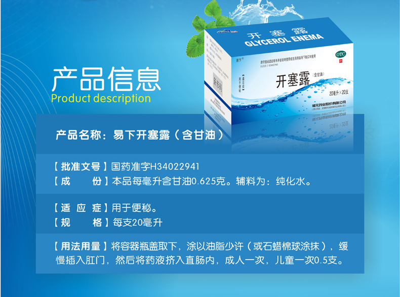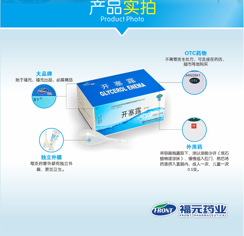 KJ 福元开塞露支(含甘油)20ml 便秘 肠道润滑 20只/盒