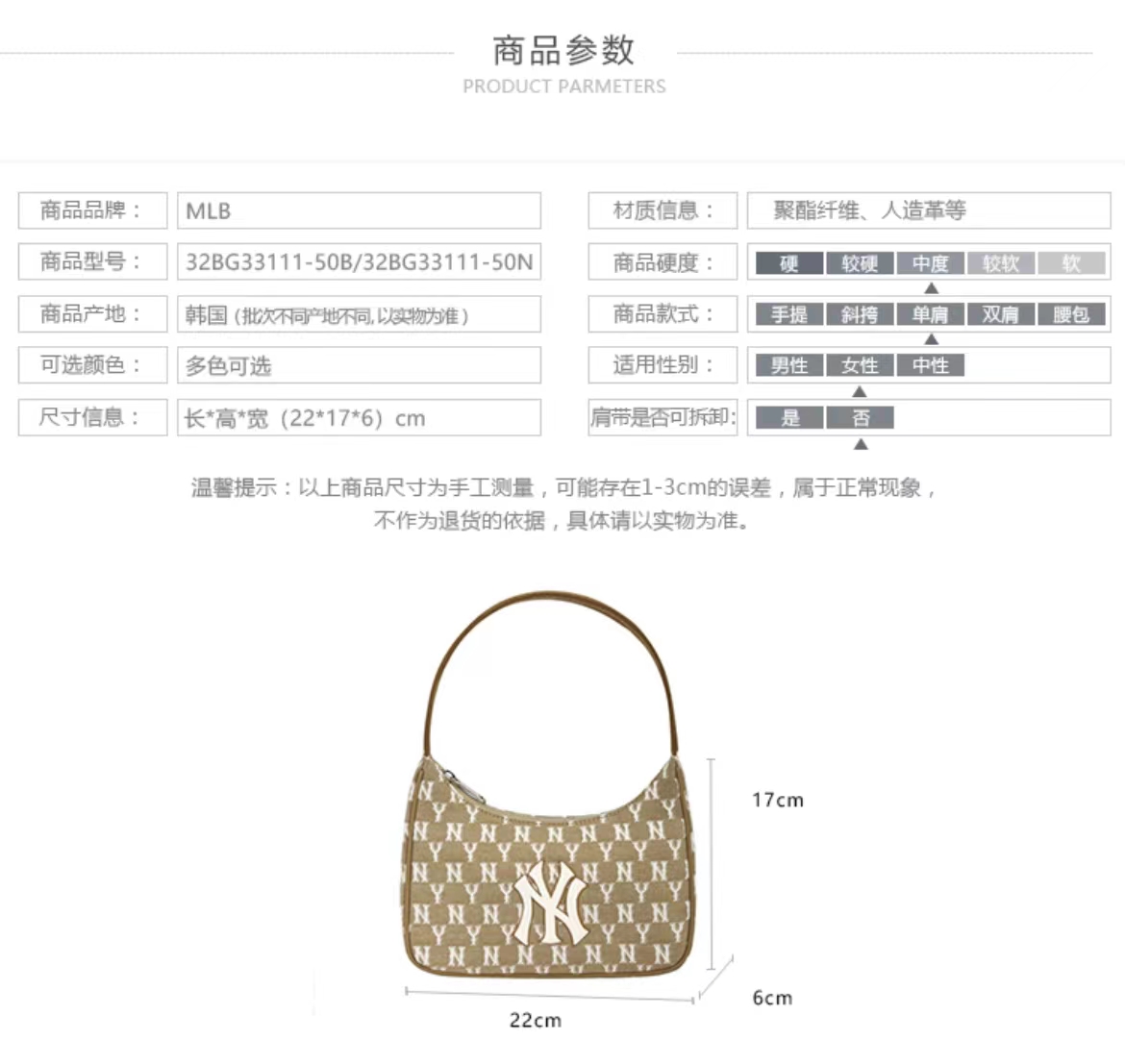 MLB满印腋下包运动休闲挎包时尚春夏新款 32BG33111