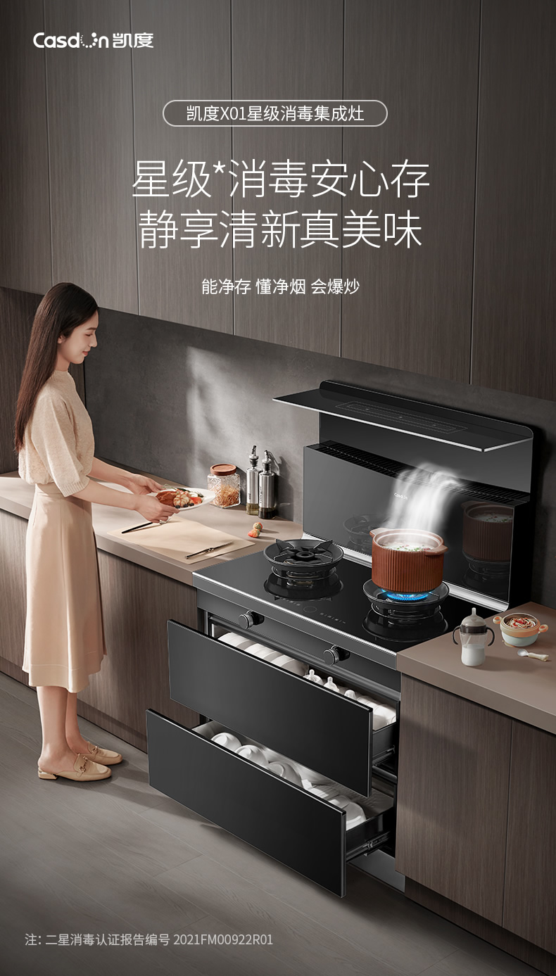 【大吸力】凯度K23X01新款集成灶消毒柜一体灶家用油烟机燃气灶