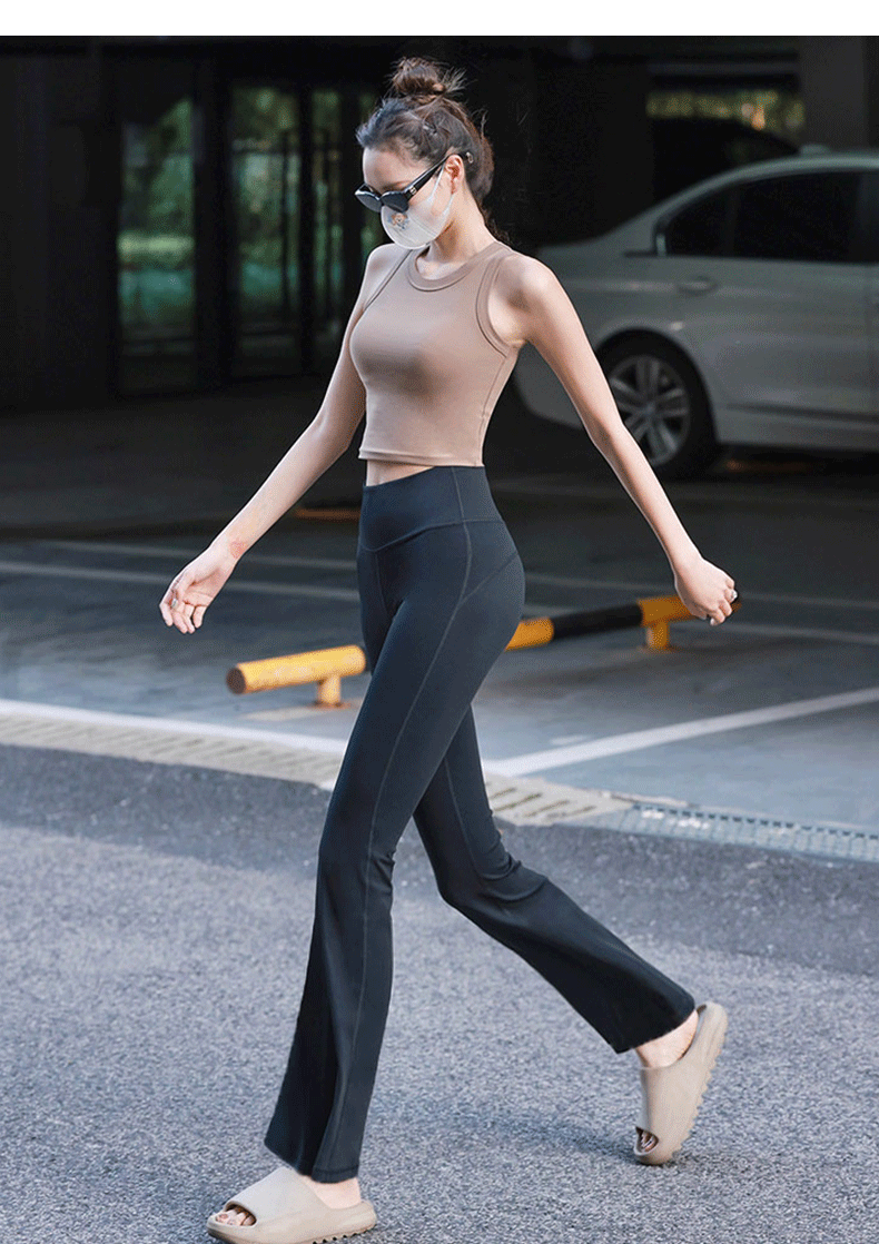 beemen 高腰微喇瑜伽健身裤 轻薄裸感 修饰腿型 秒变大长腿 喇叭裤