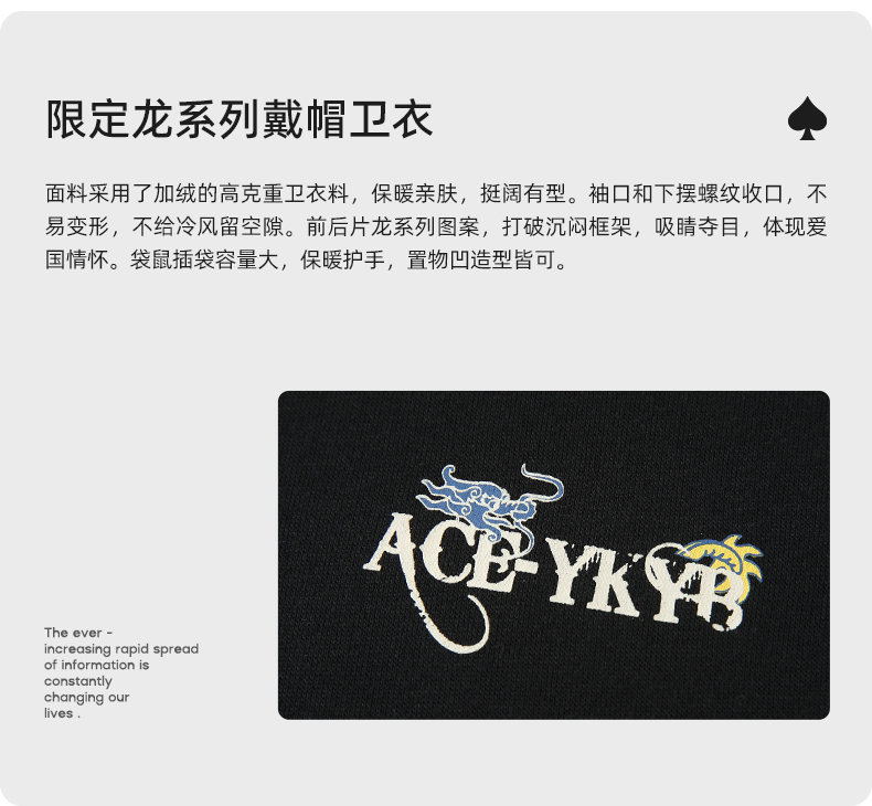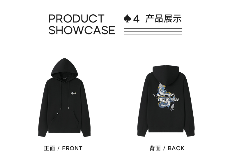 YKYB限定龙系列连帽卫衣秋季新款潮牌美式套头抽绳帽衫上衣情侣
