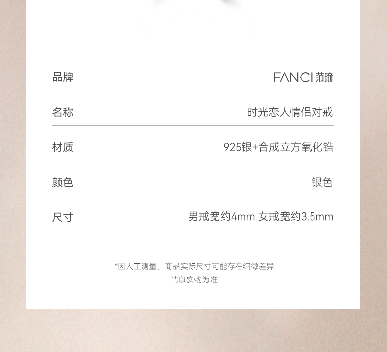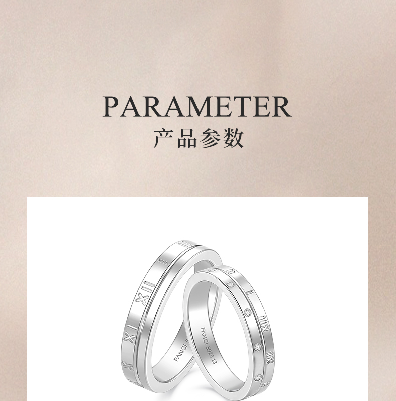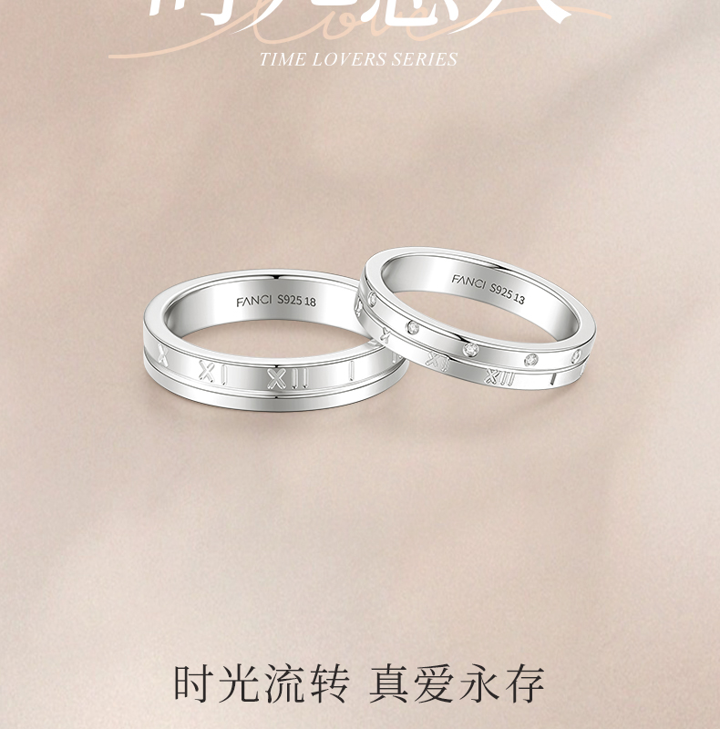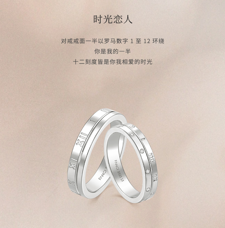Fanci范琦时光恋人系列 时光恋人情侣对戒S925银纪念日送女友新年礼物