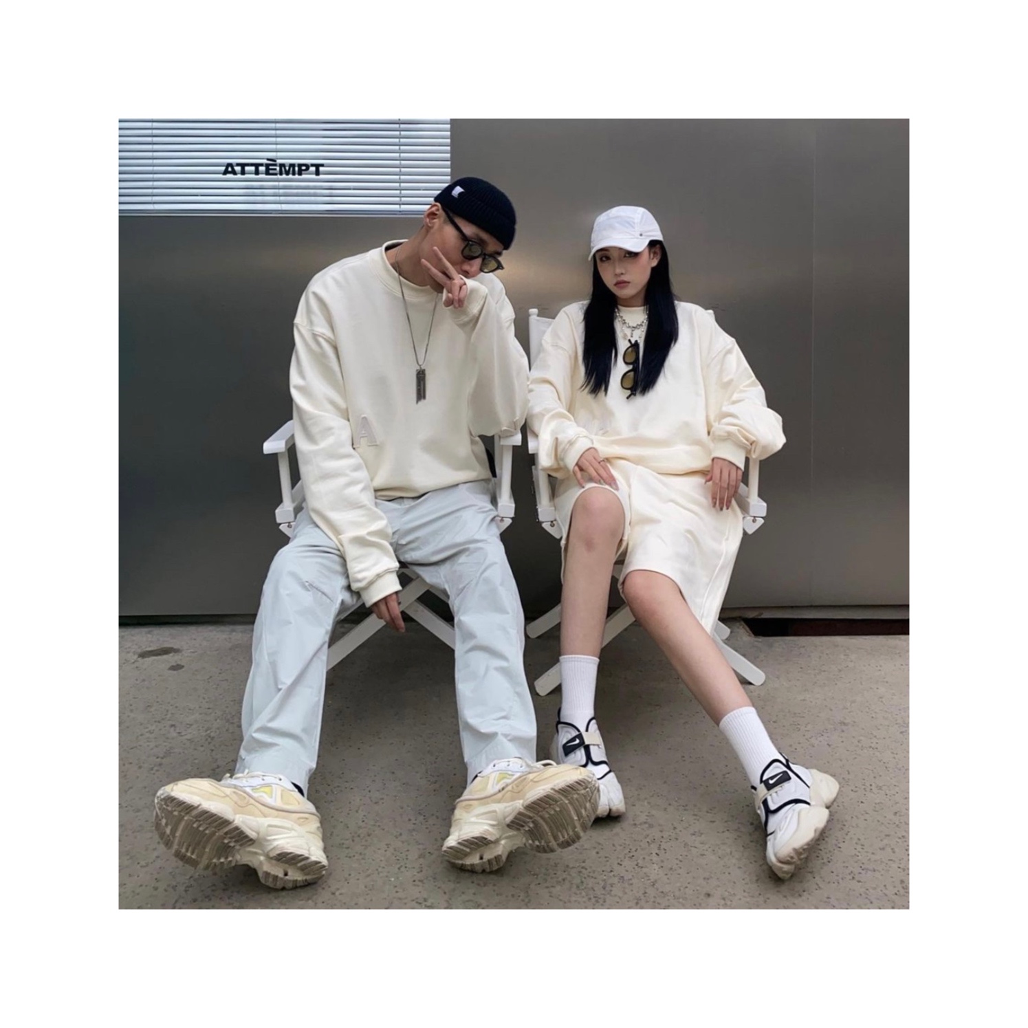 MANUFACTURE BY ATTEMPT 毛毡LOGO圆领卫衣