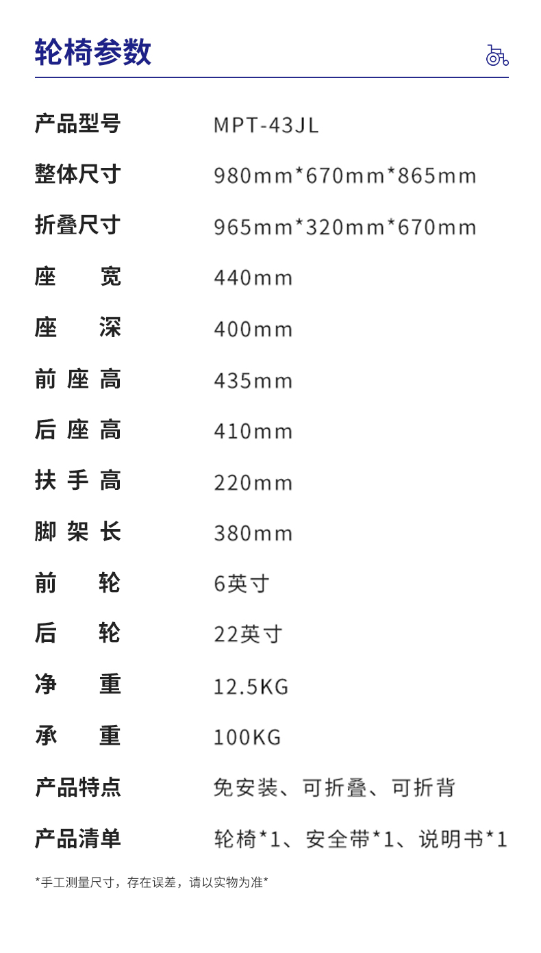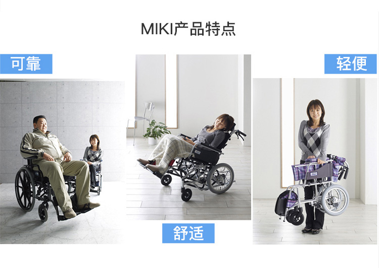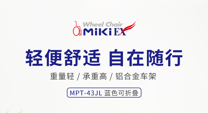 三贵(MIKI)日本手动轮椅老人轻便可折叠轮椅车MPT-43JL