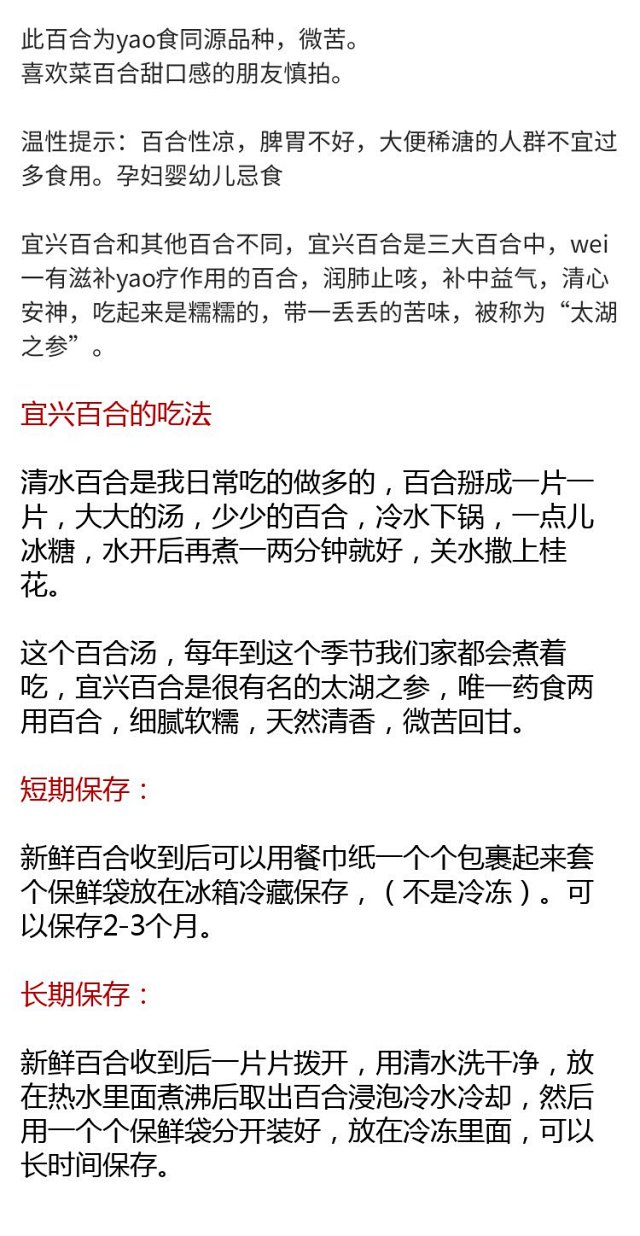 宜兴当地人一般用百合来笃粥或者煮汤,最常见的就是百合莲子红枣汤,此乃大补之物,香糯的百米加上柔软的百合,特别适合老年人的口味