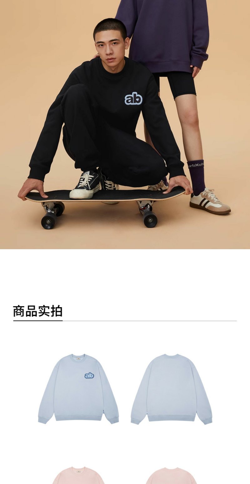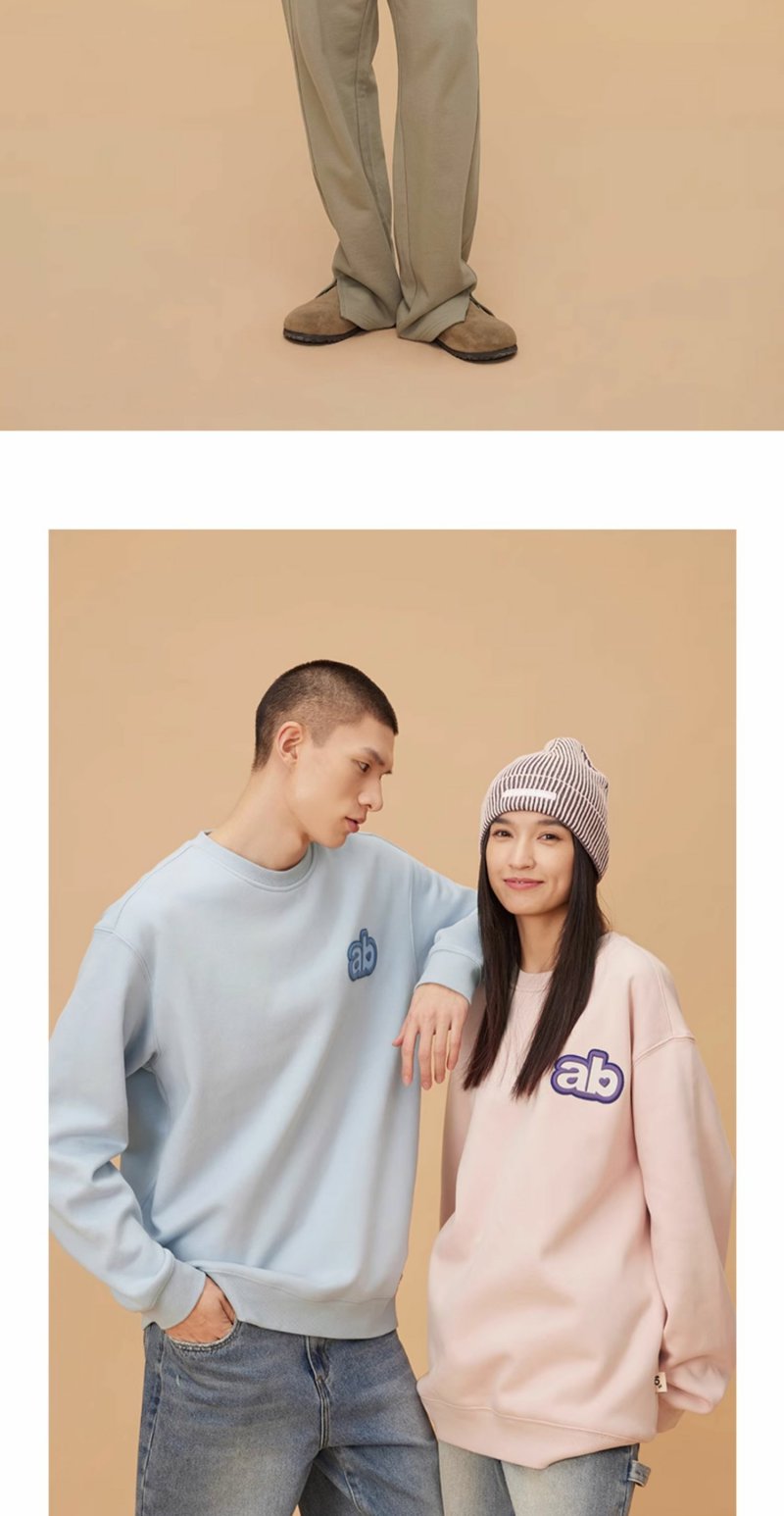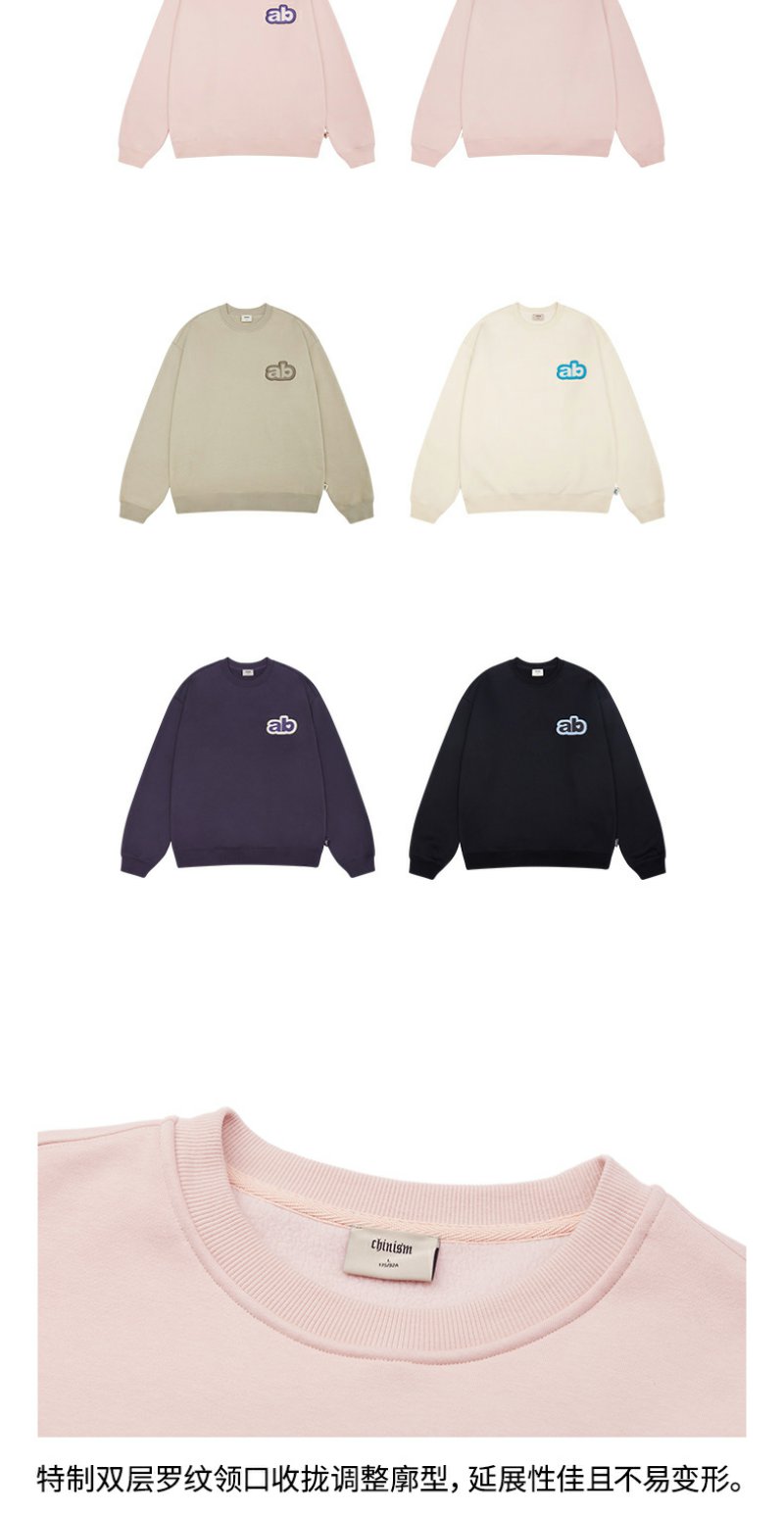 CHINISM CHab重磅405G紫色绣花圆领卫衣男女秋冬时尚潮流情侣上衣
