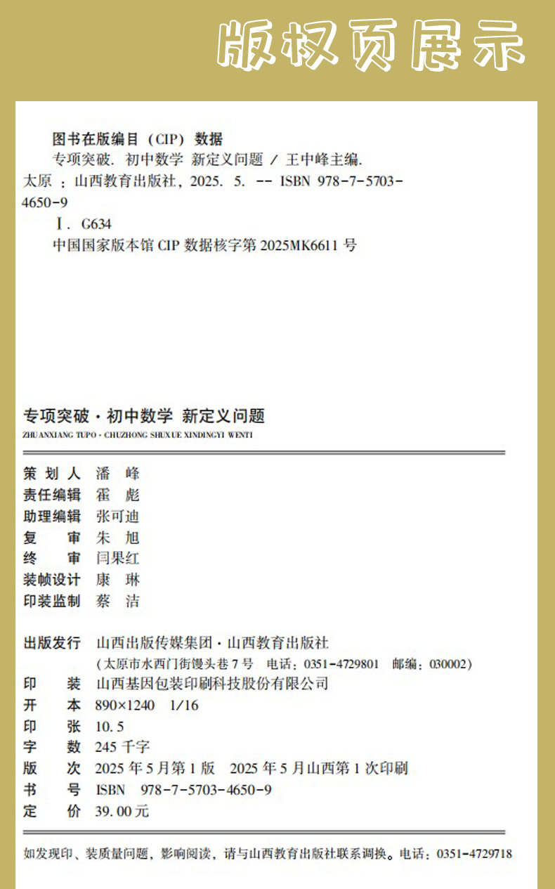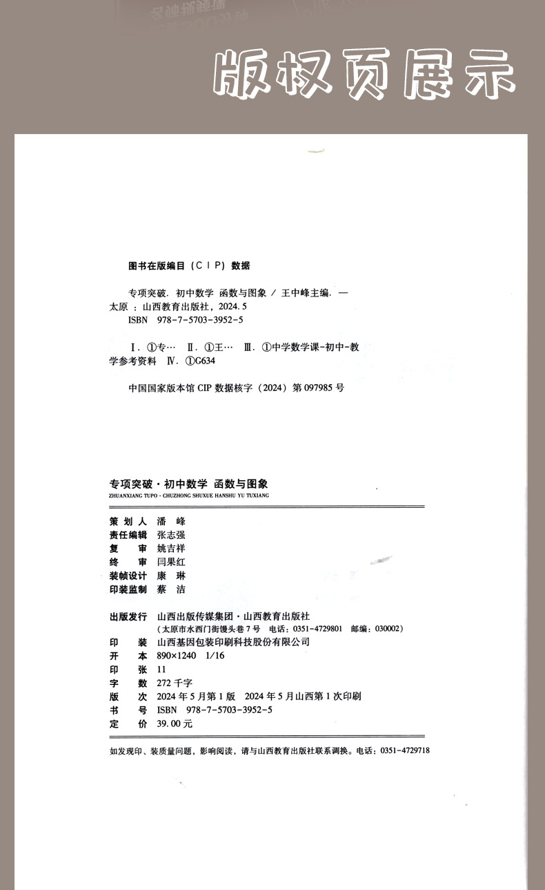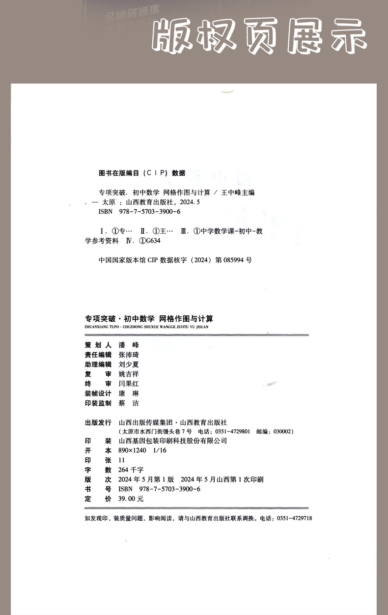 正版 四册 专项突破·初中数学 函数与图象 网格作图与计算 动点问题 新定义问题 王中峰主编 山西教育出版社出版