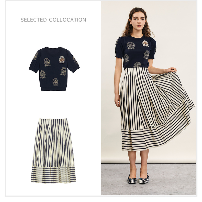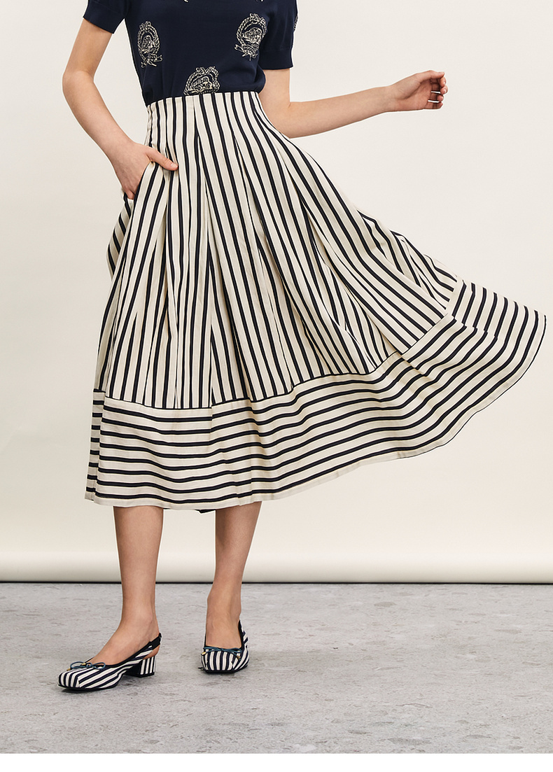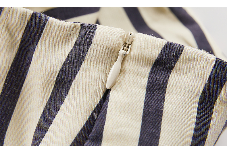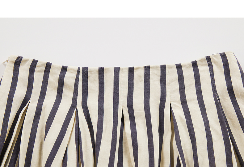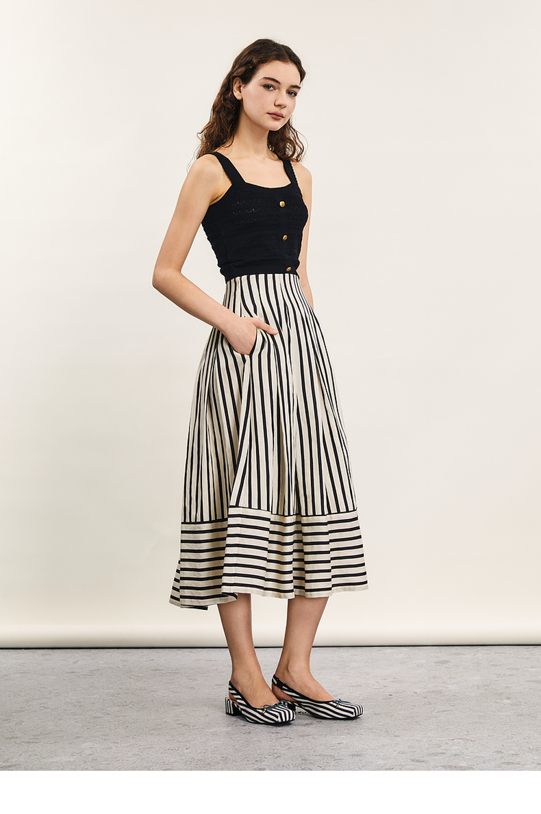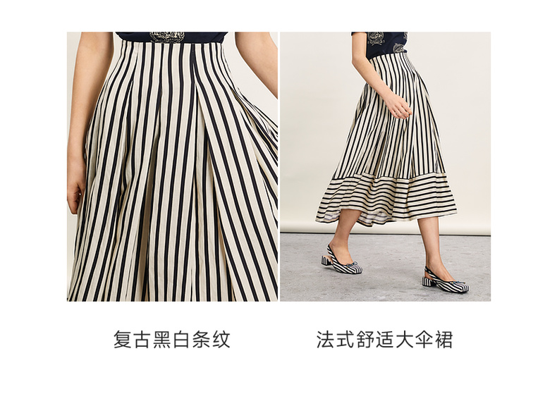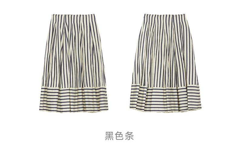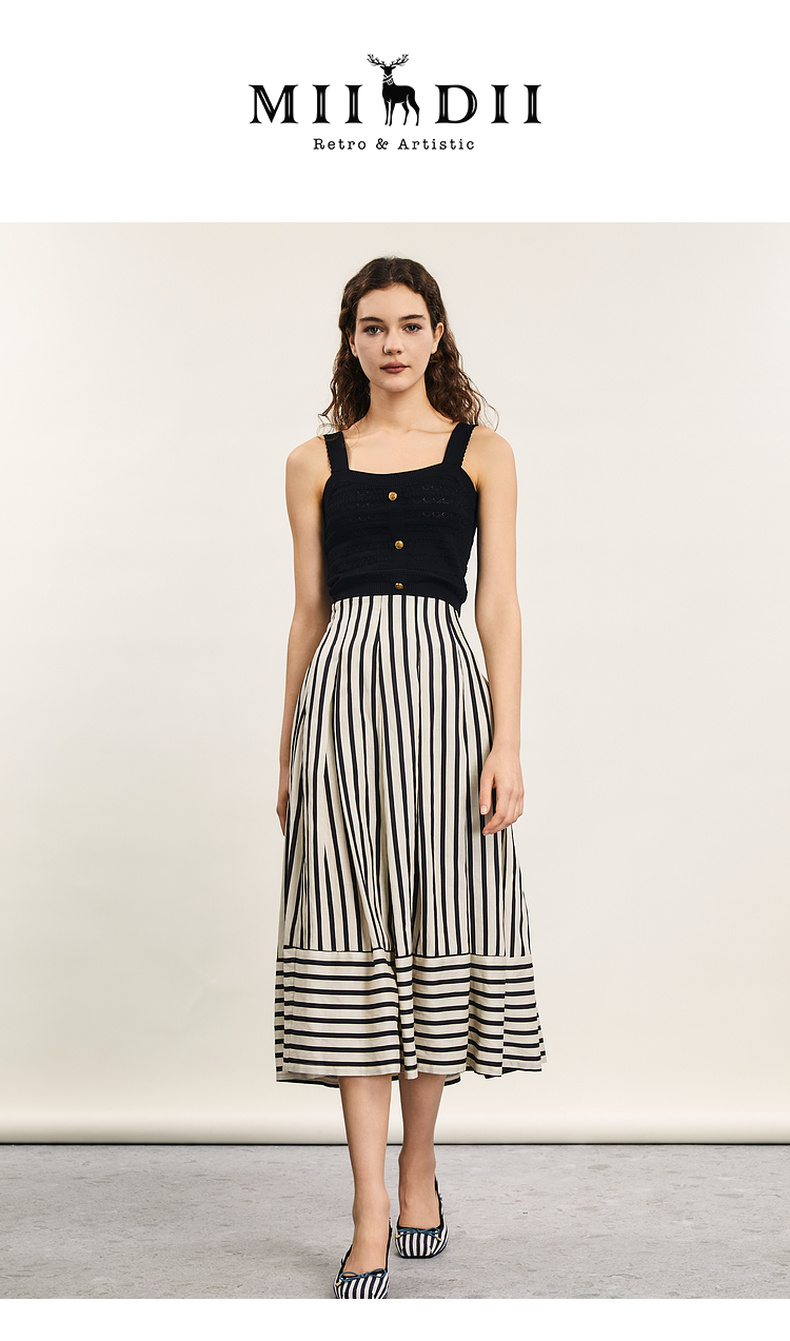 谜底条纹半身裙女2024年夏款复古文艺风高腰拼接中长裙242MB0645