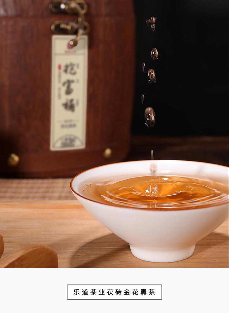 今天找到了这款来自湖南安化核心产区的乐道茶业茯砖金花黑茶推荐给大家:【金花茯砖】、【抱富桶】两款。