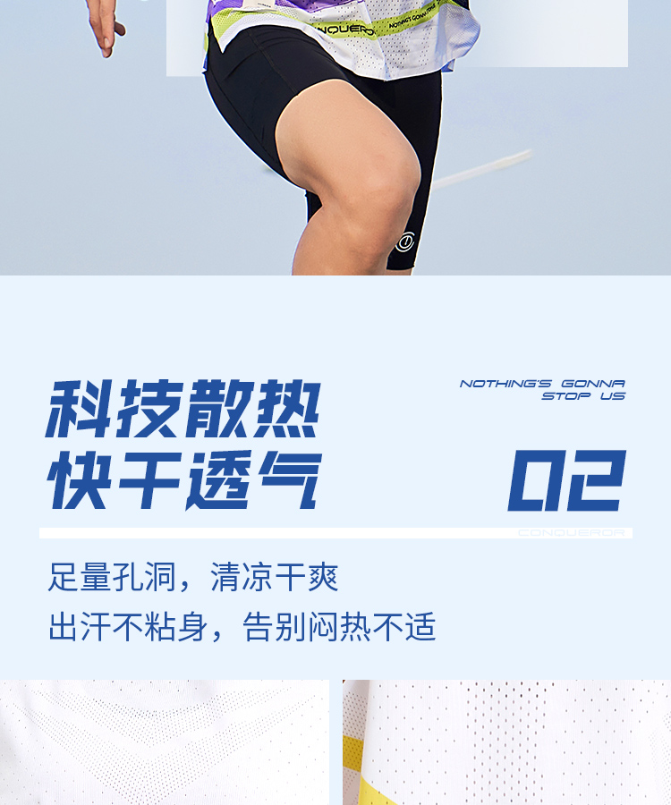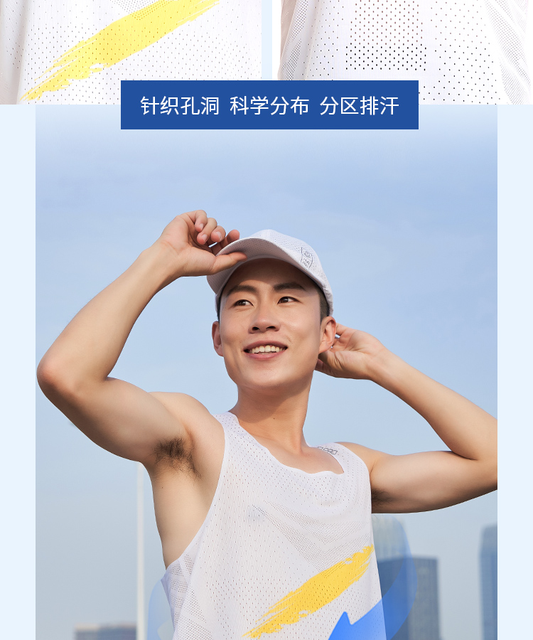√ 运动速干面料,6000多个透气网孔,排汗更高效;