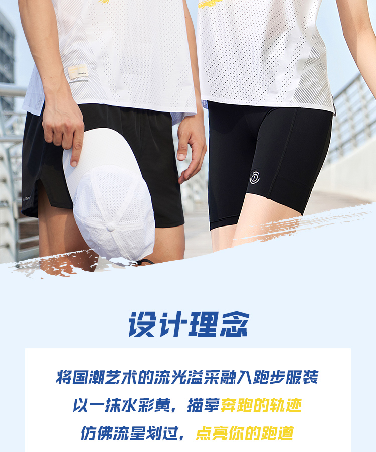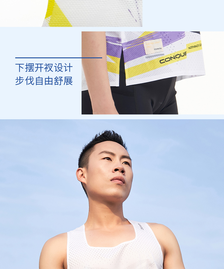 √ 两侧下摆开叉设计,减少束缚,自由舒展,跑动更自如;