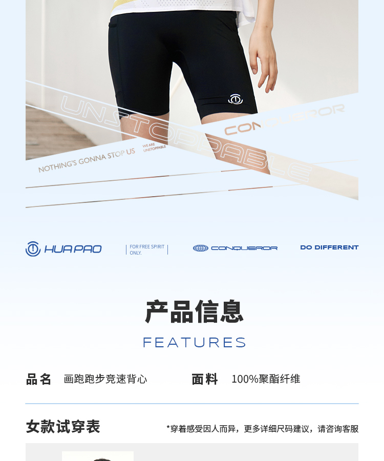 √ 速干运动面料,快速导汗导湿,更轻更畅快;