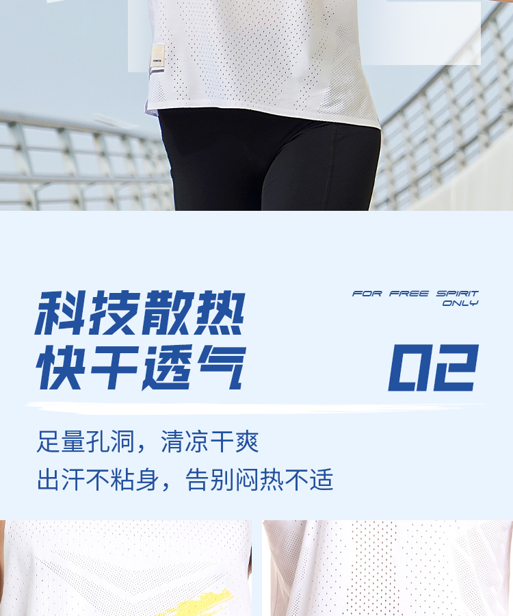 √ 运动速干面料,透风孔洞,360°科技散热,排汗快干;