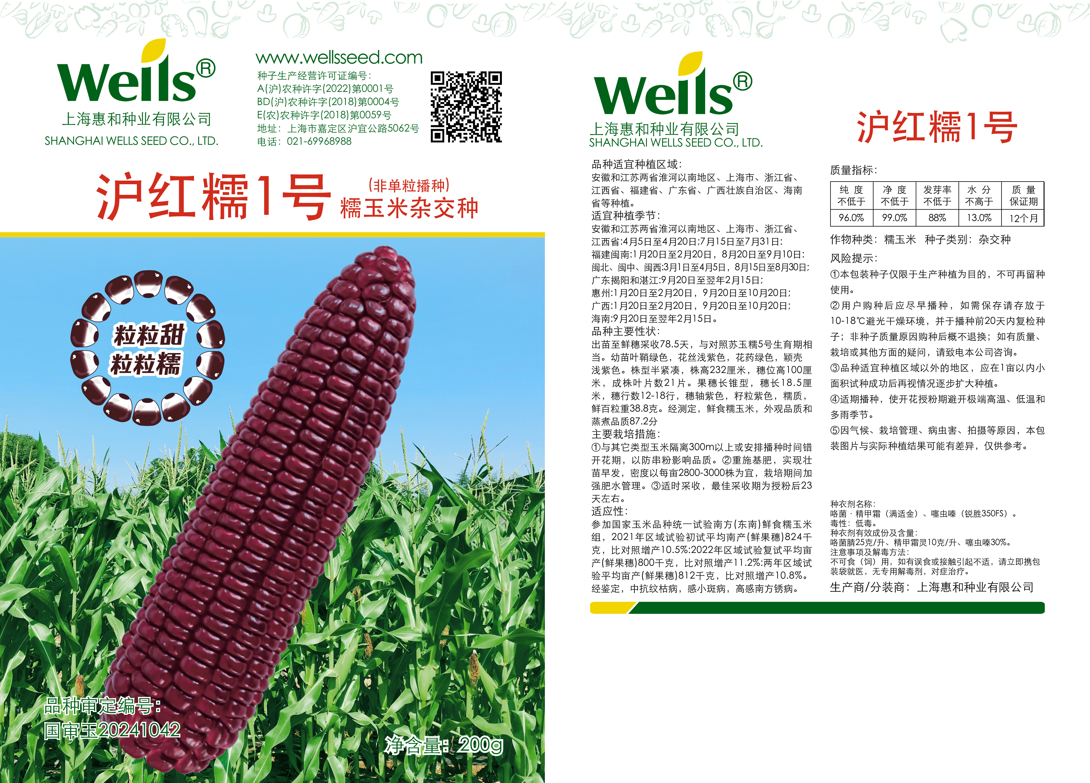 上海地区出苗至鲜穗采收期春季平均86天;单穗净重约283g,亩产去苞叶鲜穗净重约917.9kg。株高210cm左右,穗位高77cm左右,株型半紧凑。果穗长锥型,穗长约19.2cm,穗粗约5cm,几乎无秃尖,穗行数14,每行约35粒,籽粒深红色,排列整齐。皮薄轴细,香甜软糯,适口性好,品质佳。
