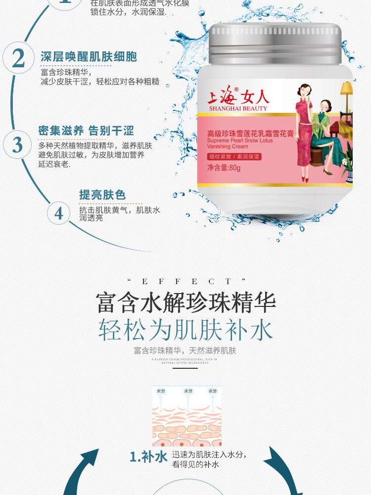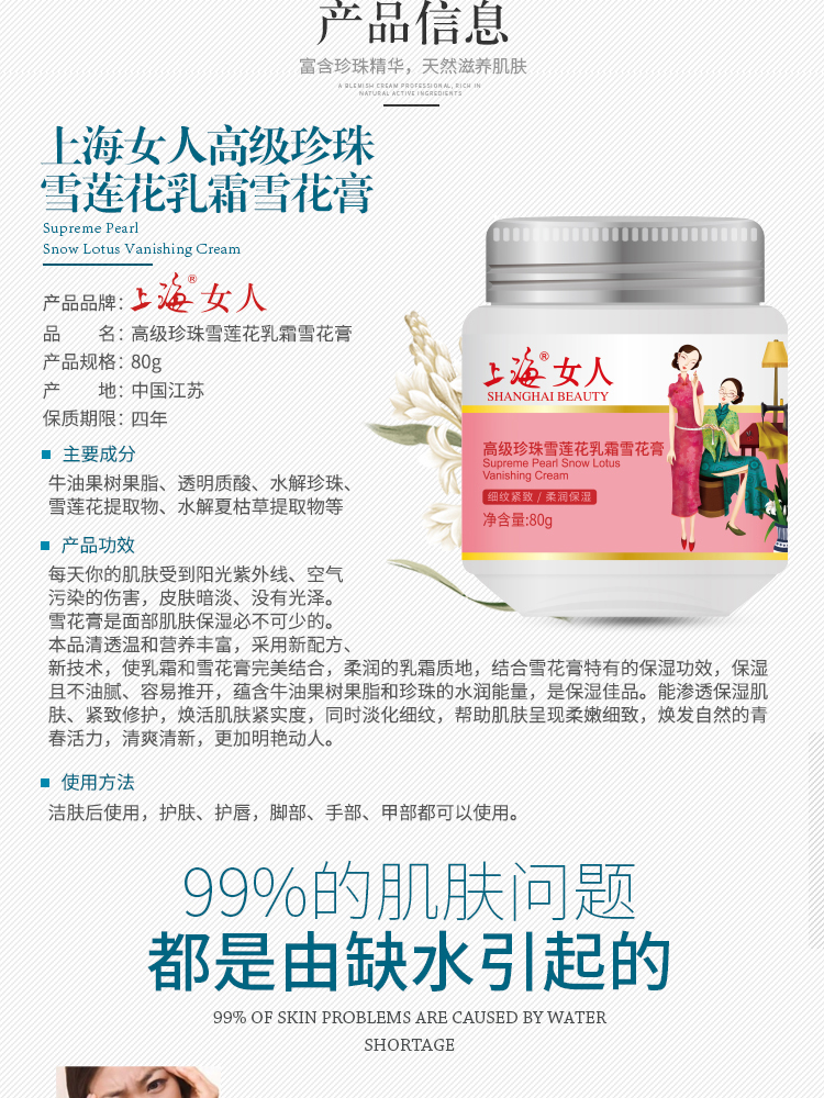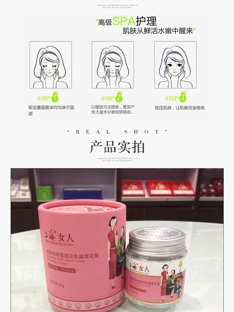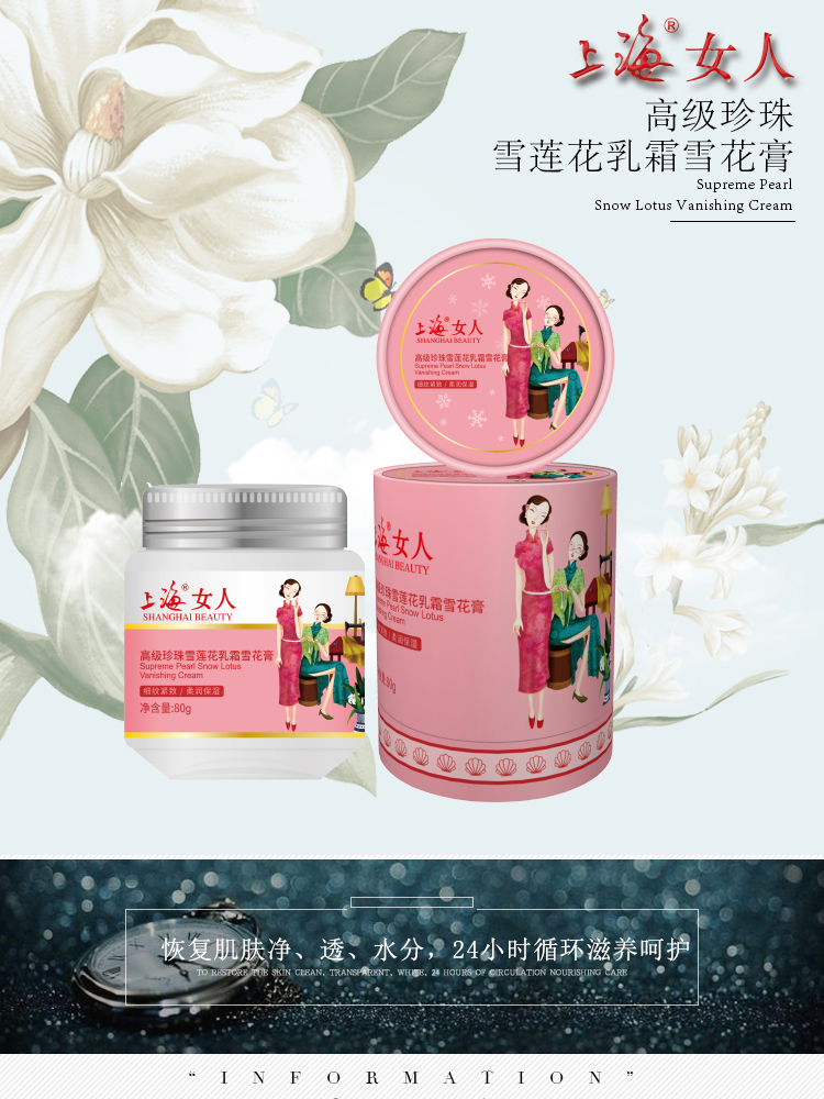 临期特价*25年3月*上海女人高级珍珠雪莲花乳霜雪花膏80g