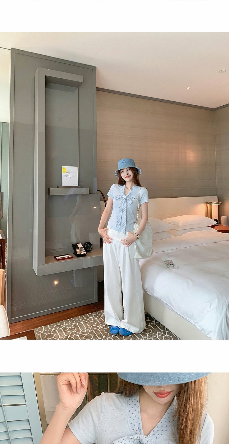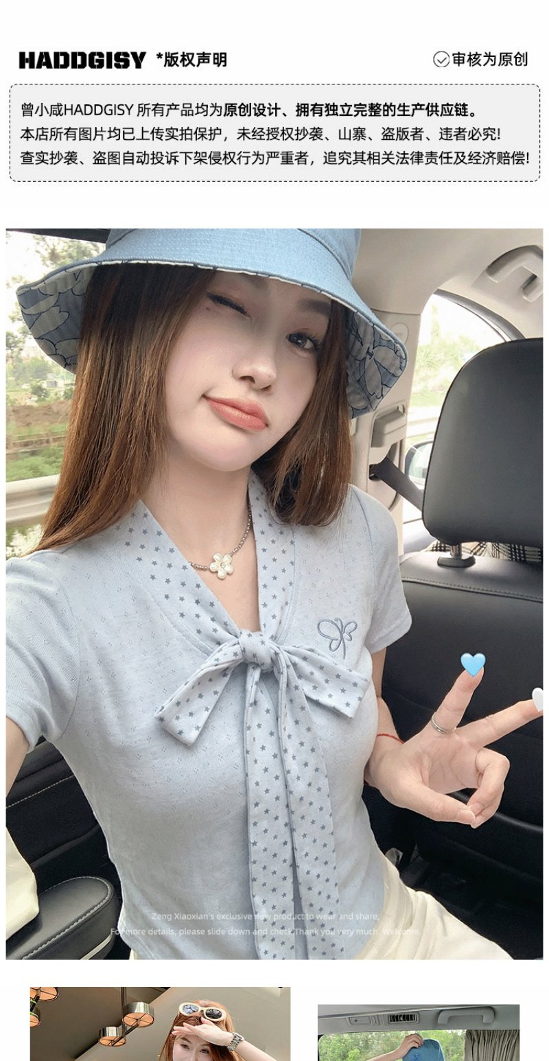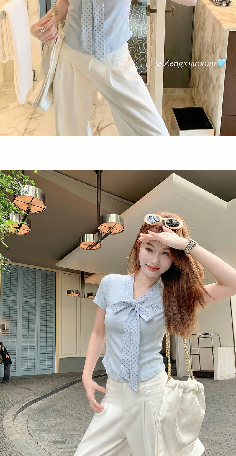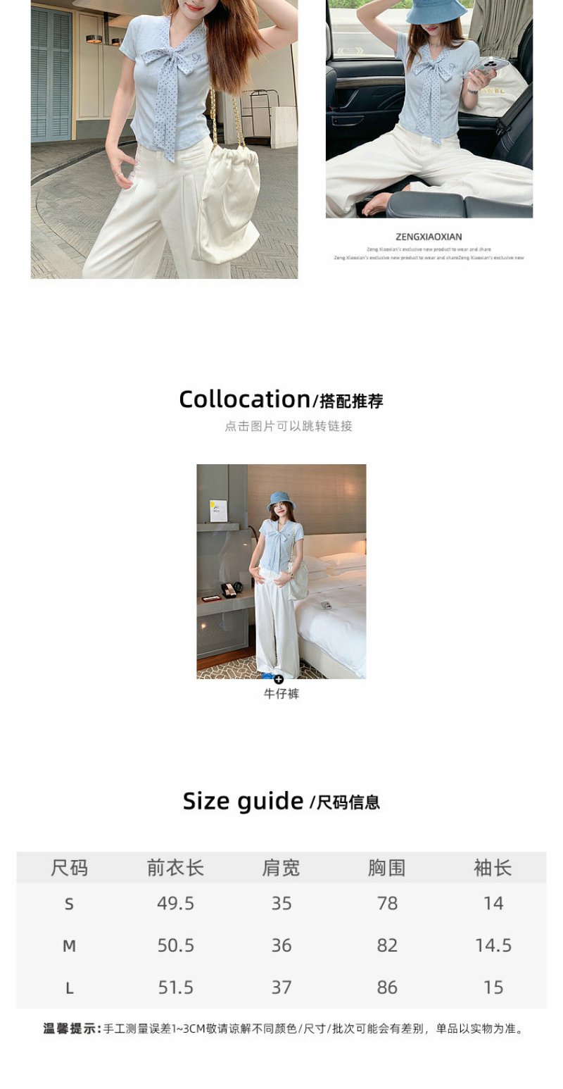 <曾小咸推荐>波点蝴蝶结系带短袖T恤上衣【预售7-15天发货】