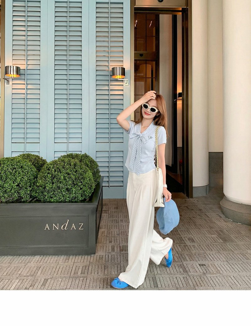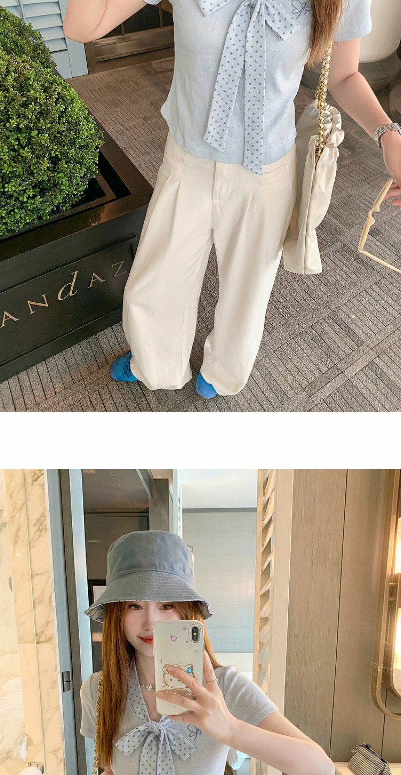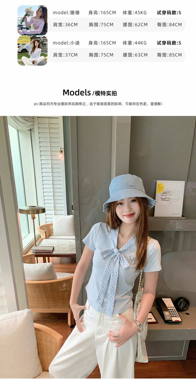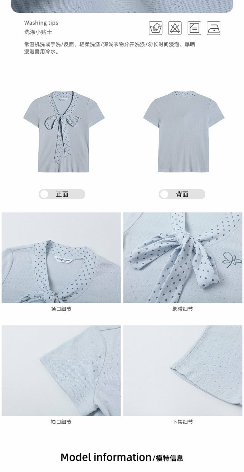 <曾小咸推荐>波点蝴蝶结系带短袖T恤上衣【预售7-15天发货】